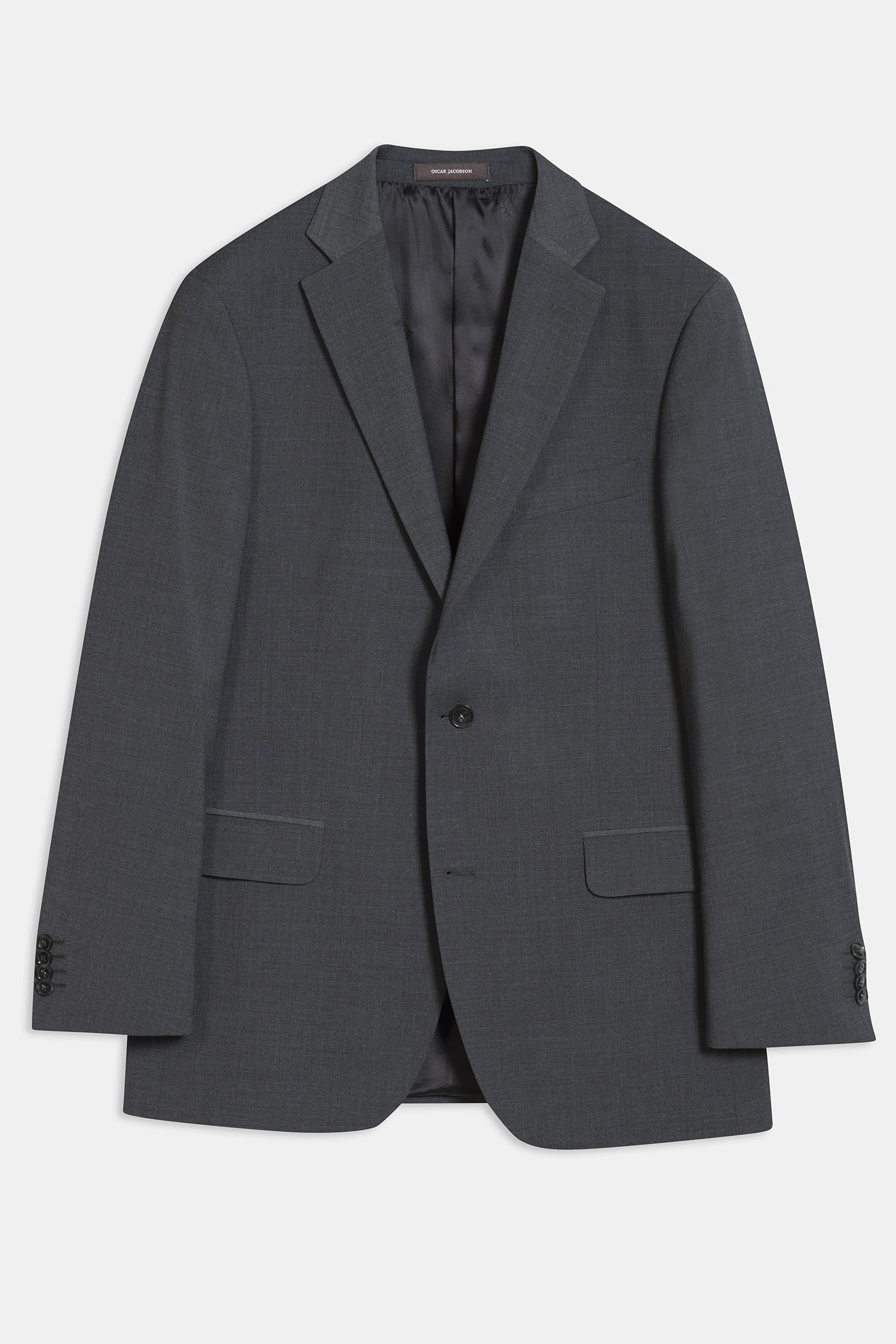 Jakkesættet Fuego hvor du kan vælge jakke og bukser i forskellige størrelser. Fuego blazeren har en normal pasform i 100% uld fra Italien. Jakken er helforet og har håndsyninger på revers, ærme, lommeklap og ryg.