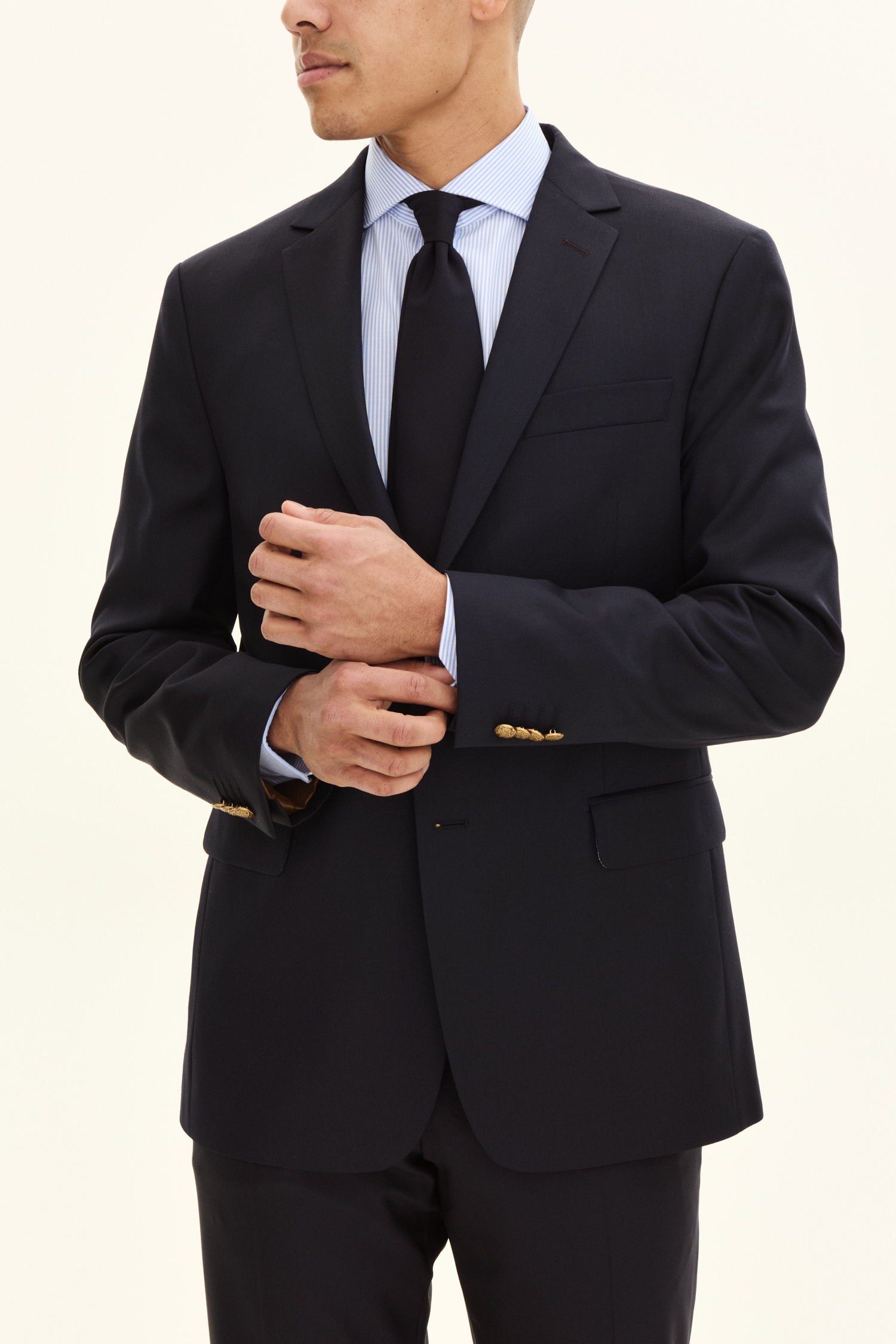 Klassisk klubjakke i 100% uld. Pasform: John modellen er en moderne jakke med klassisk pasform til dig, der ønsker en velsiddende jakke, der aldrig går af mode. Konstruktion: Blød konstruktion og let afrundet skulder som gør at jakken naturligt følger kroppens konturer. For: Fuldt foret indvendigt i viskose, nøje udvalgt for den bedste komfort og følelse. Lommer: Sidelommerne har klassiske klap, hvilket gør jakken velegnet til alle lejligheder. Detaljer: usynlige syninger langs revers, lommer, ærmer og kanter er en stilfuld detalje, der giver en eksklusiv følelse.