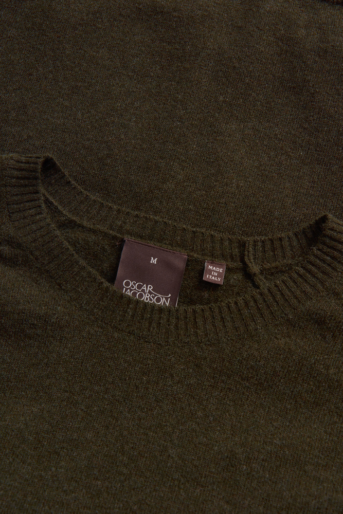 Strikket trøje i større pasform med rund hals og raglan-inspireret skulder samt ribstrikkede kanter. Fremstillet i et tyndt, men varmende uldstof.