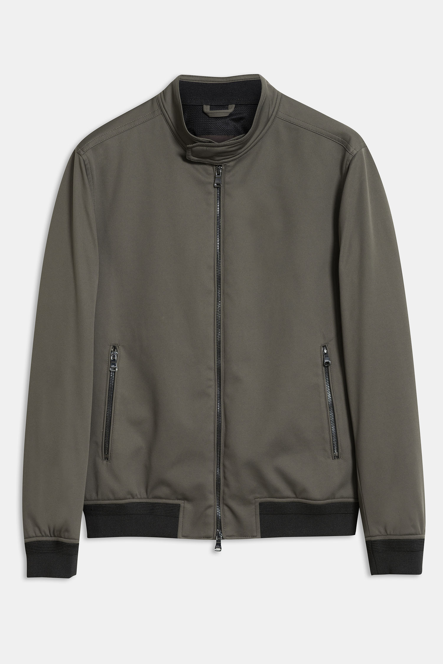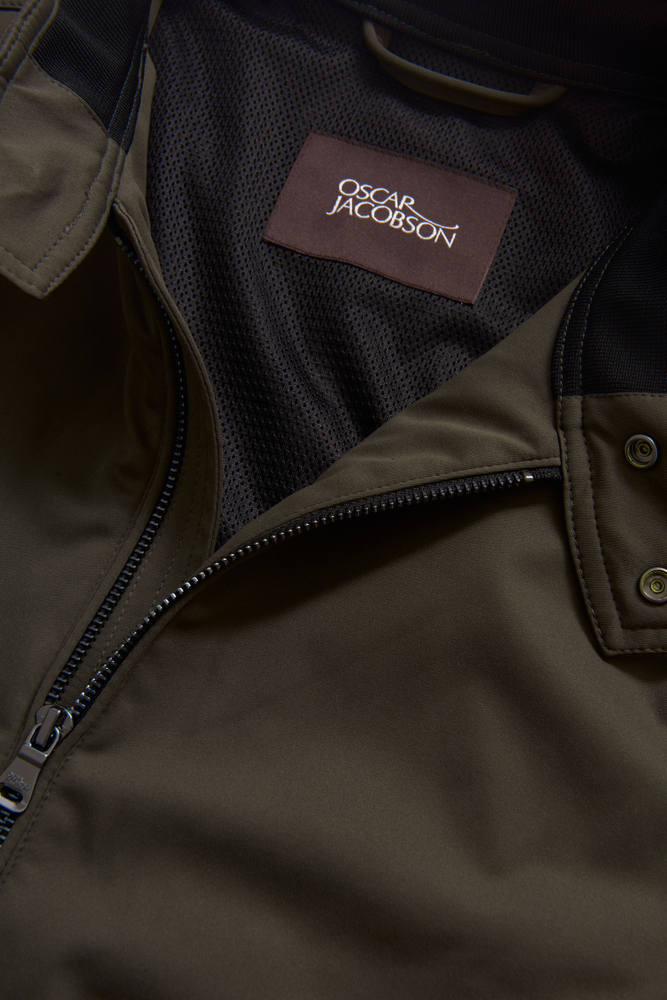 En kortere forårsjakke med tovejs lynlås og lukbare lommer på både inder- og yderside. Denne model har en ydre membran af vind- og vandafvisende softshell, et funktionelt letvægtsmateriale med fire-vejs stretch.