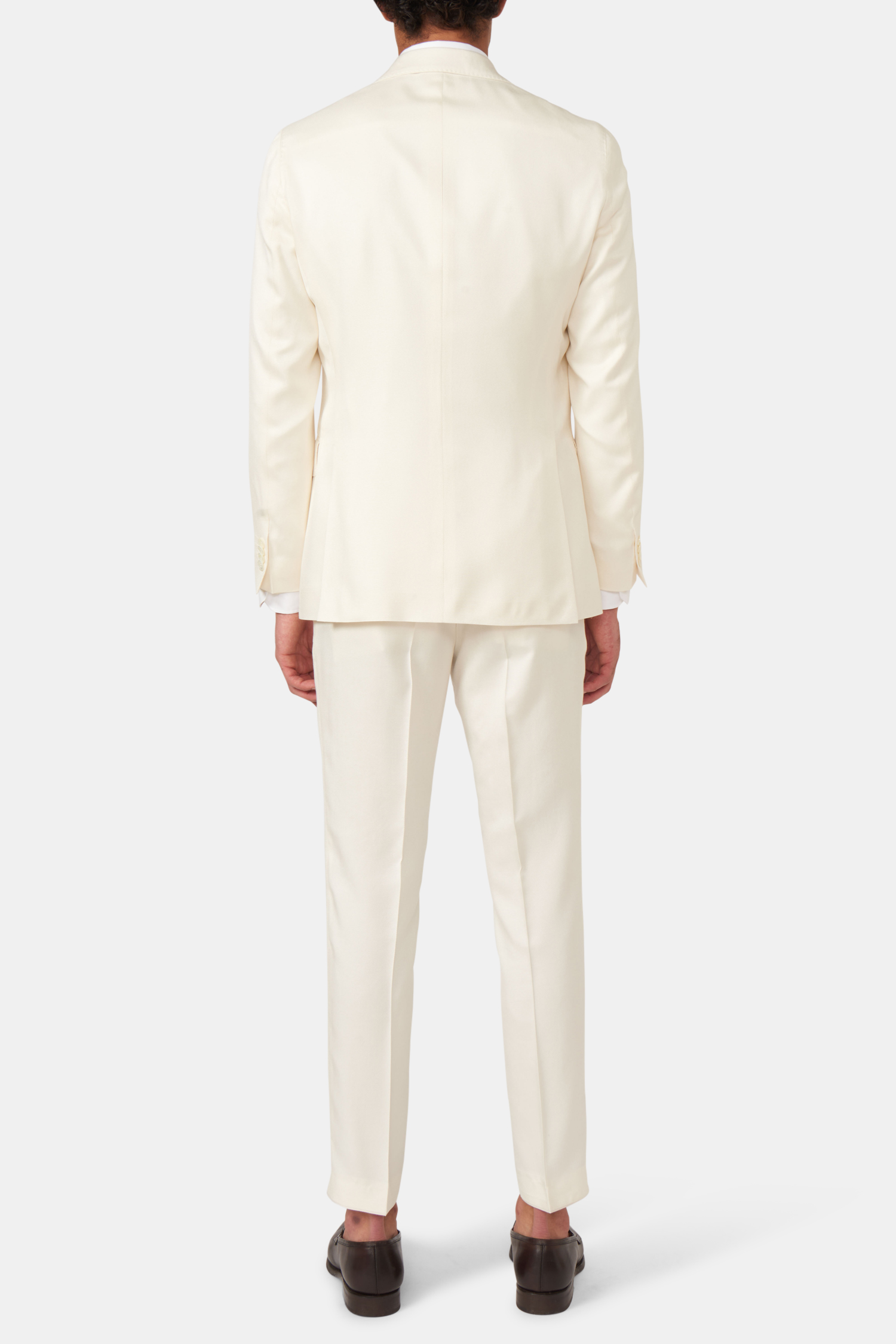 Double breasted suit with a blazer in regular fit med a soft constructed shoulder and fully lined inside. Classic suit trousers with a tapered fit, normal waist height and a classic leg length. Made from a 100 % silk fabric.