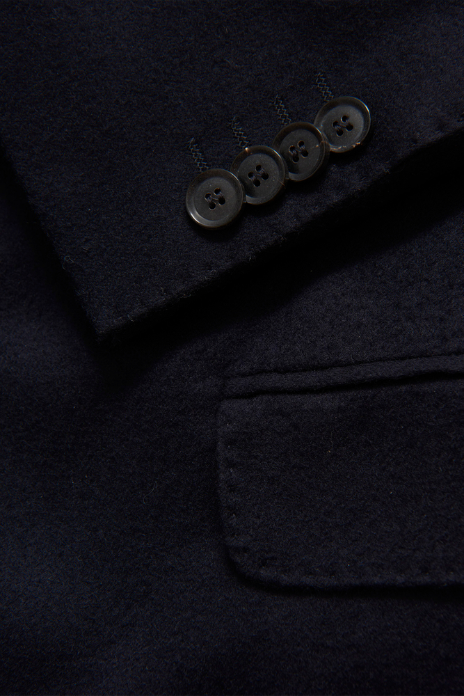 Tidløs jakke i vores blødeste konstruktion med halvfor og brede revers. Skræddersyet i en normal pasform. 100% cashmere fra Loro Pianas "Cashmere Award" serie. Dette er i særklasse!