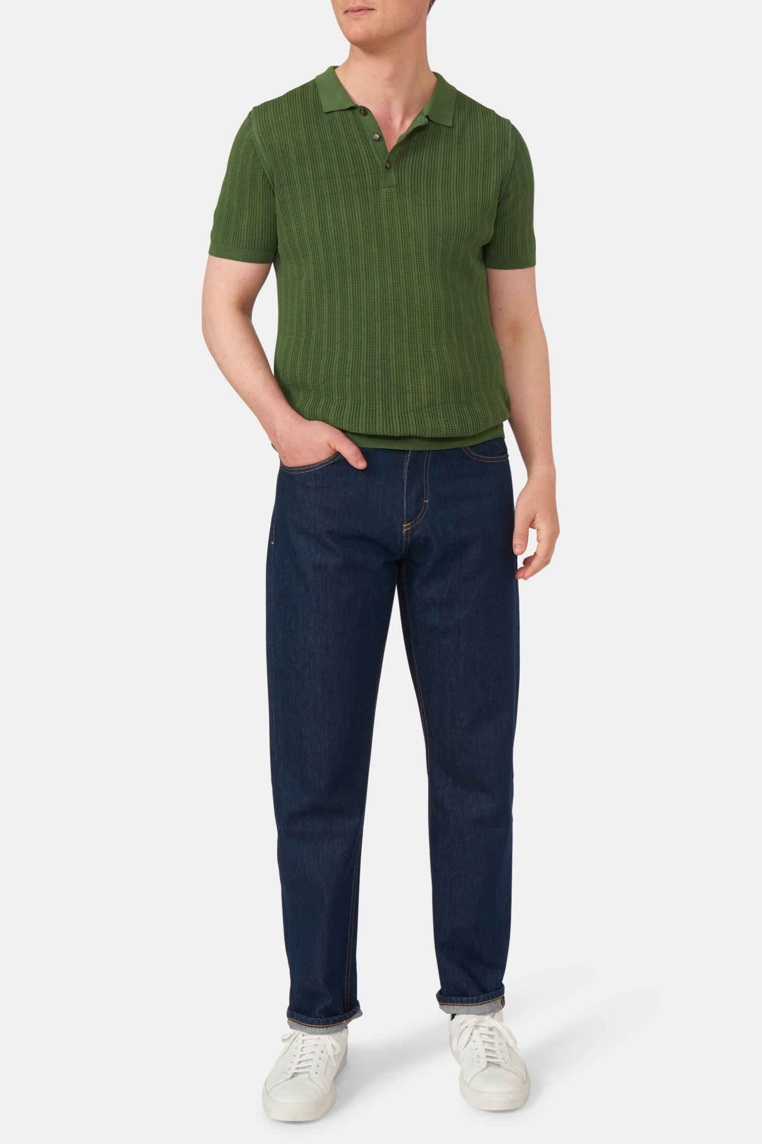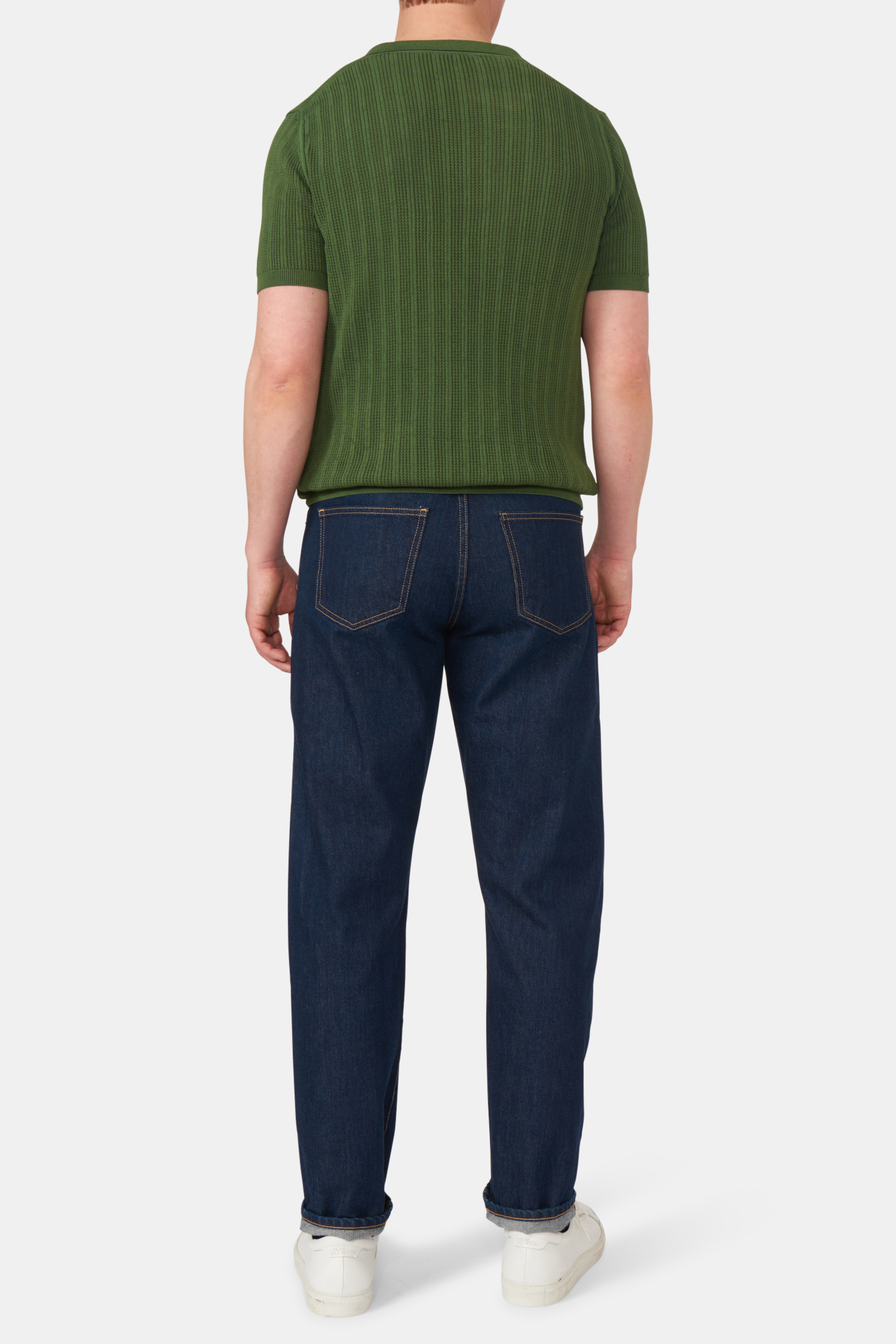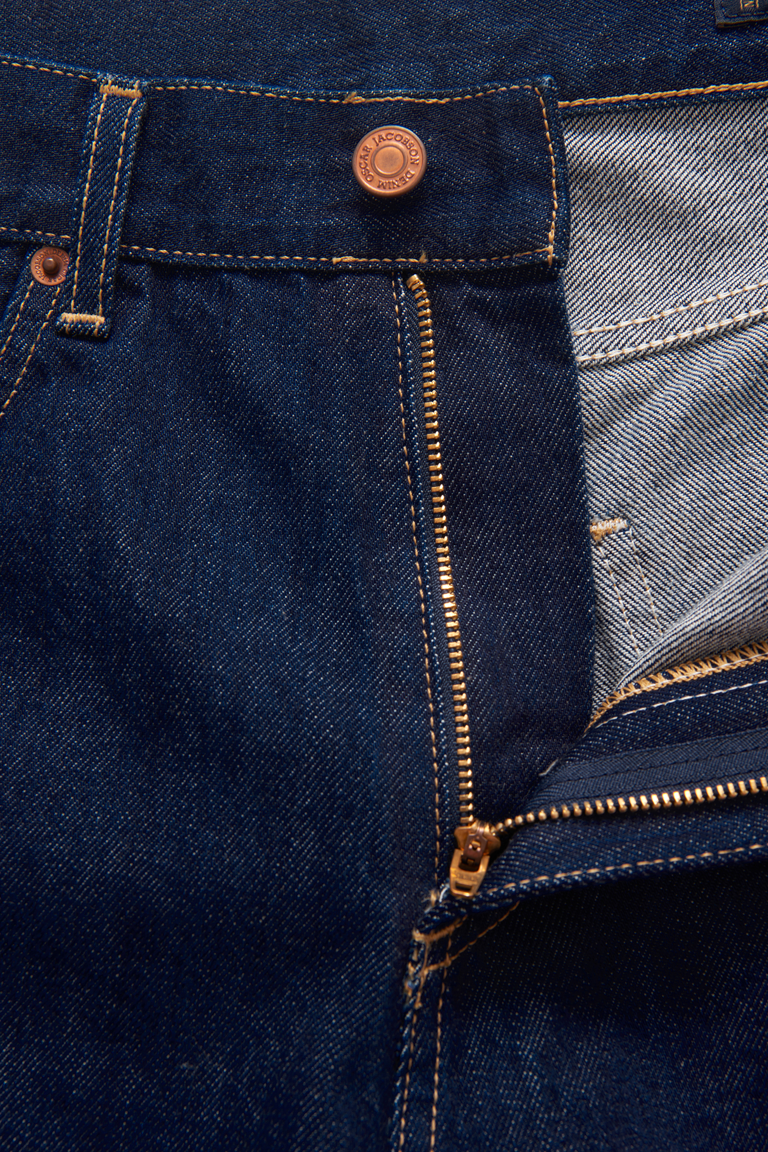 Pasformen er løs med lige ben og normal til høj talje. Lavet af denim med stretch fra Candiani i Italien, som er vævet på gamle, brugte væve fra Levis med knapper og nitter fra Italien og Borås. Jeansene er lavet af 100 % bæredygtigt dyrket bomuld.