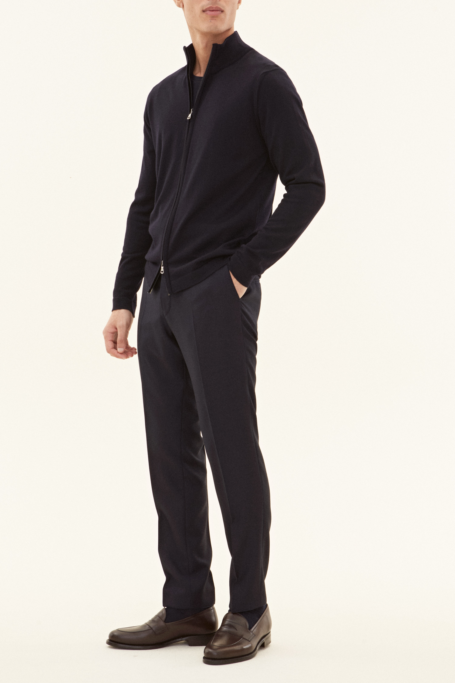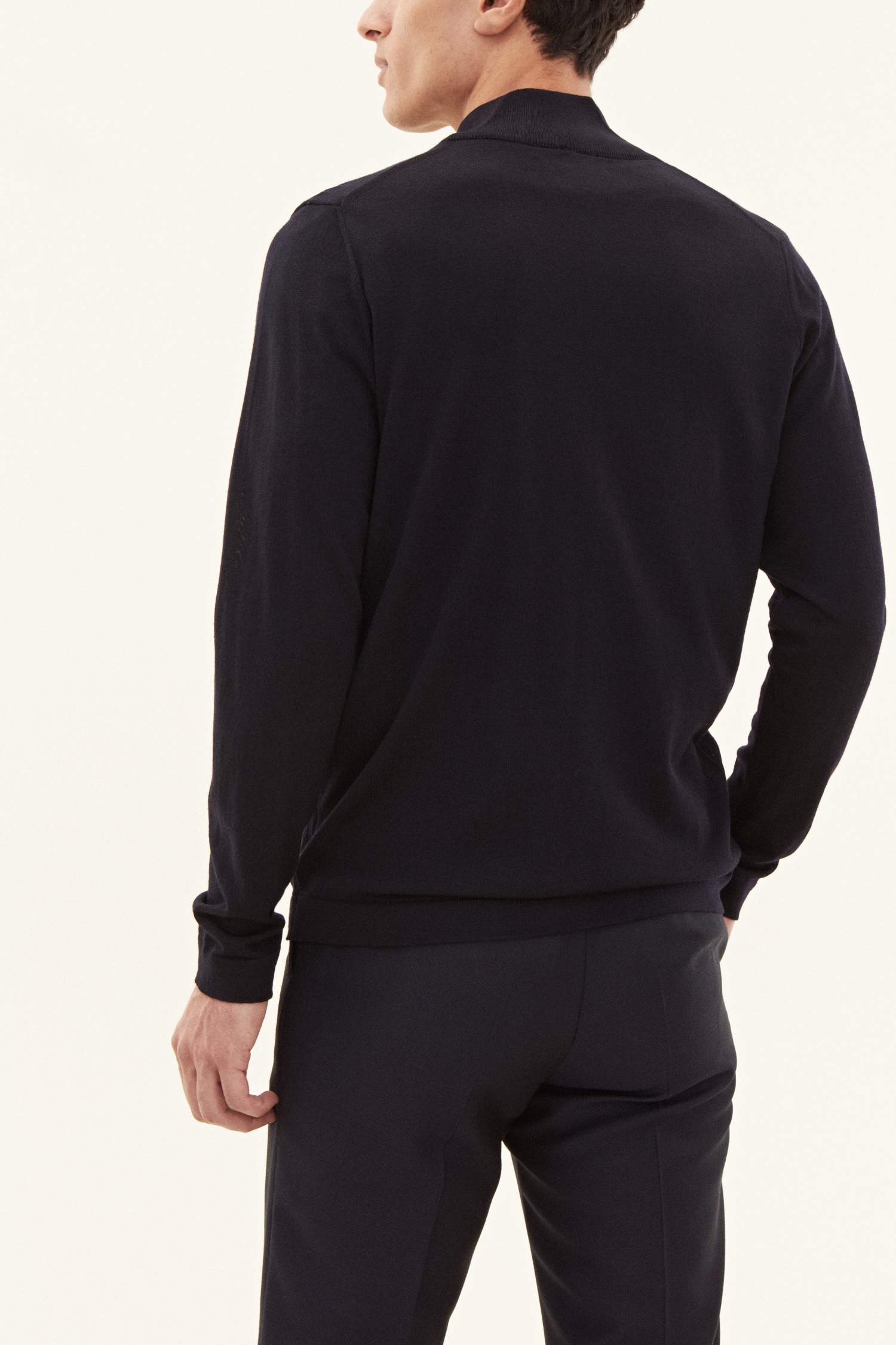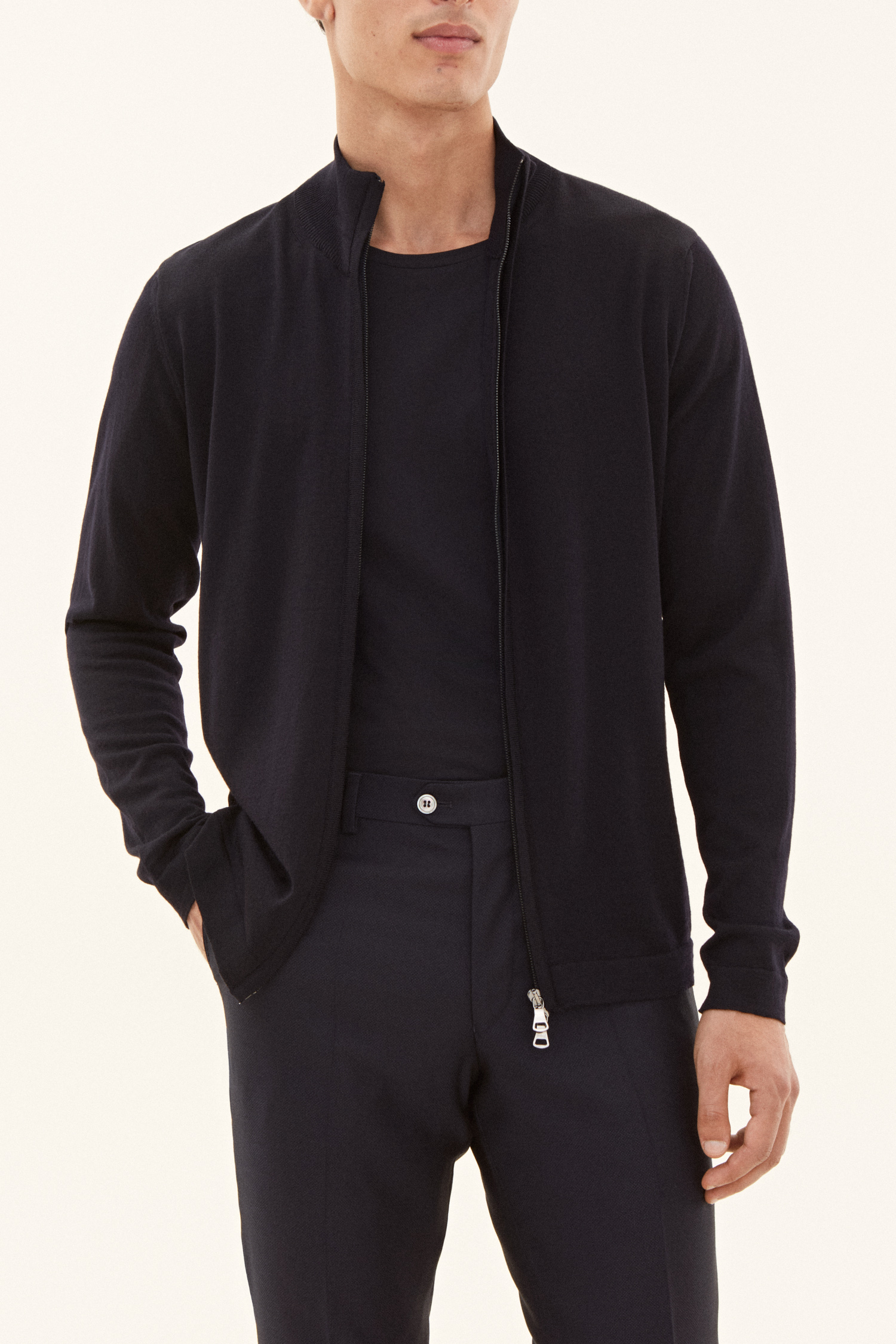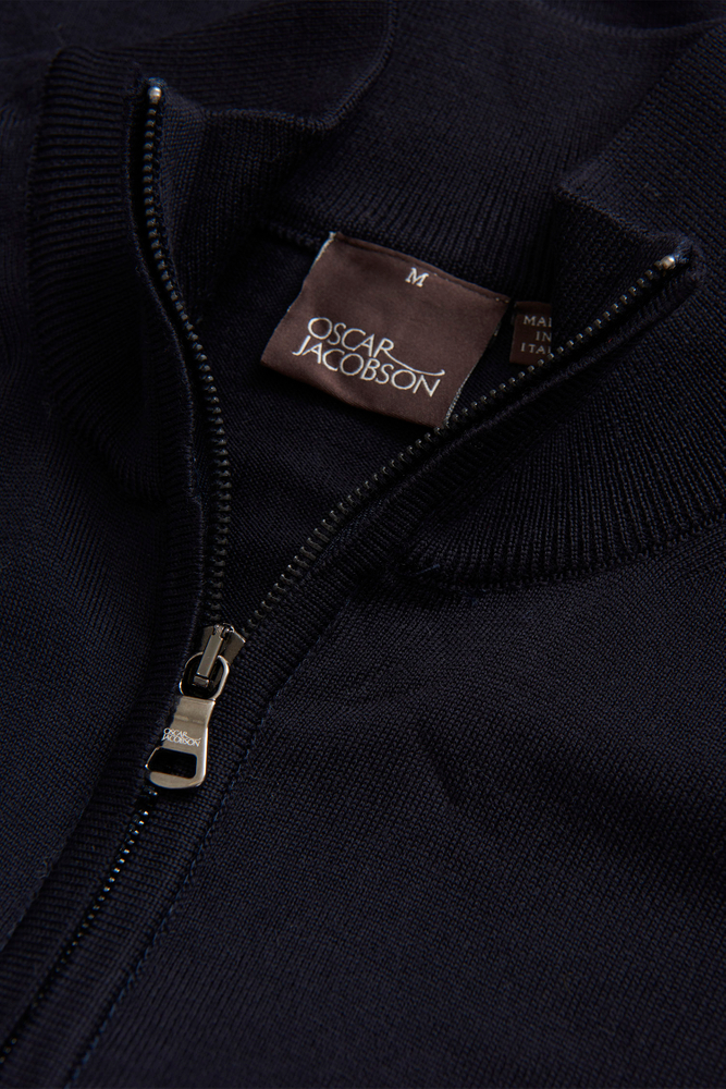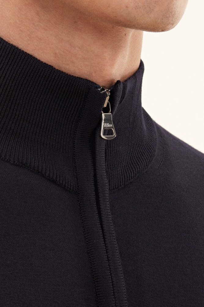 Den perfekte lag-på-lag trøje! Denne model har en elegant tovejs lynlås, der kan åbnes fra begge sider. Det tyndstrikkede merinould fra den verdensledende garnproducent Zegna Baruffa varmer, men har samtidig en god åndbarhed. Brug den som en sporty full-zip trøje eller et elegant mellemlag under en blazer.