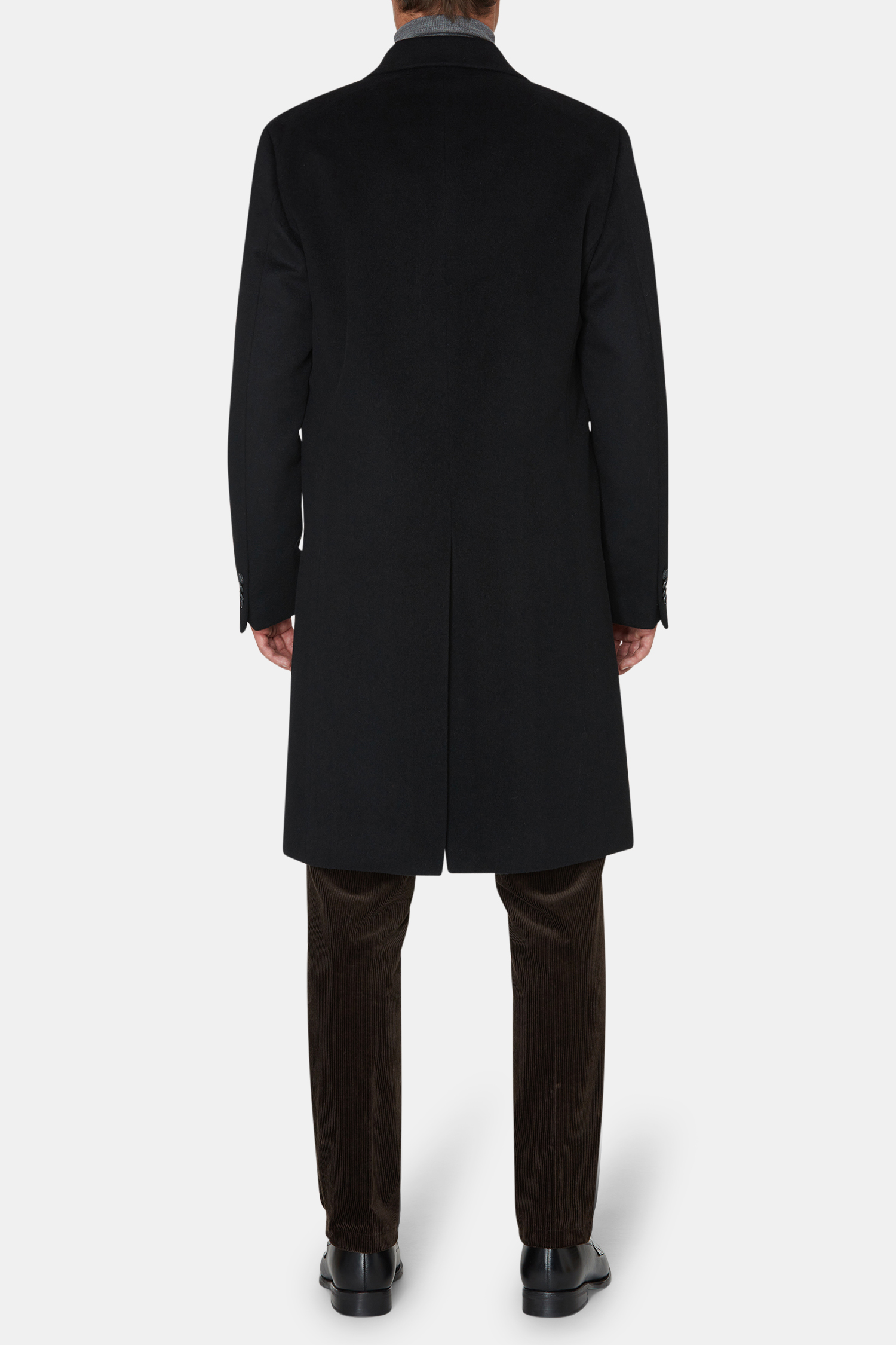 Vores nye dobbeltradede frakke med ekstra længde for et mere klassisk look, regular fit med brede spidse revers og dobbelte inderlommer. Fremstillet i et klassisk uldstof blandet med kashmir, der giver en luksuriøs følelse.