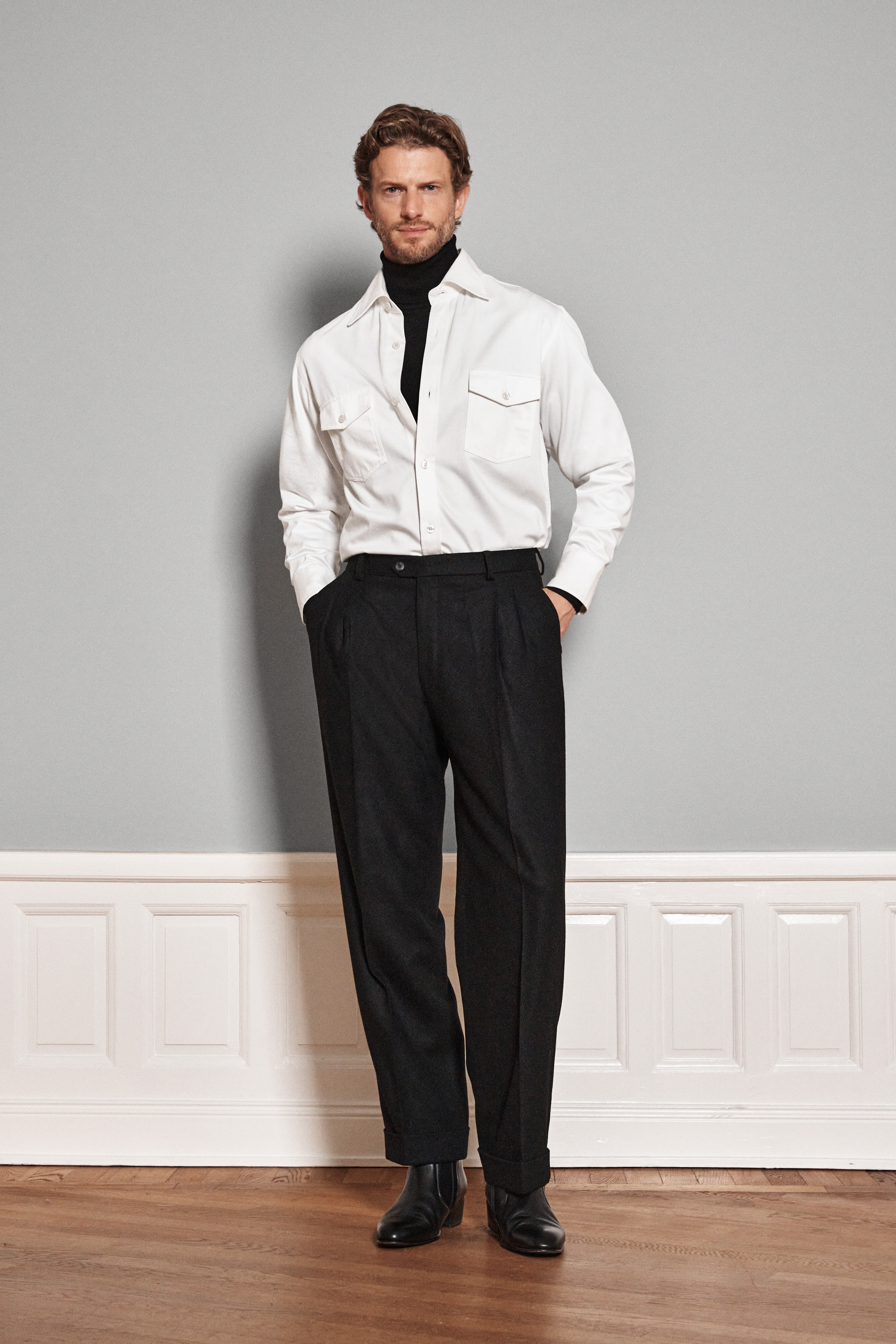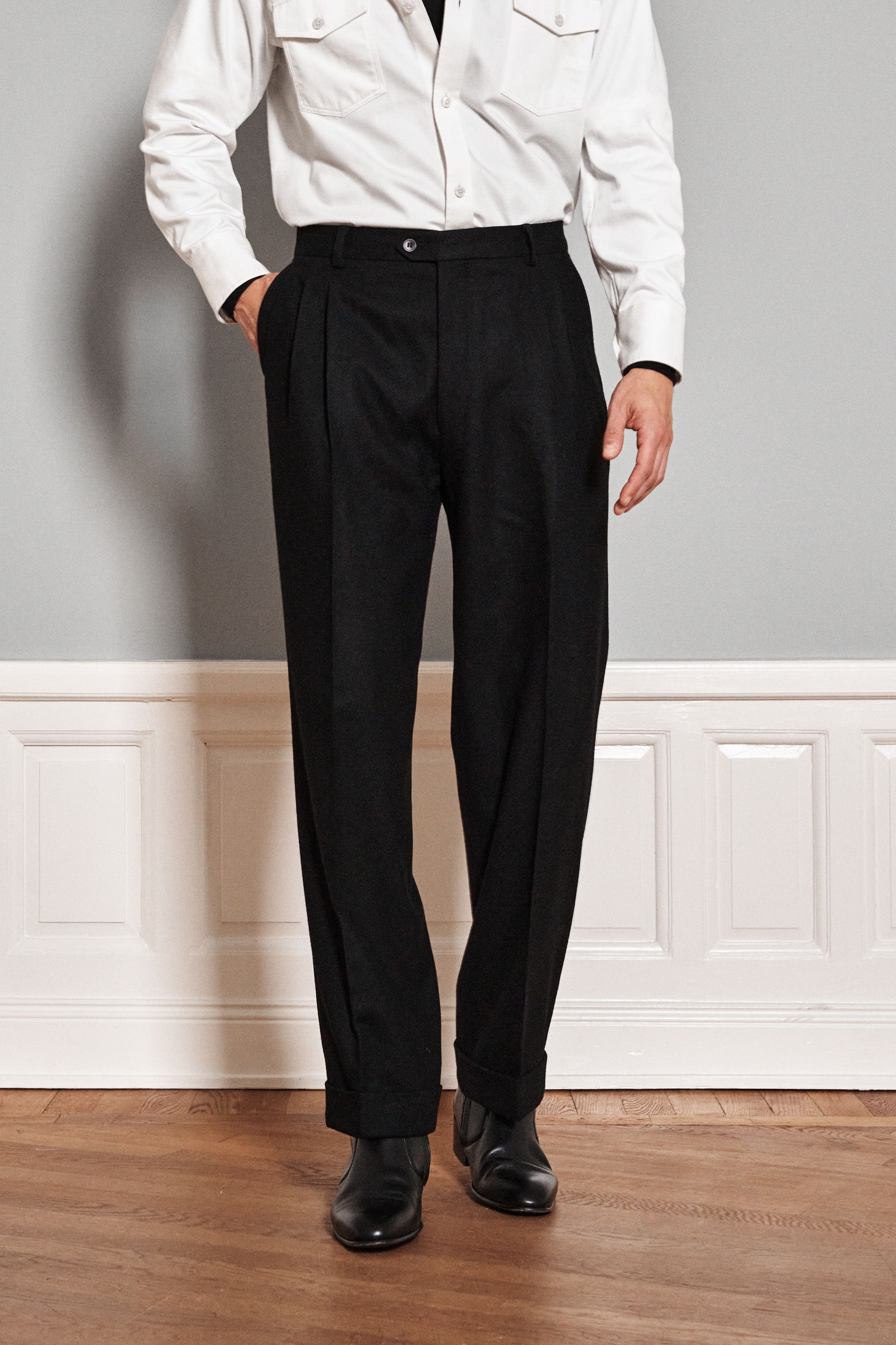 Regular Fit Højtajlet Pleated Flannel Bukser