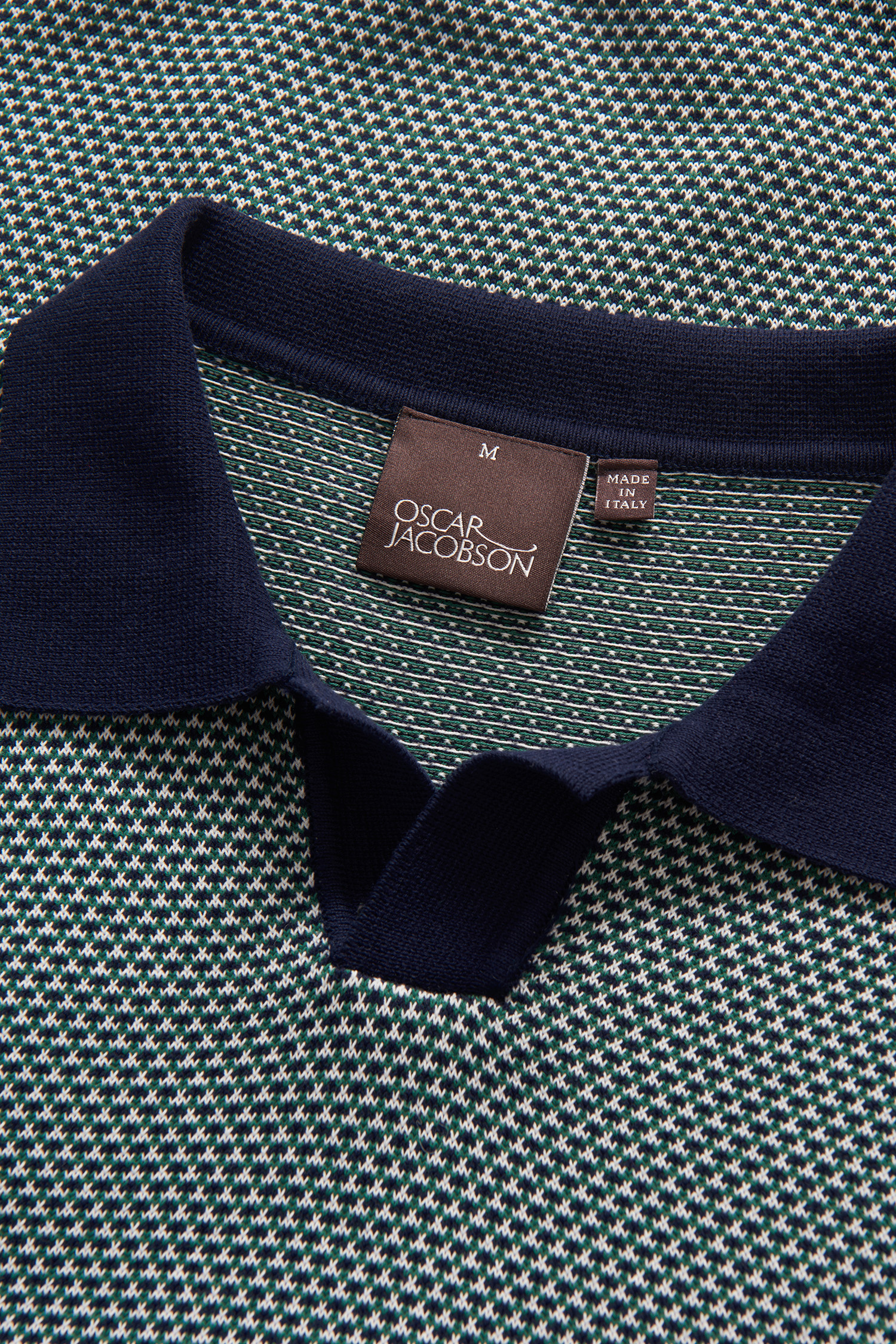 Kortærmet polo med knapfri krave i normal pasform med en lækker struktur og ribstrikkede kanter. Fremstillet i et blødt bomuldsstof.