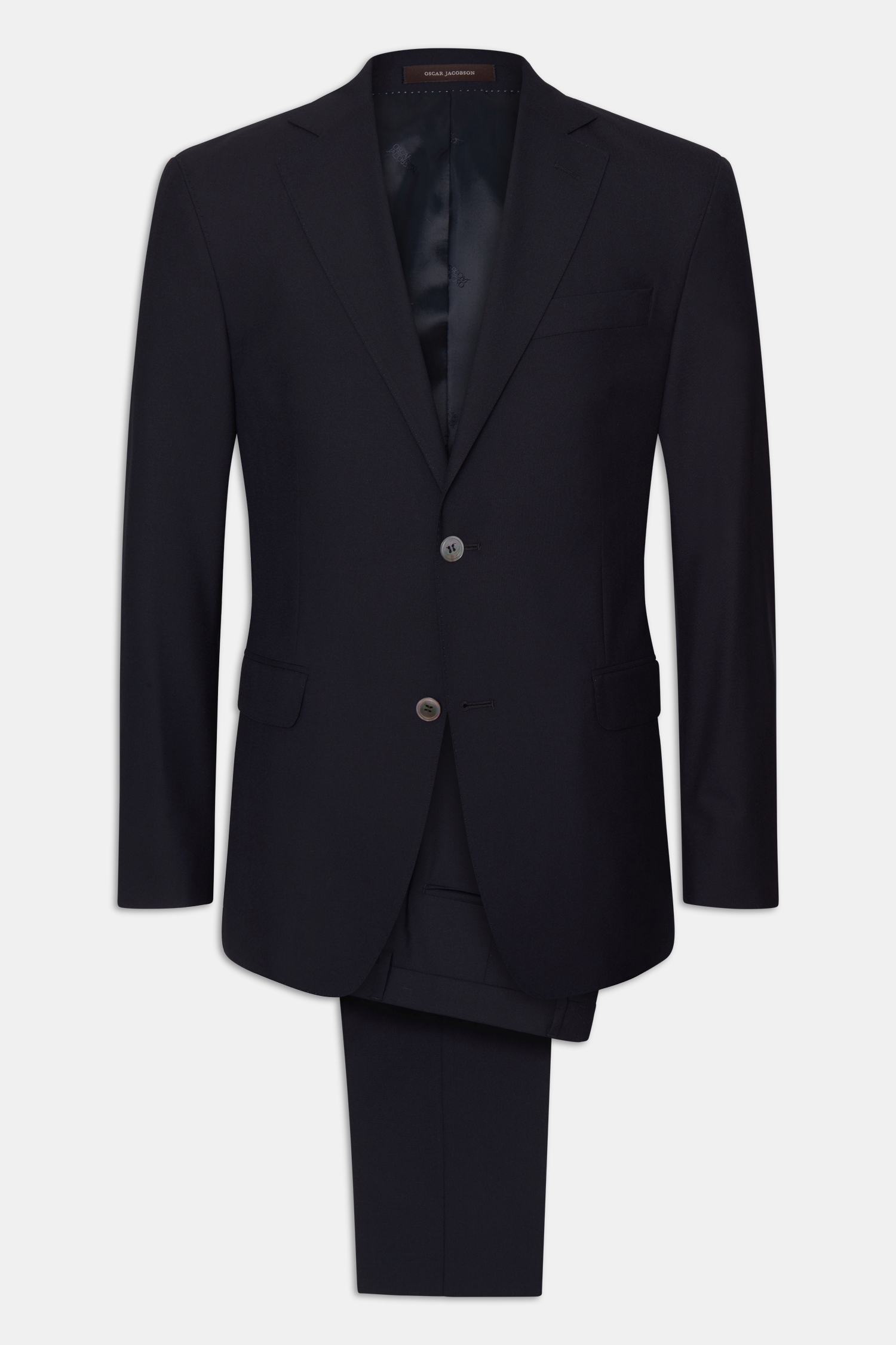 Modellen er helforet og har et blødt konstrueret bryst- og skulderområde. Pasformen er i et moderne snit, men lidt mere rummelig end vores smalleste modeller. Dette jakkesæt er lavet af uld og silke fra det italienske vævefirma Drago og er et glimrende valg til både arbejde og fest.