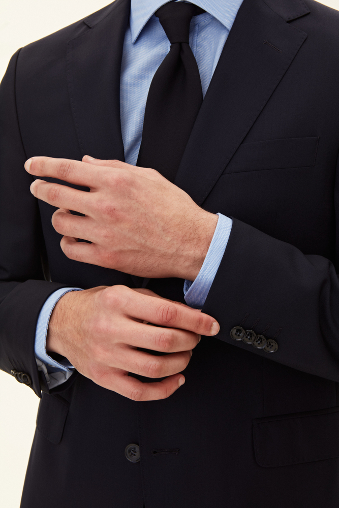 Dette produkt er fremstillet af et ensfarvet, vævet Super 120's uldstof fra Vitale Barberis Canonico.