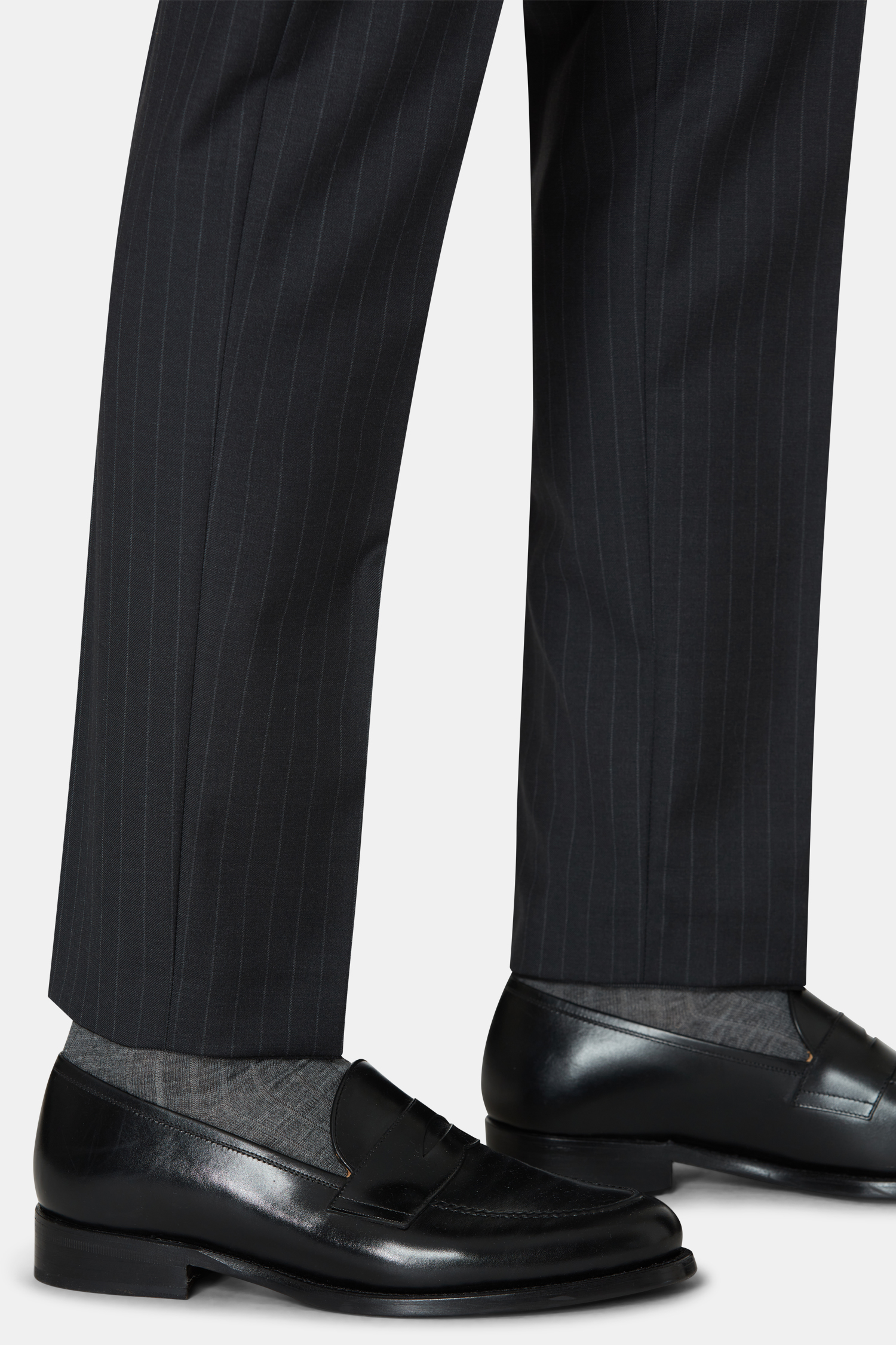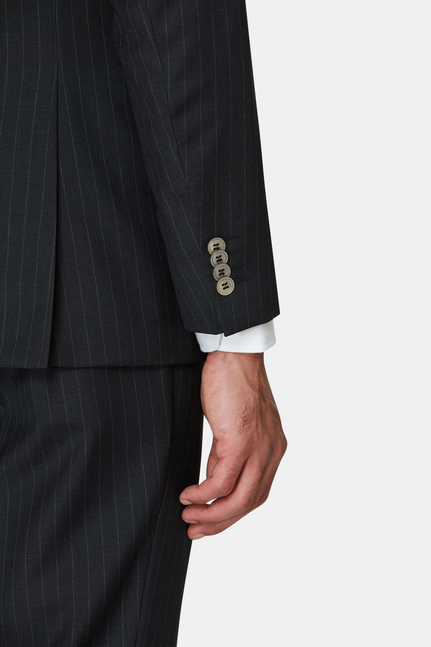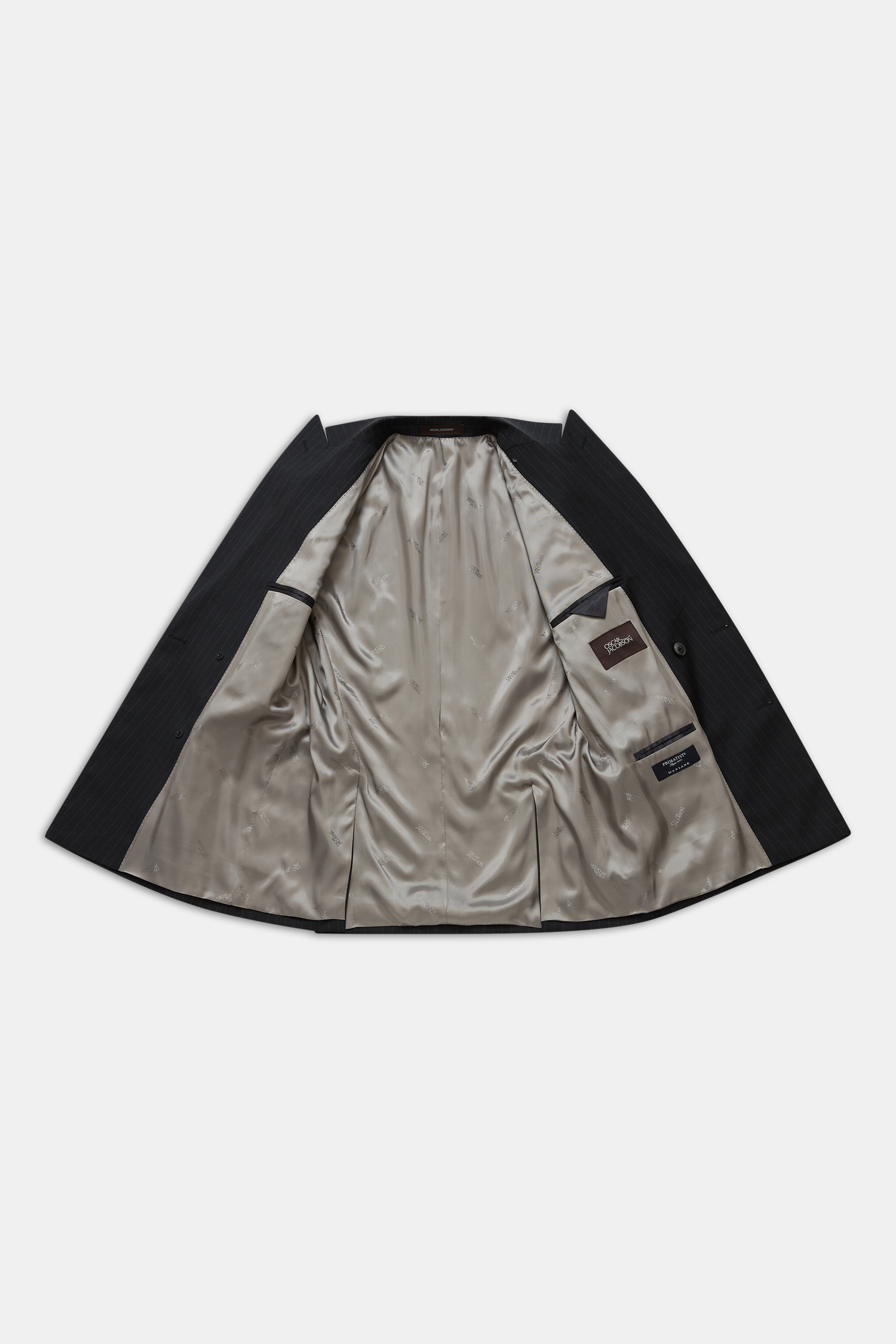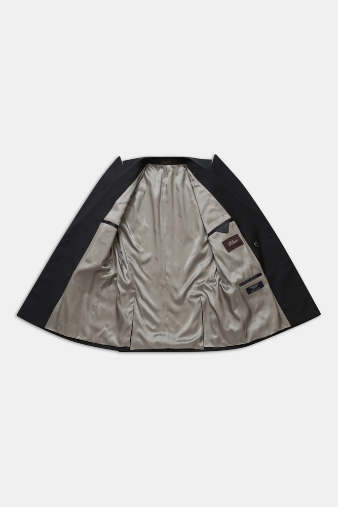 Tidløst dobbeltradet jakkesæt lavet af 100% uld. Tilbyder både komfort og stil og er perfekt til enhver formel lejlighed.