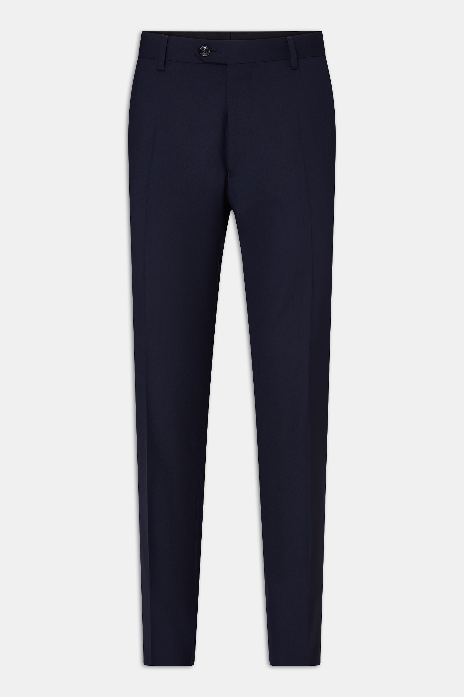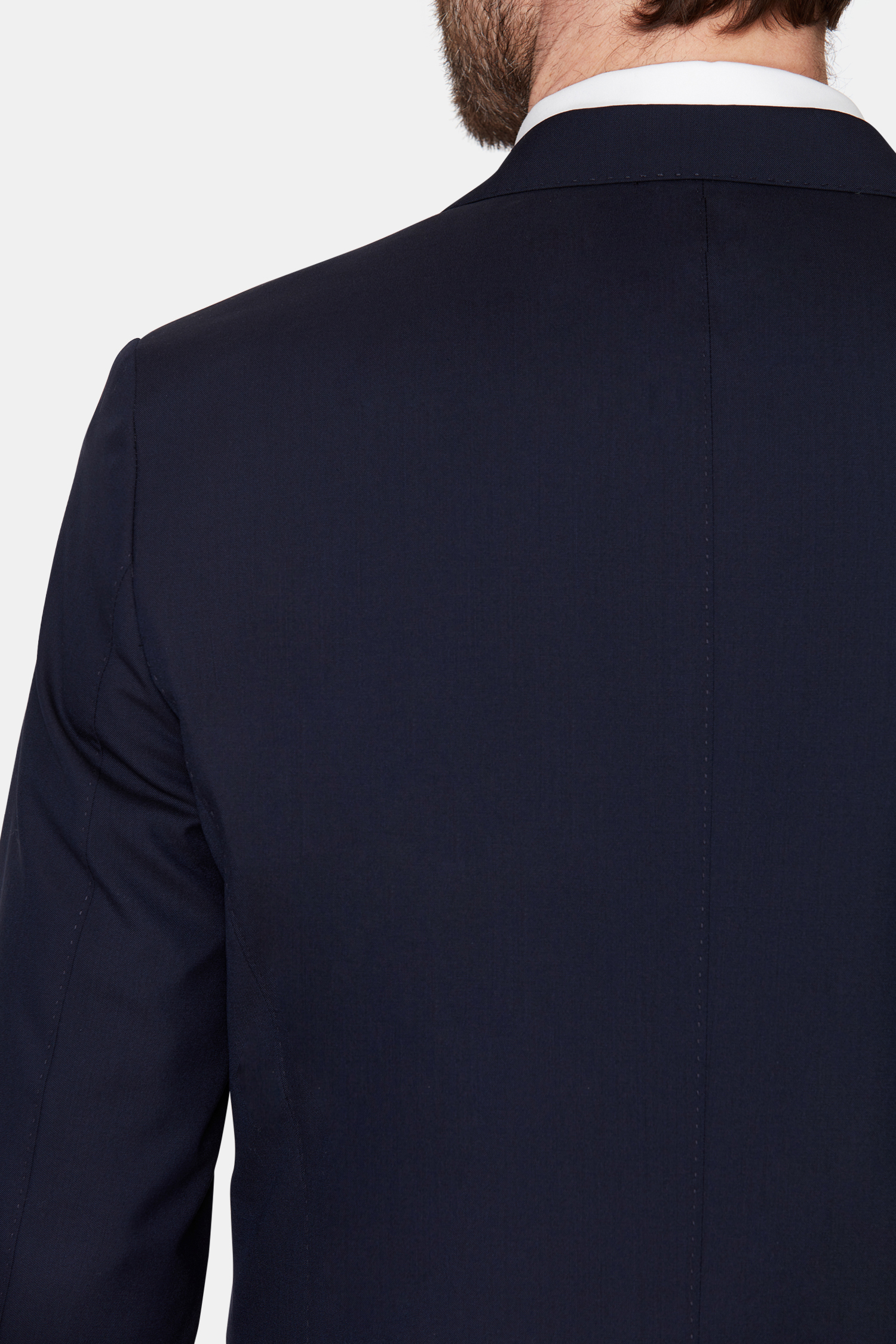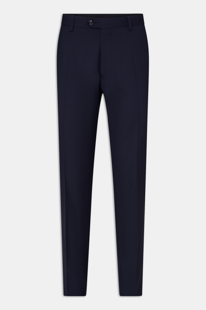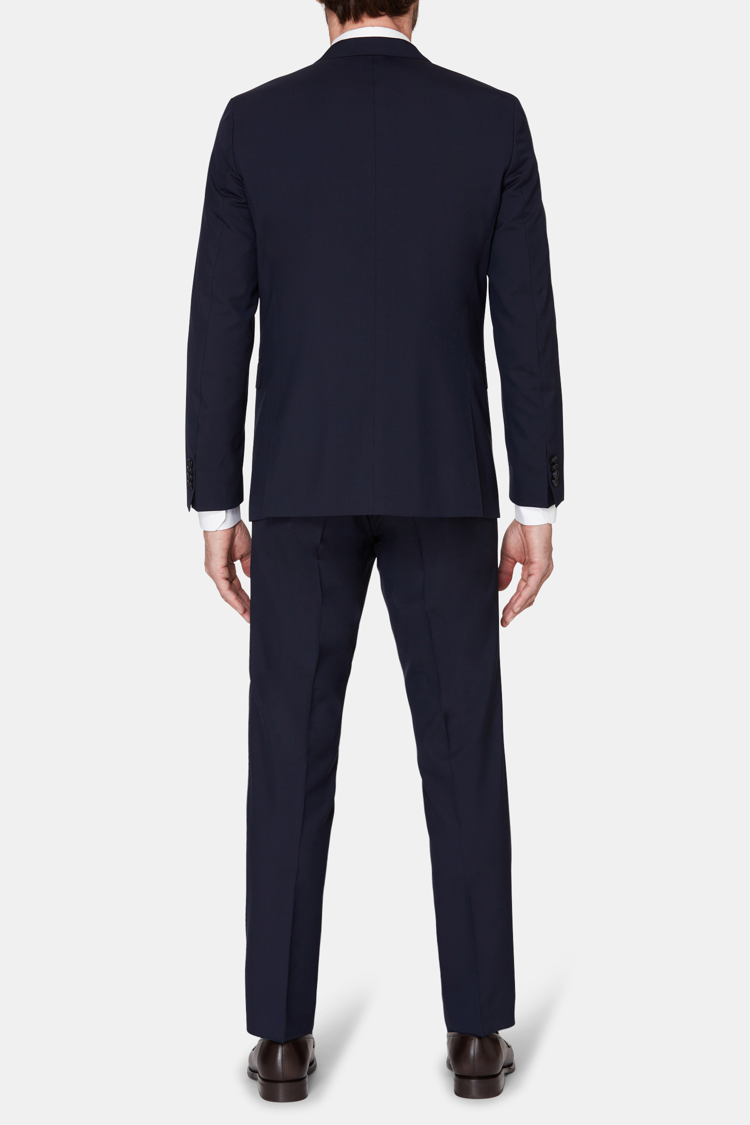 Klubtøj i mørkeblåt uldgarn med struktur fra det italienske væveri Marzotto. En blød konstruktion, hvor mellemlag og skulderopbygning er næsten ikke-eksisterende. Jakken er foret og har lommer med lommeklap. De tilhørende bukser har en klassisk, let tilspidset pasform og en normaltalje.