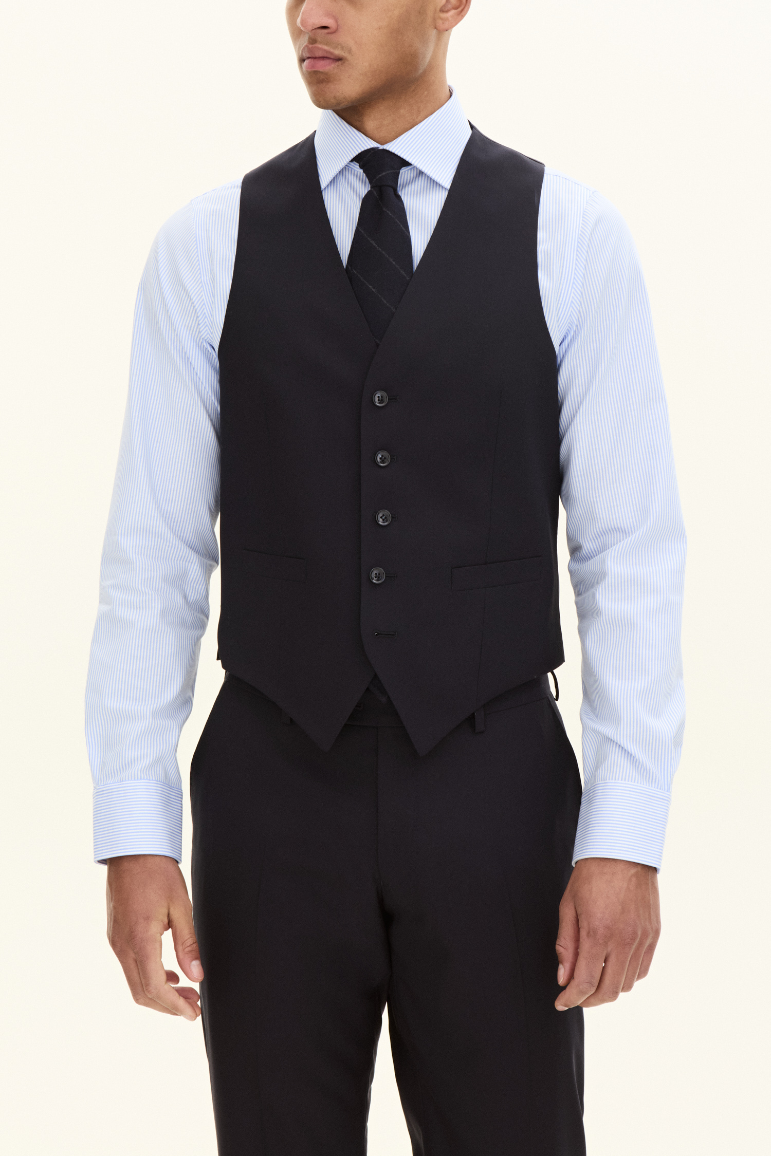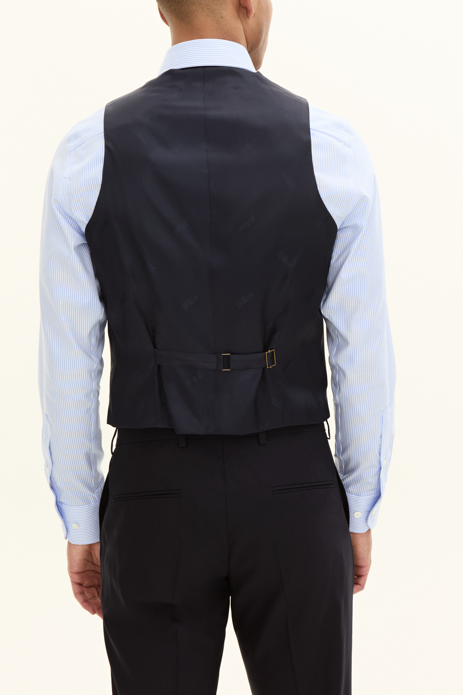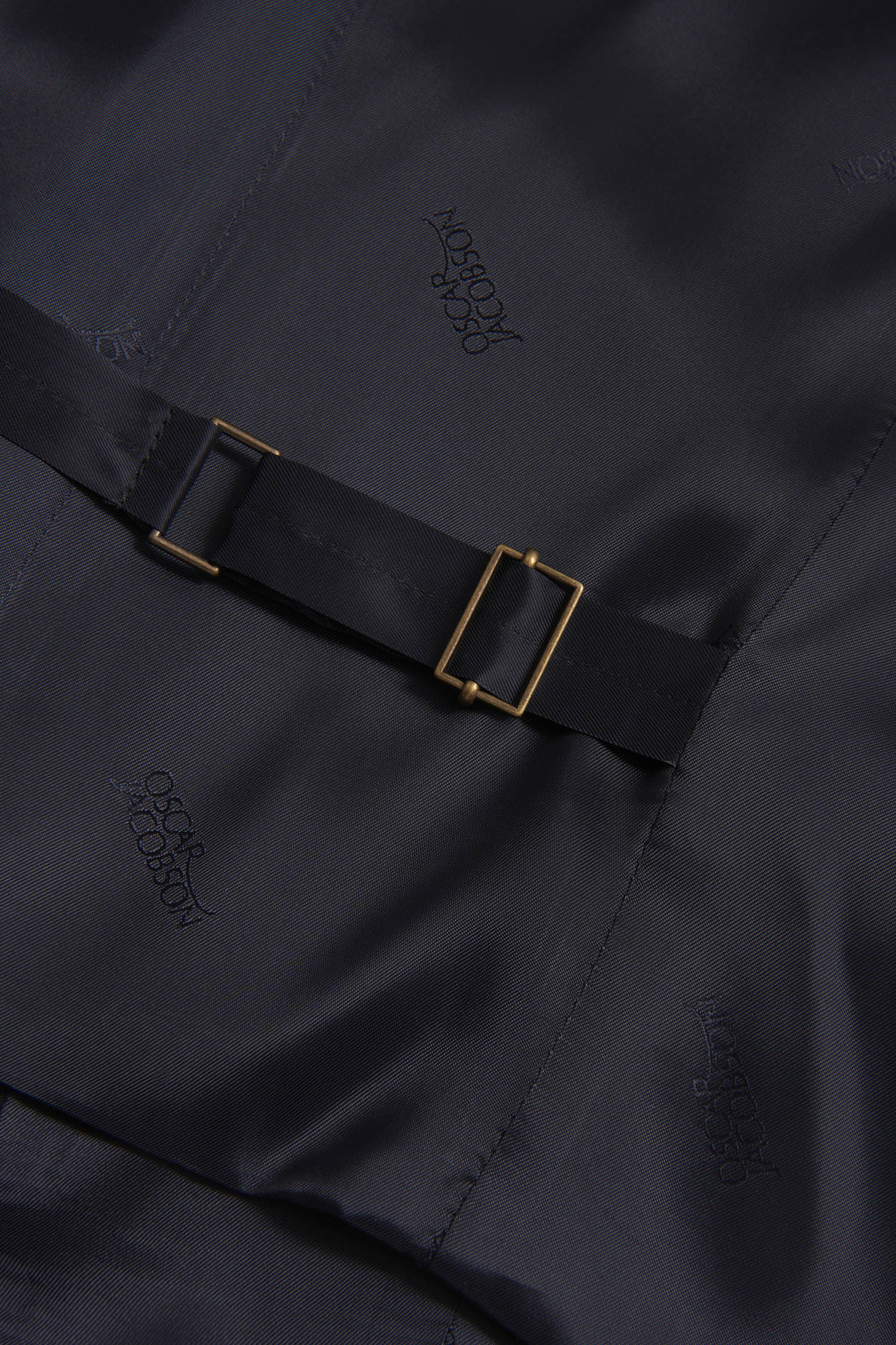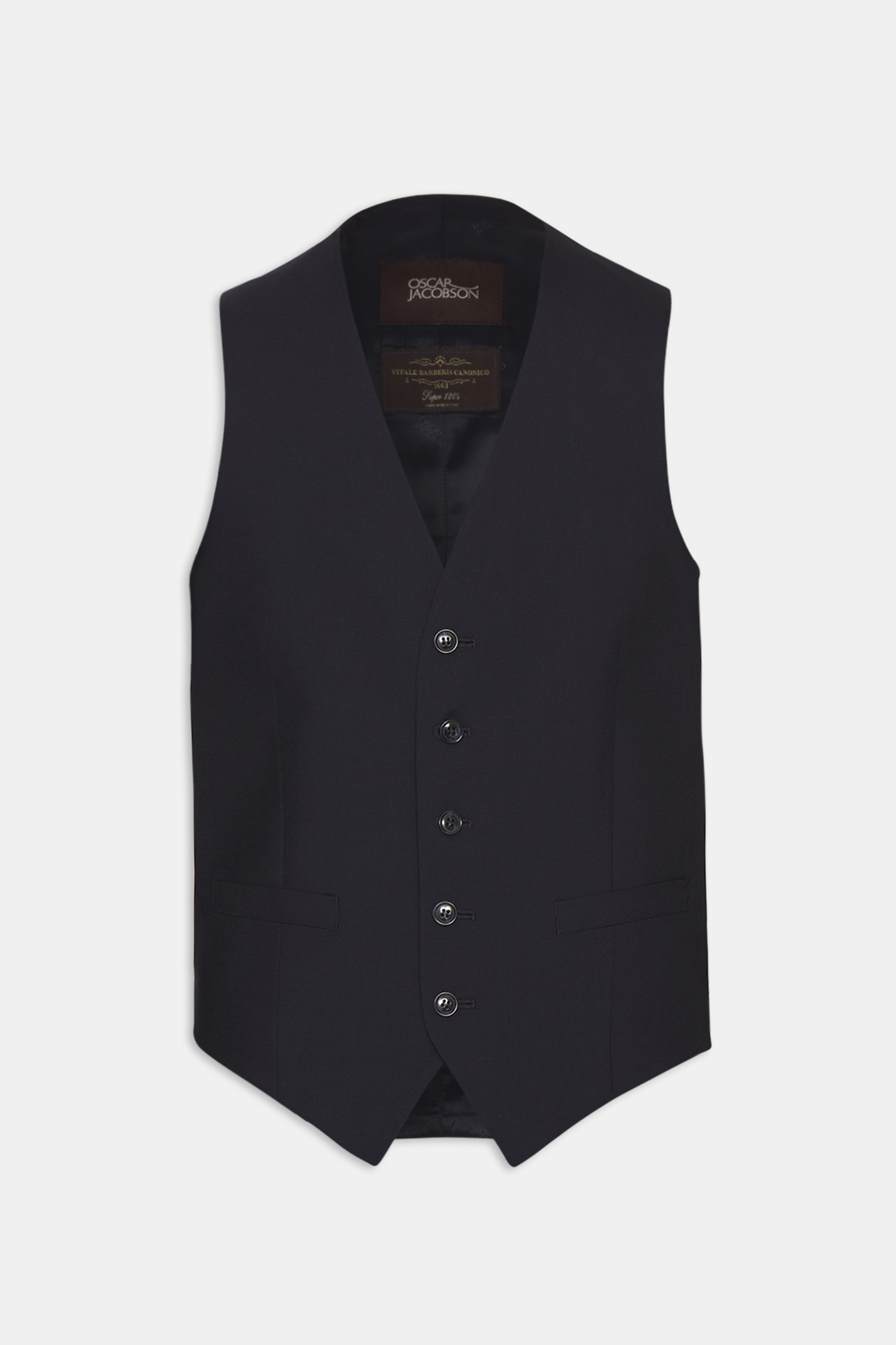 Vores traditionelle vest lavet i en klassisk, elegant og tynd super 120 uld fra Vitale Barberis Canonico væveriet. Viskosebeklædt ryg med spænde.