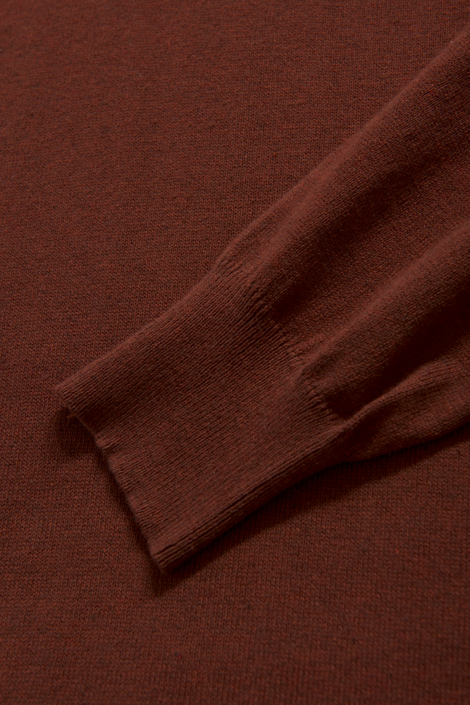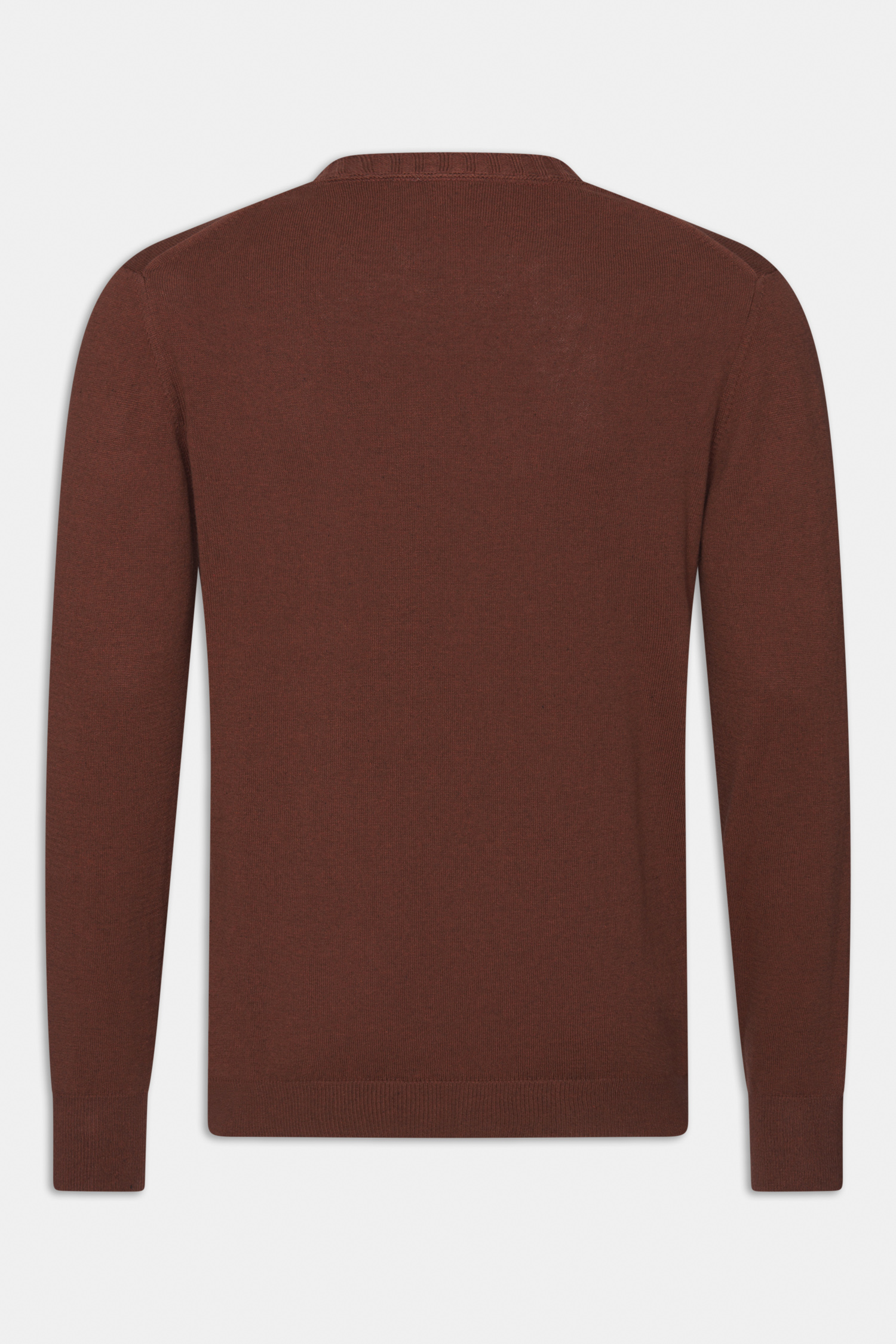 Trøje med rund hals lavet af 12 g bomuld. Ribstrikket krave og kanter.