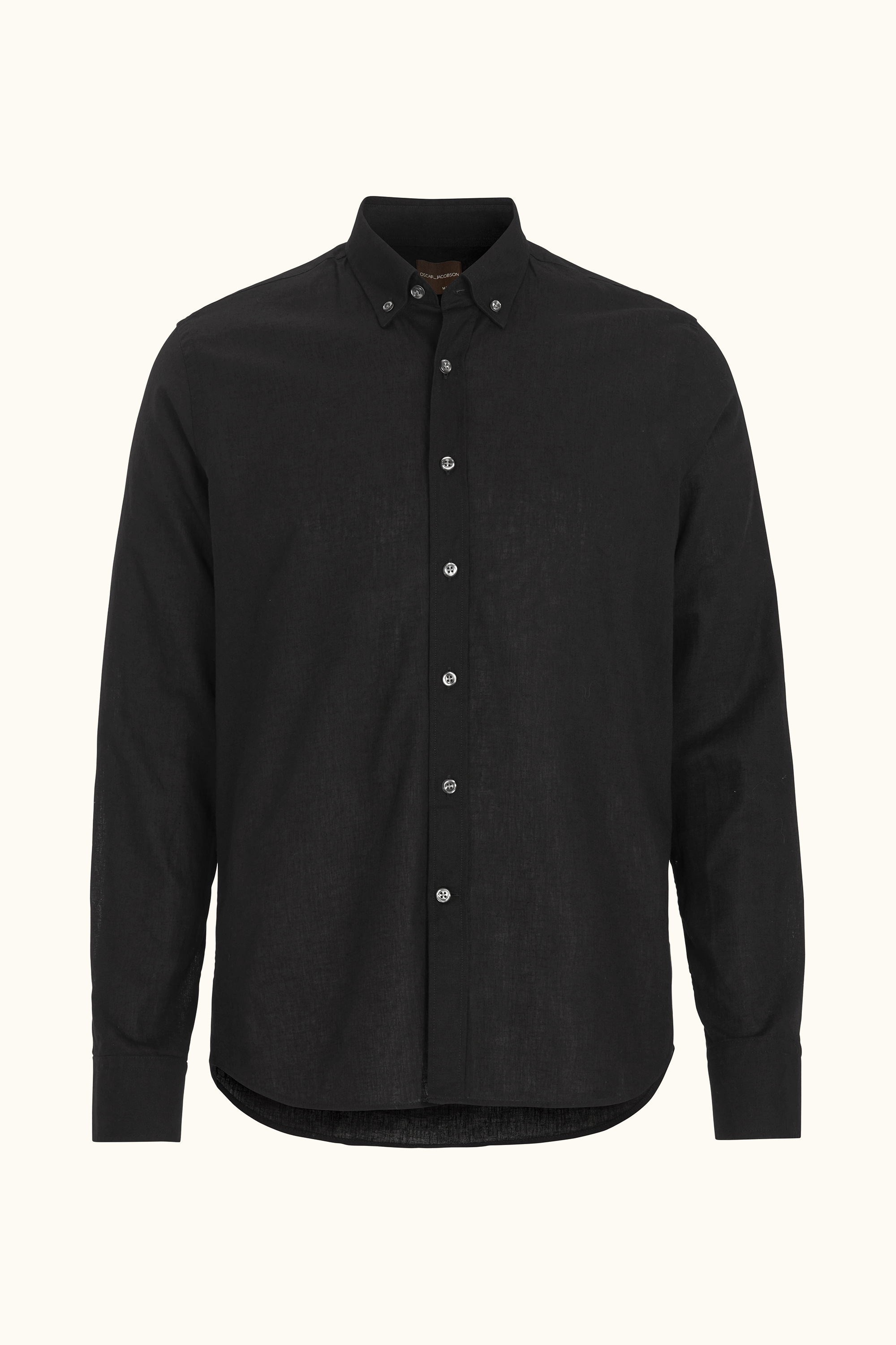 Hørskjorte i slim fit med en mere afslappet button-down krave og enkel manchet.
