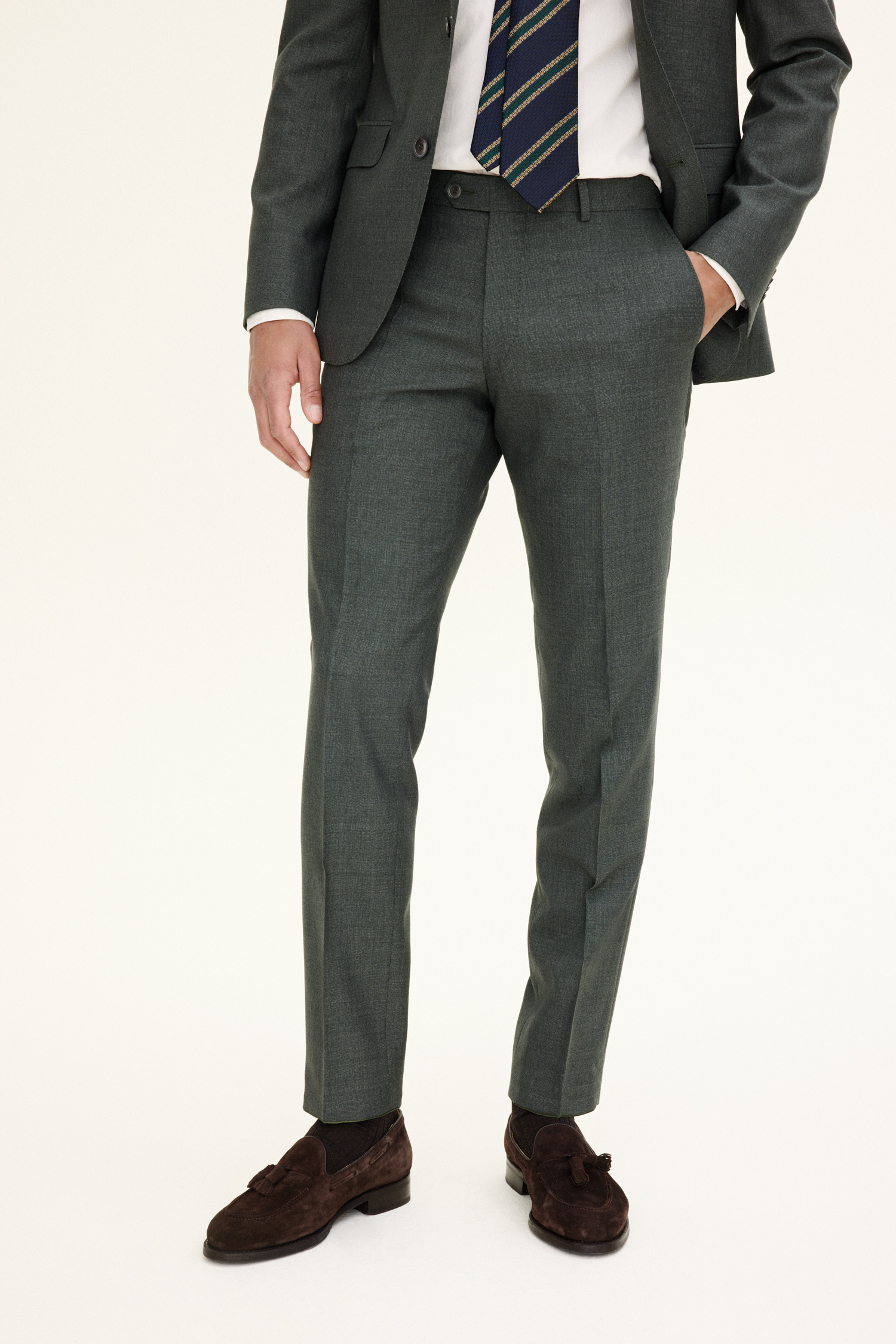 Disse bukser er lavet af en tropiskvævet uld med elegant mikrostruktur. Modellen har en slank pasform og en benlængde, der er lidt kortere end den klassiske jakkebukser. En fremragende spidsbukser til både skjorte og poloshirt!