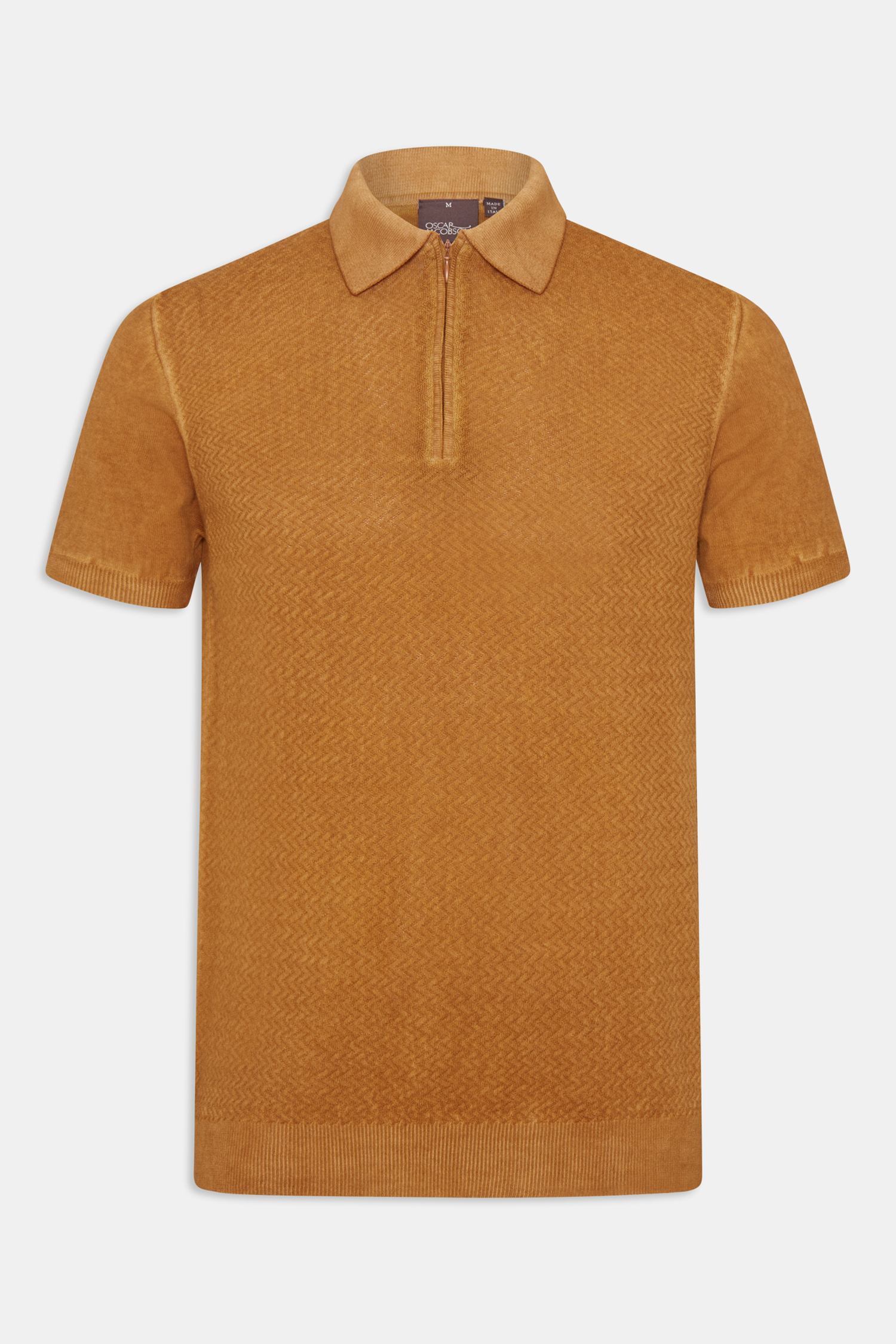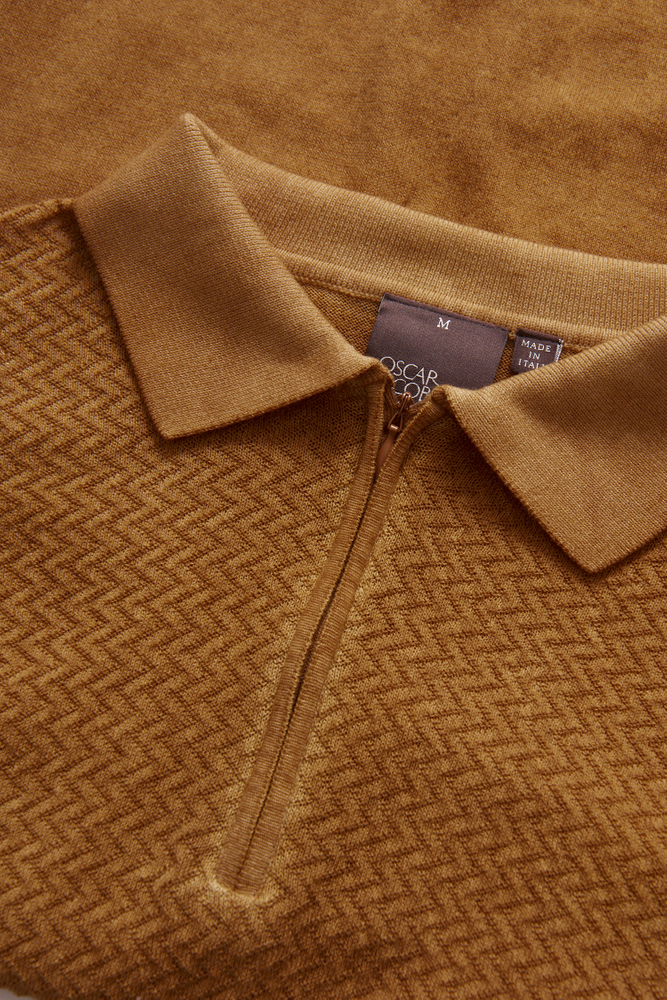 Kortærmet polo i slim fit med lynlåskrave og mønstret front. Fremstillet i bomuldsstof.