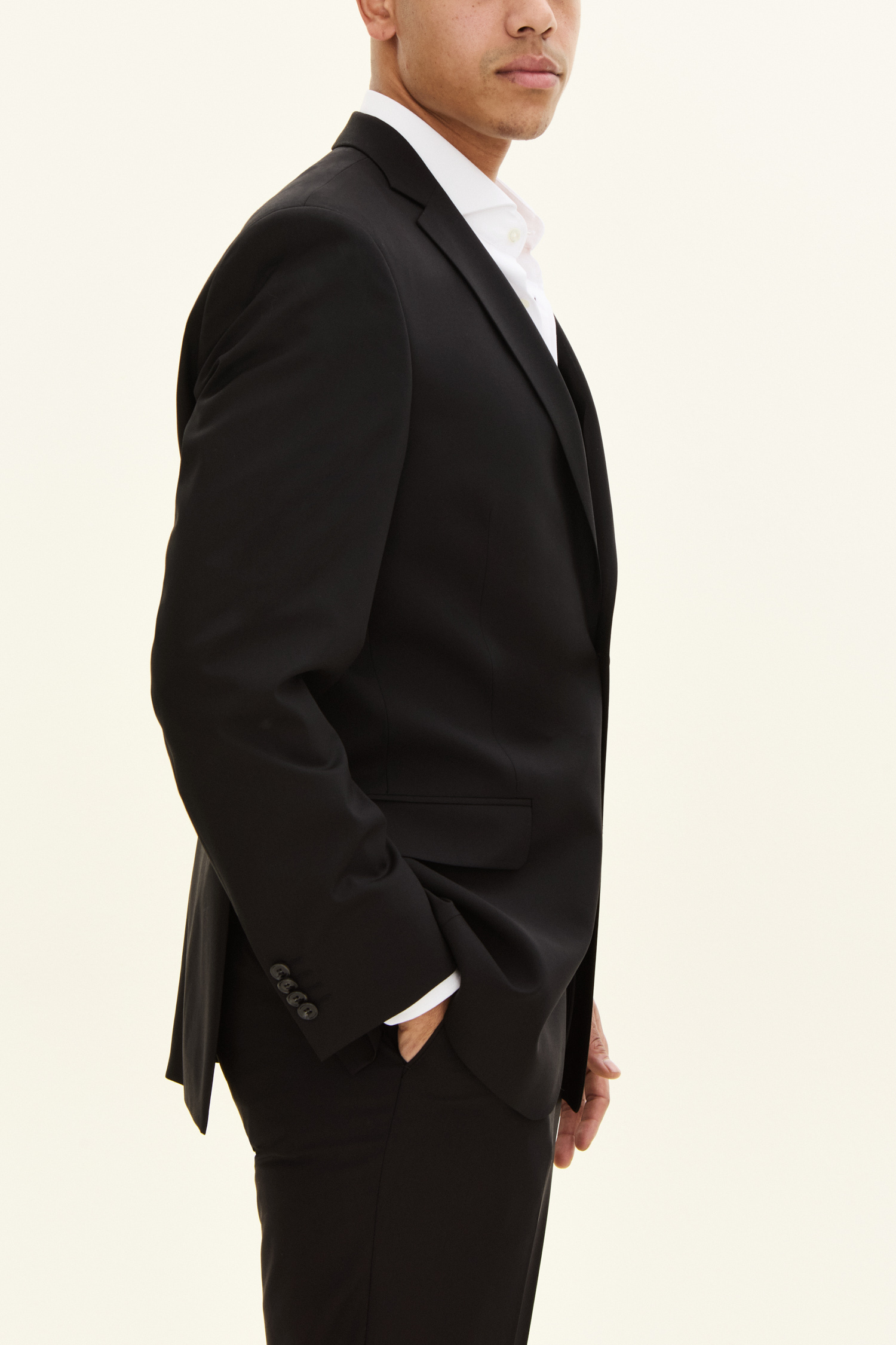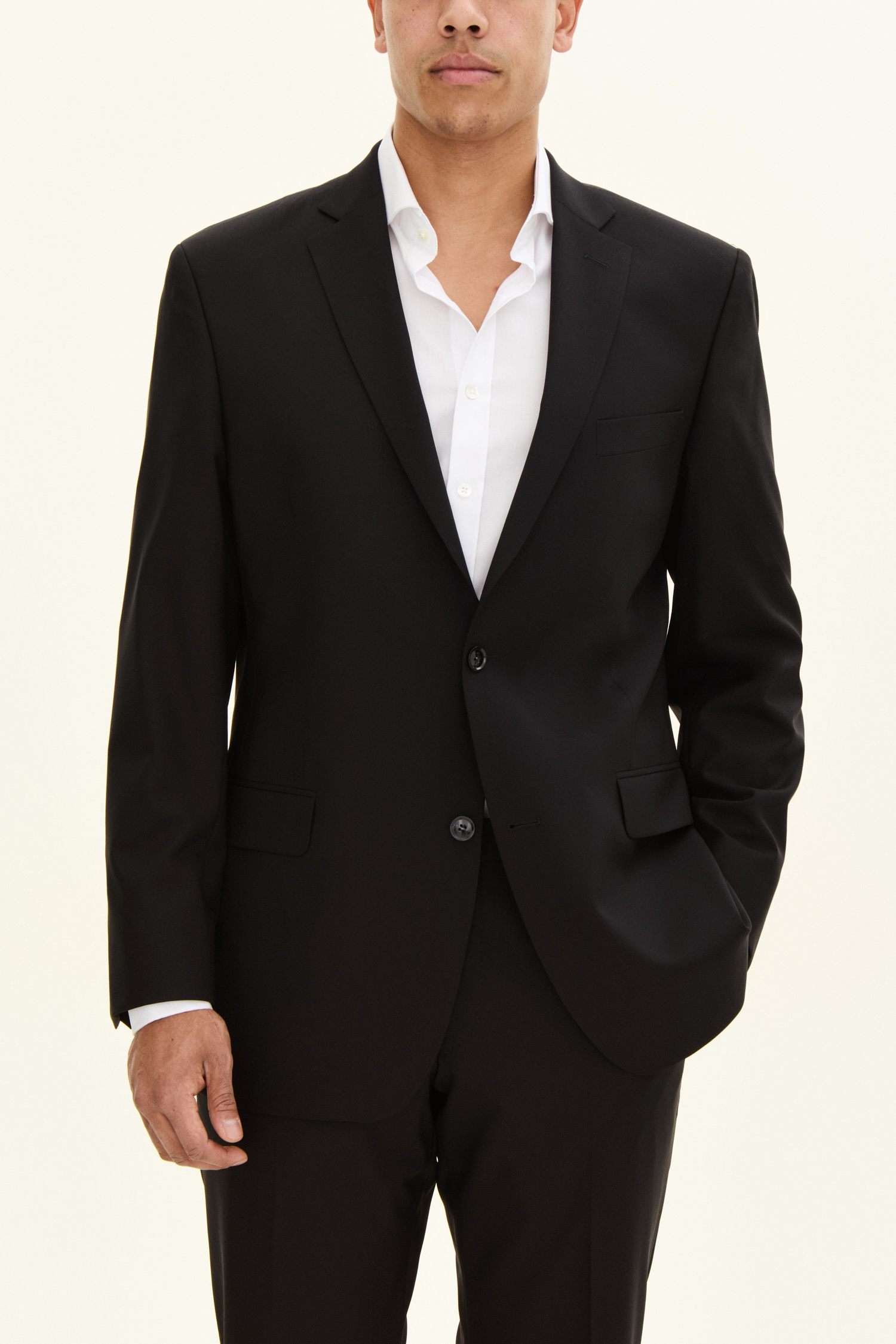 Formal jacket in a spacious fit with full lining, padded shoulders and flap pockets. Made of Super 120's wool.