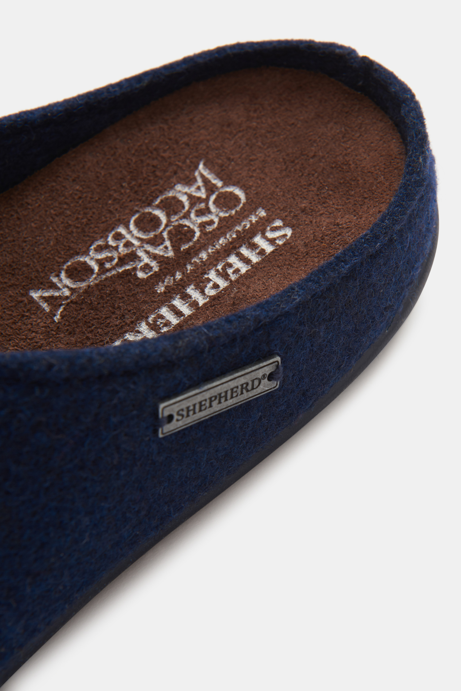 Stable and light slippers in wool. The slippers are in a classic slip-in model and have a built-up insole in suede with memory foam that adapts to the shape of the foot. Very light and soft rubber outsole. In exclusive collaboration with Shepherd of Sweden.