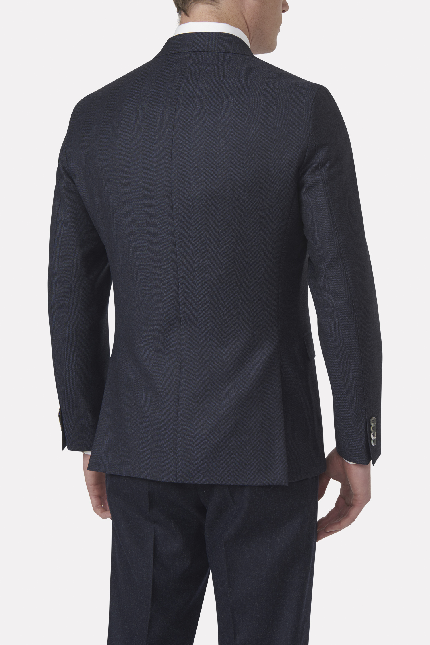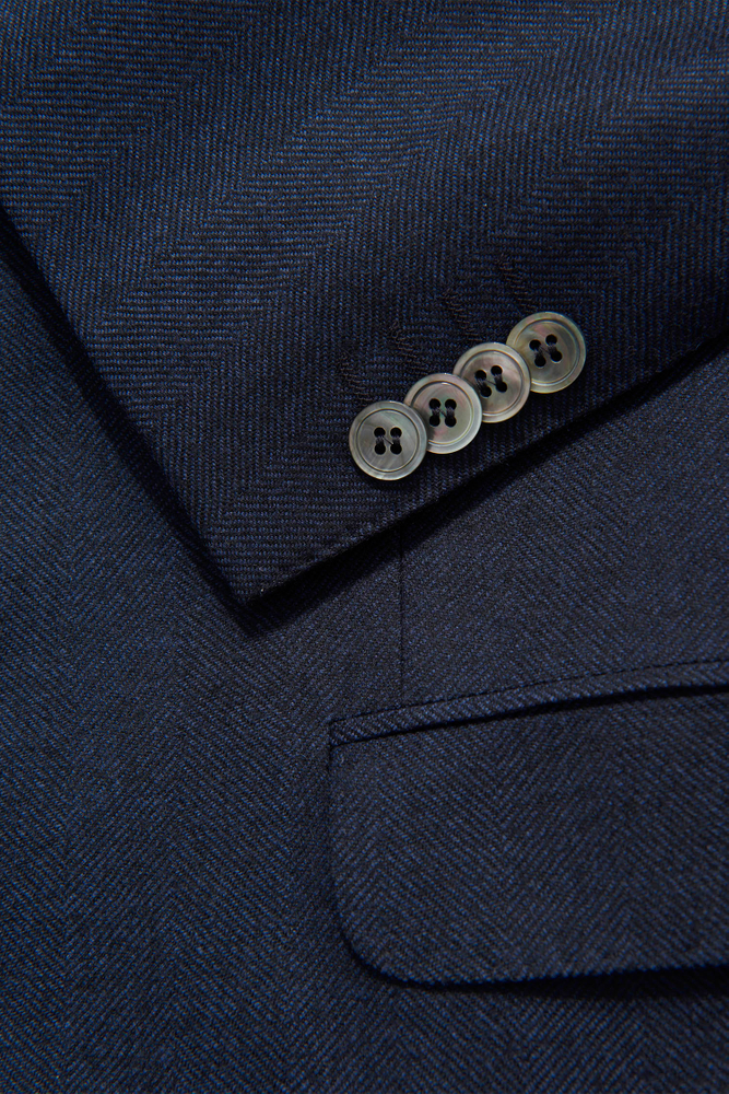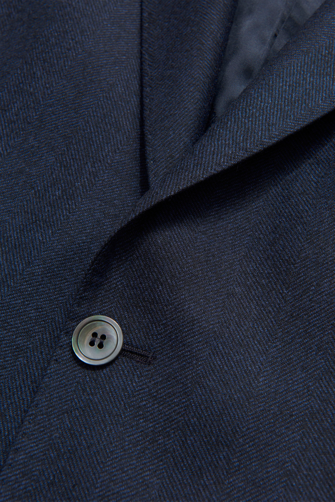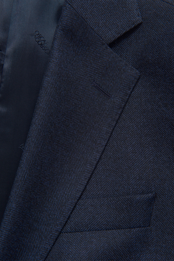 Formal jacket with soft shoulders, full lining and straight silhouette. Subtle herringbone pattern made by Marzotto in Super 110’s wool.