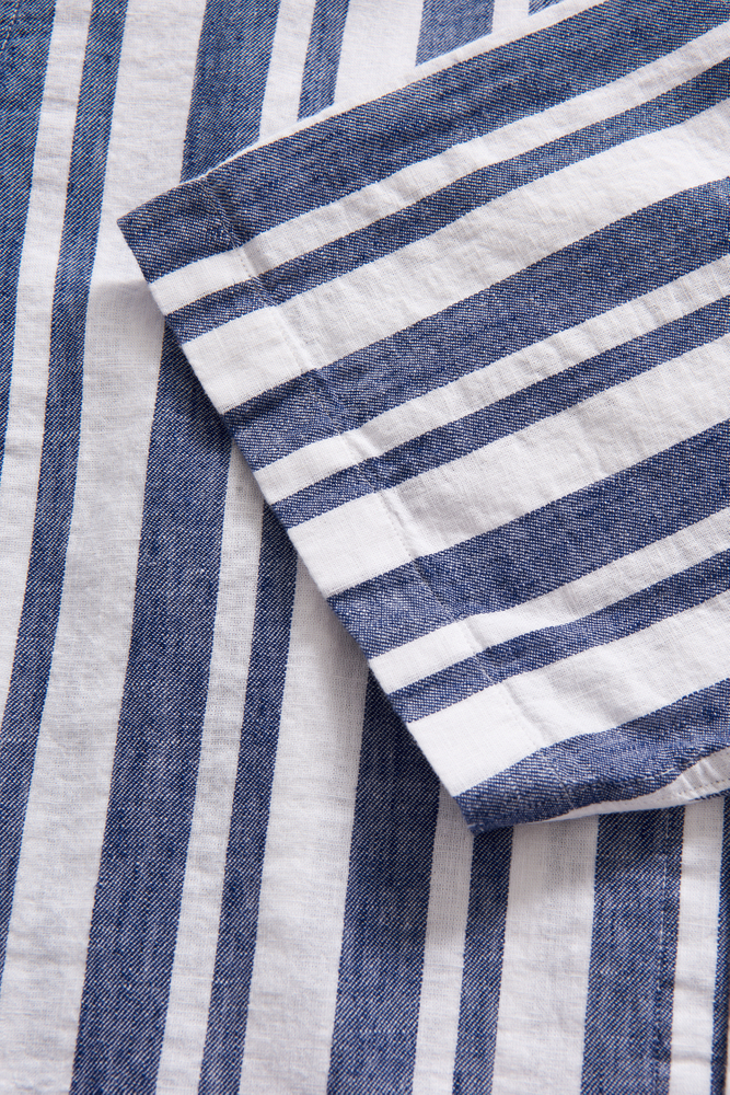 Short sleeved shirt in regular fit with a bowling collar. Made in a striped cotton and linen fabric.