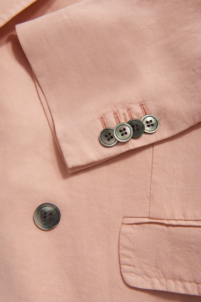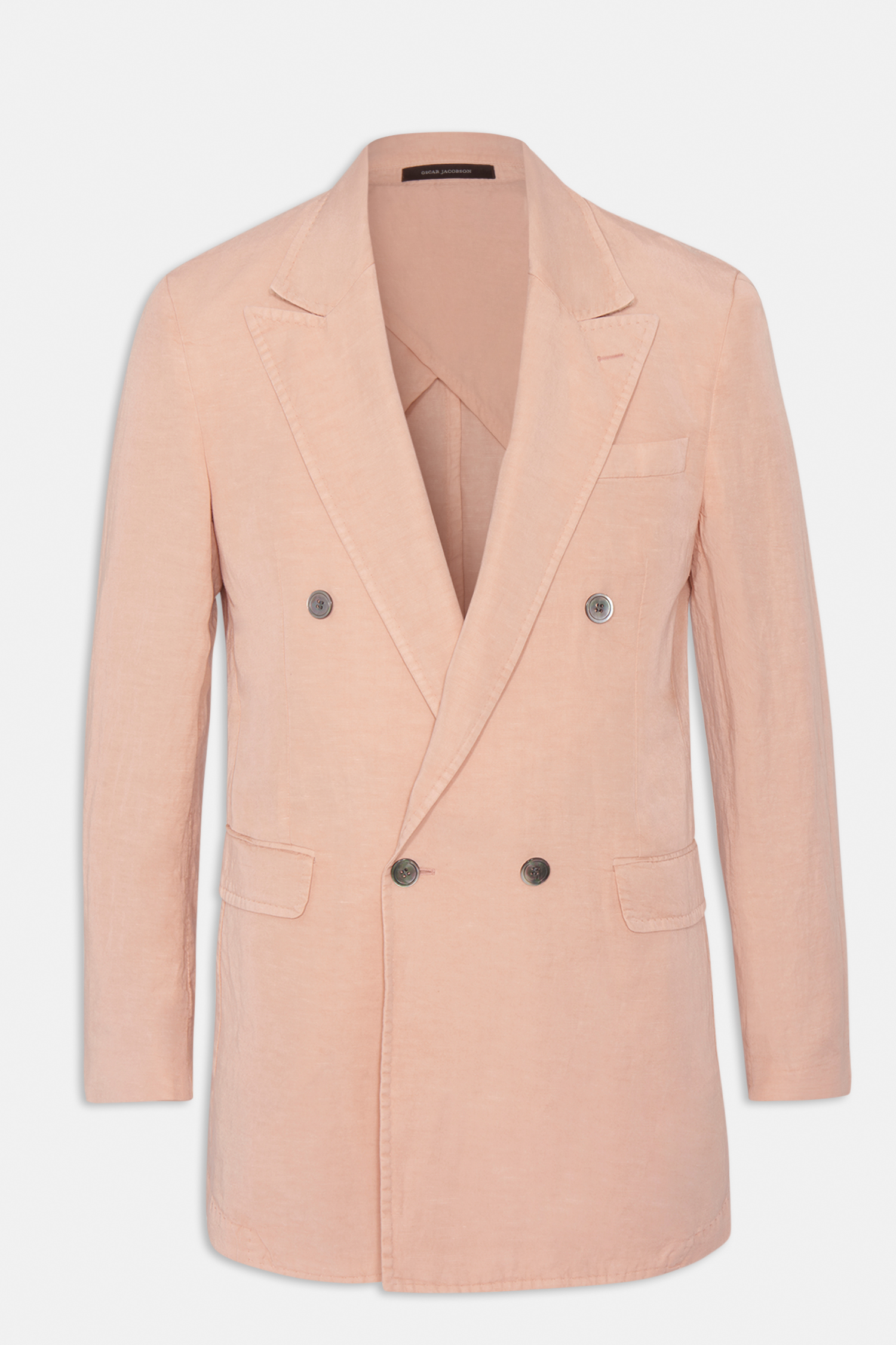 Our double breasted jacket is cut straight with super soft construction. Made from linen and lyocell this soft hand offers relaxed elegance.