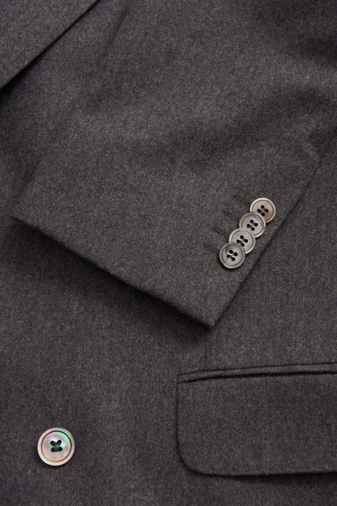 Double-brested blazer in regular fit with soft shoulders, full lining and wide peak lapels. Comes in a soft wool flannel fabric.