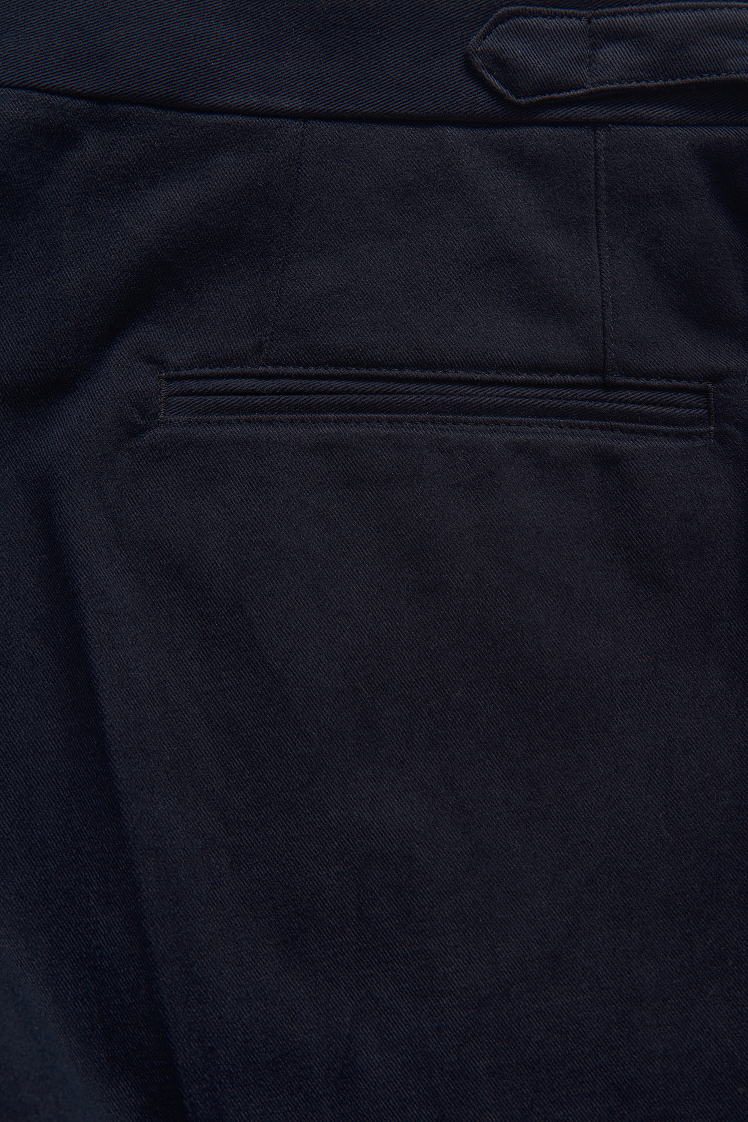 Trousers with a high waist and single pleats. Here in a heavy cotton fabric with a soft feeling which resembles moleskin.