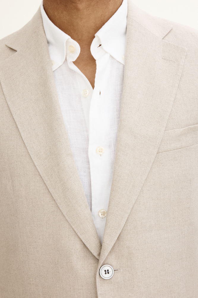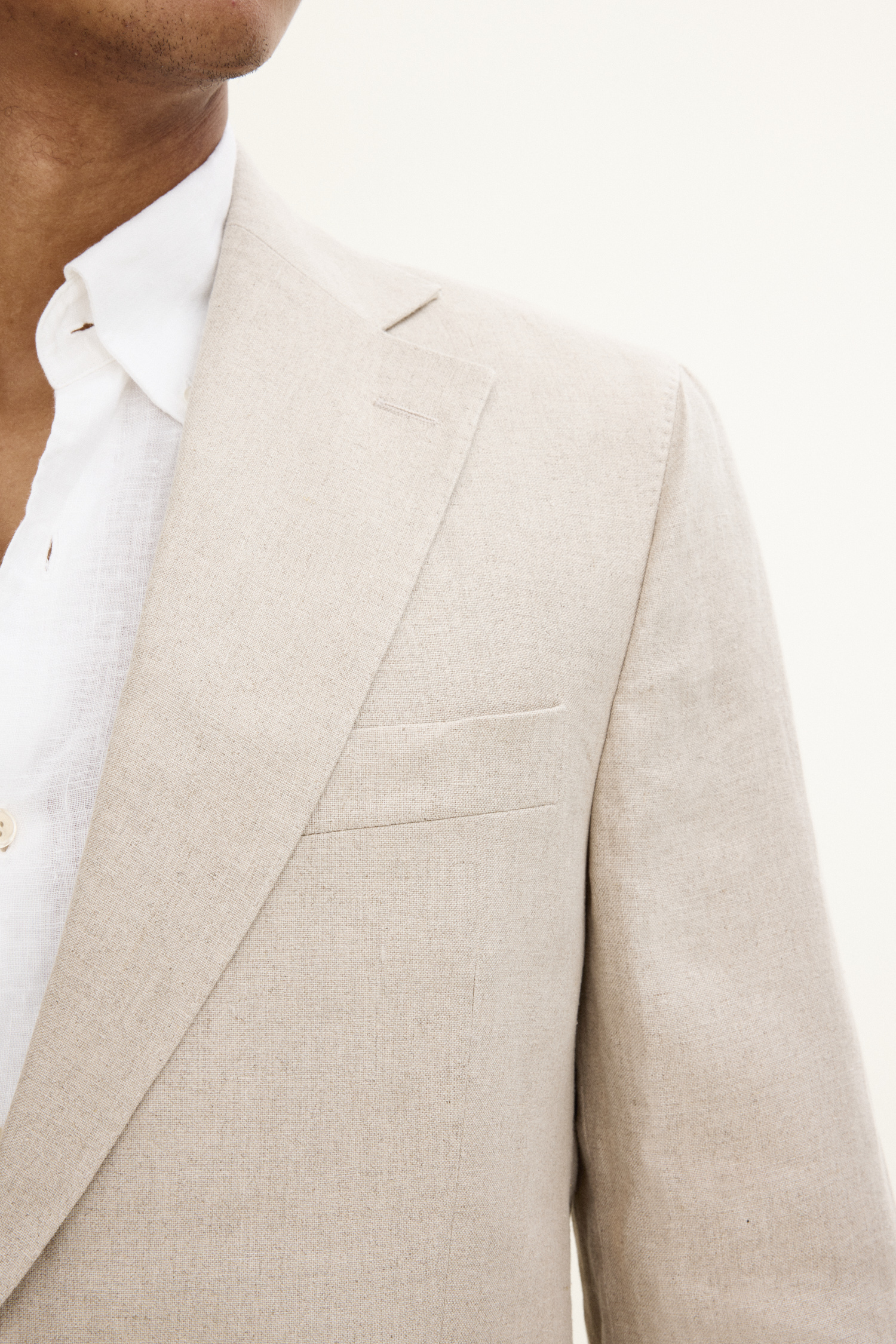 Single breasted blazer in regular fit with a soft shoulder, flap pockets and fully lined inside. Made in a linen cloth.