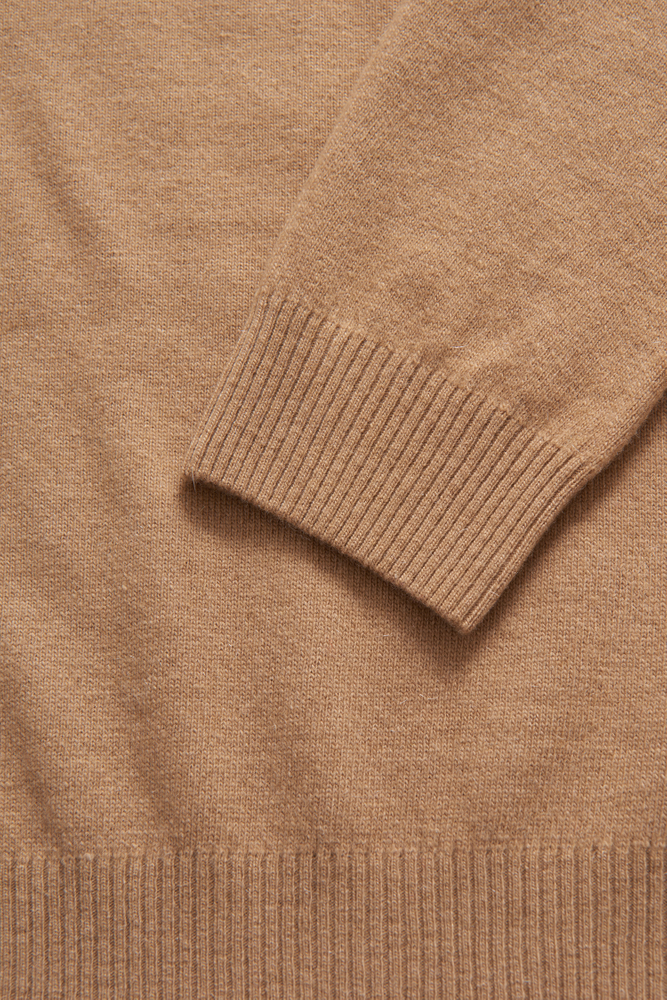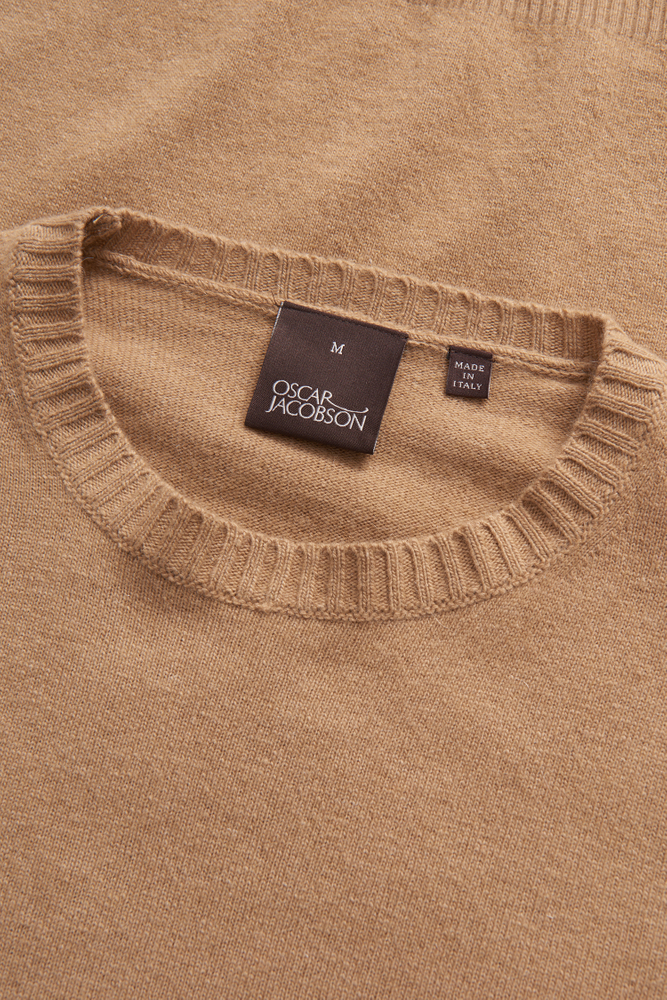 Roundneck sweater with rib knitted collar made of 12gg wool, cashmere and viscose. A true wardrobe essential base garment that can be matched with basically anything in the closet.