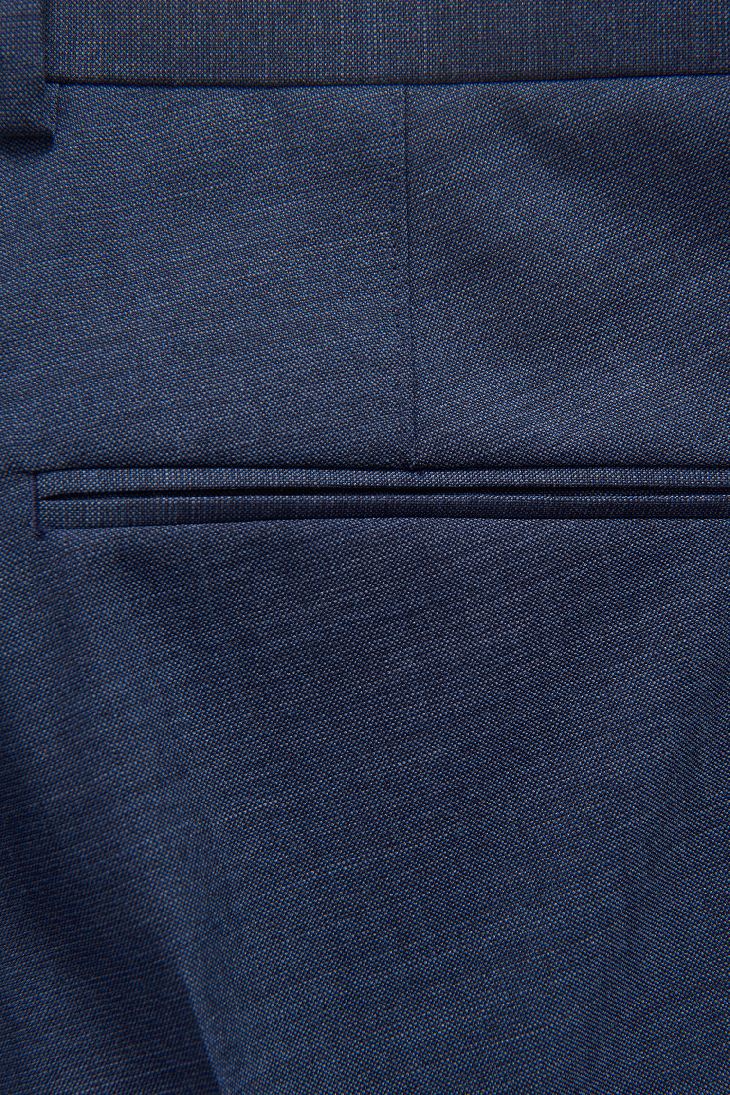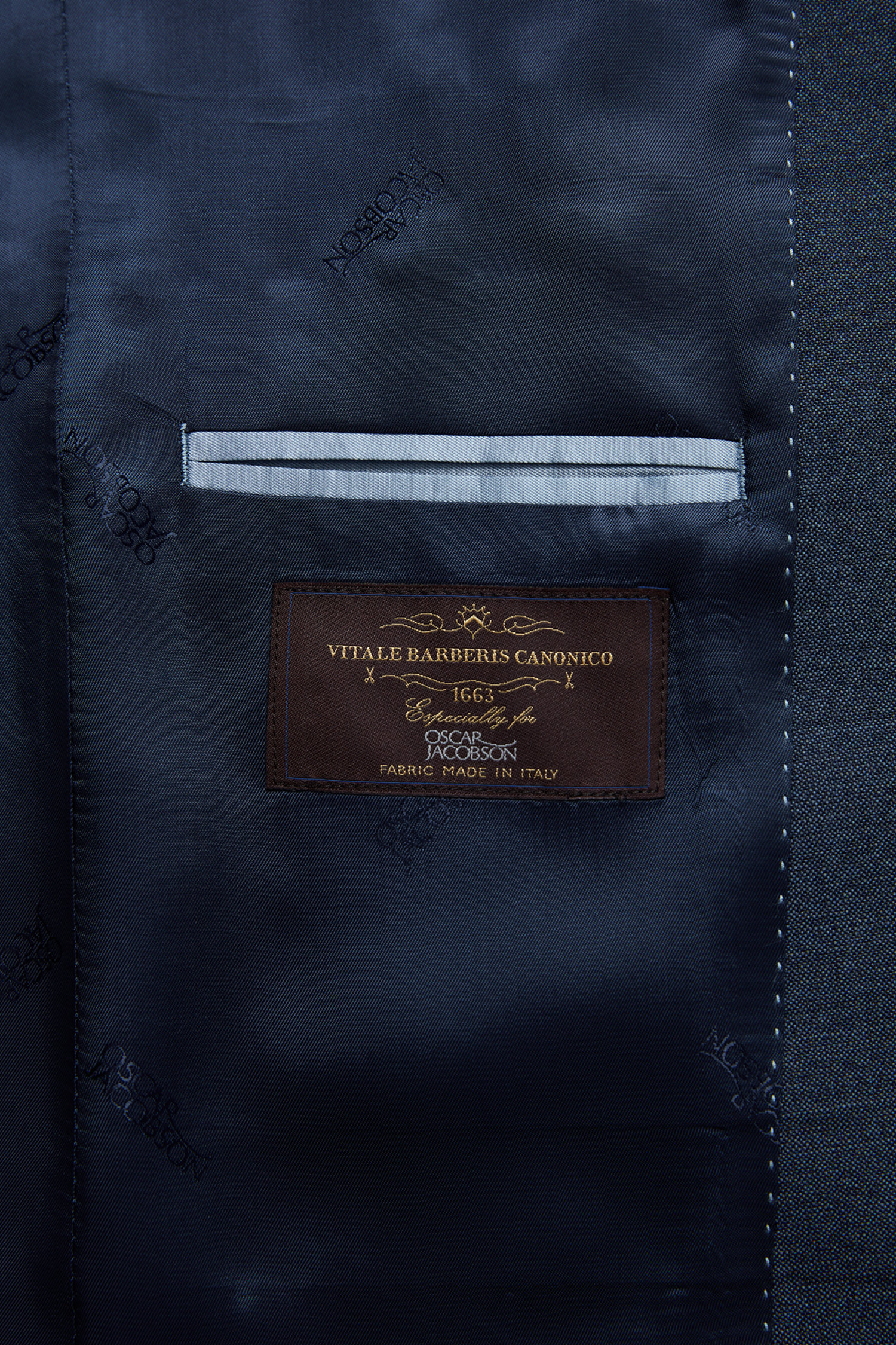 Club suit in dark blue wool yarn with structure from the Italian weaving mill Marzotto. A soft construction where the interlining and shoulder structure are almost non-existent. The blazer is fully lined and equipped with traditional pockets with pocket lids. The trouser has a traditional, somewhat tapered fit and a normal waist.