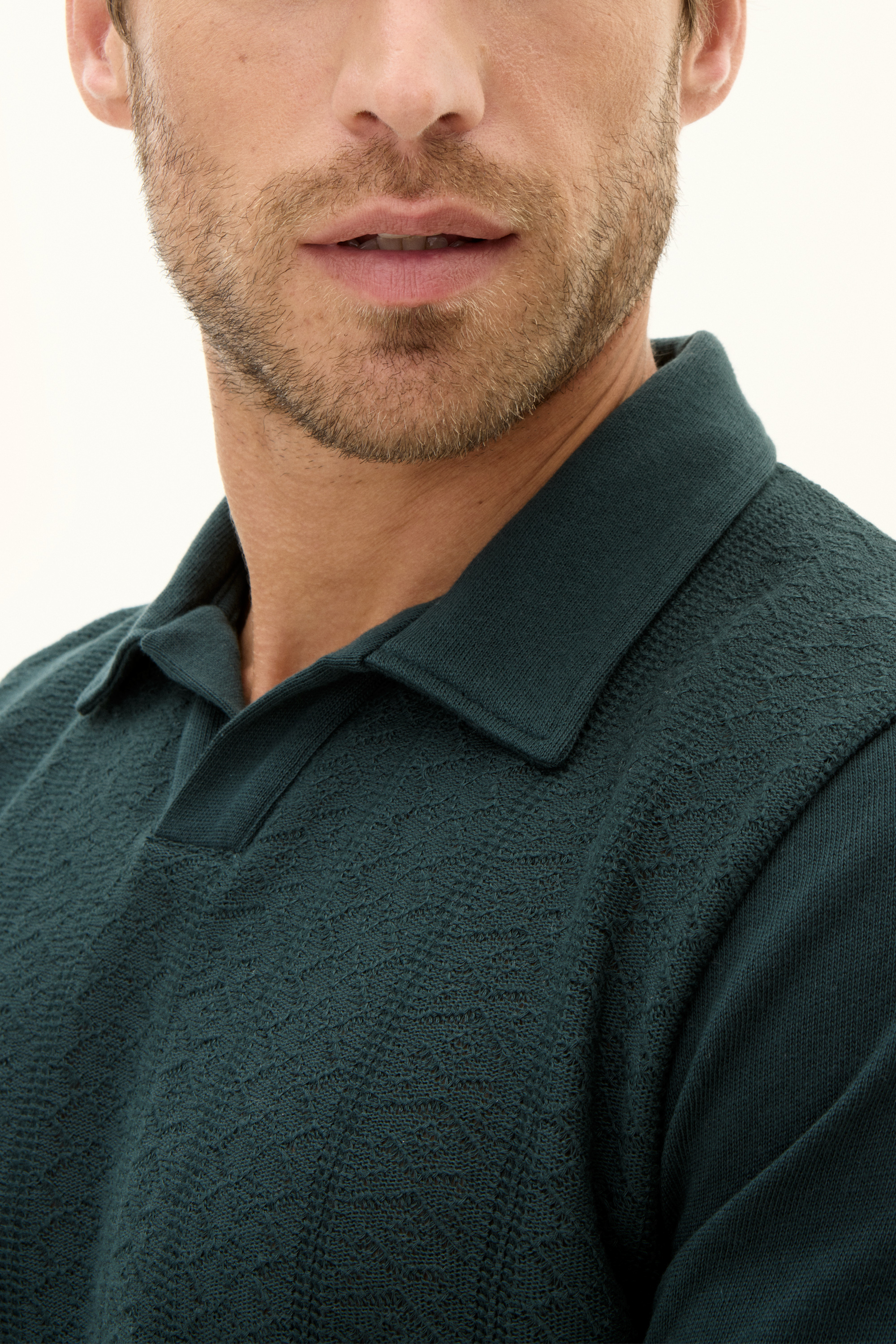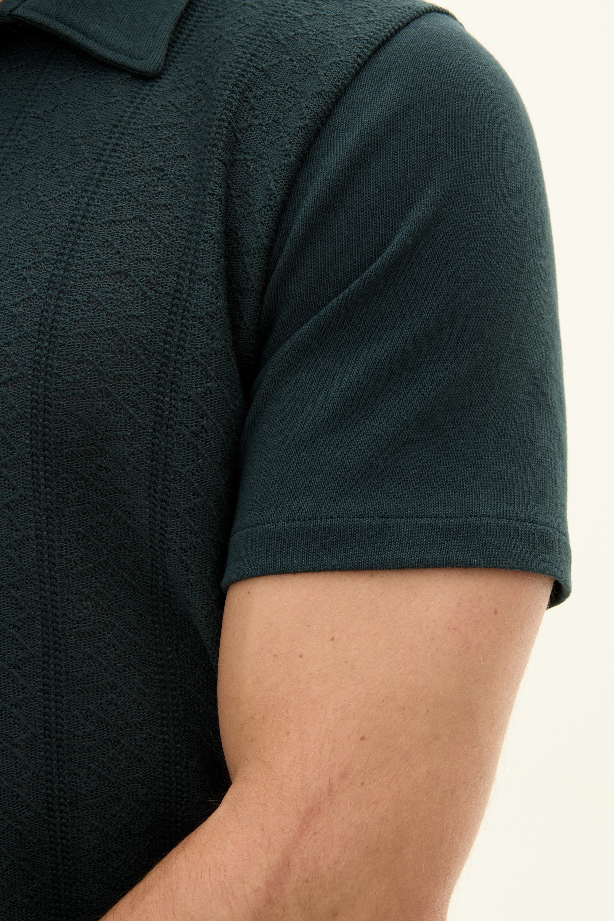 A short-sleeved cotton jersey pique with subtle texture at the front. A versatile garment that provides a comfortable but well-dressed look, ideal for warm days.