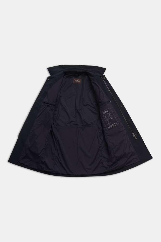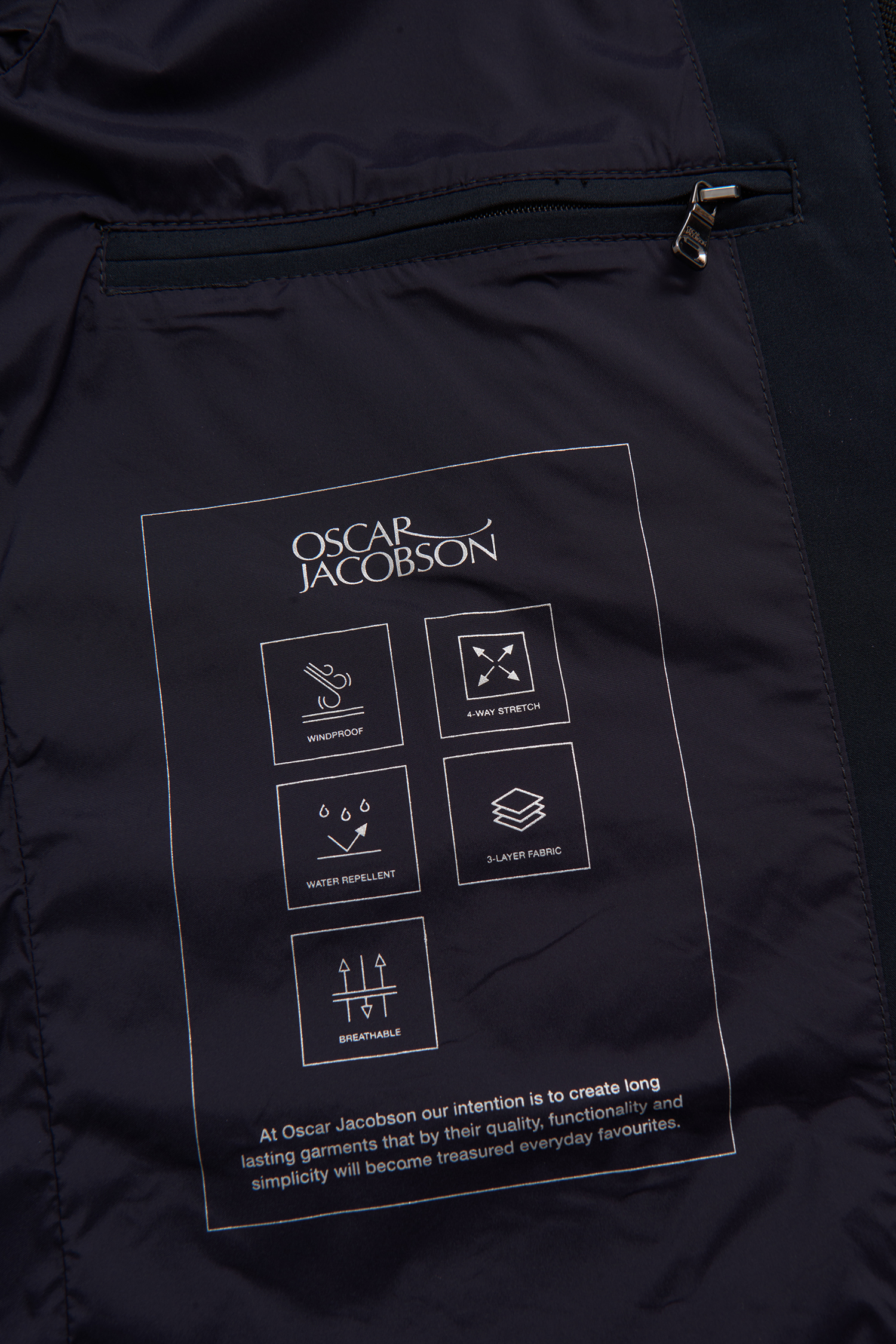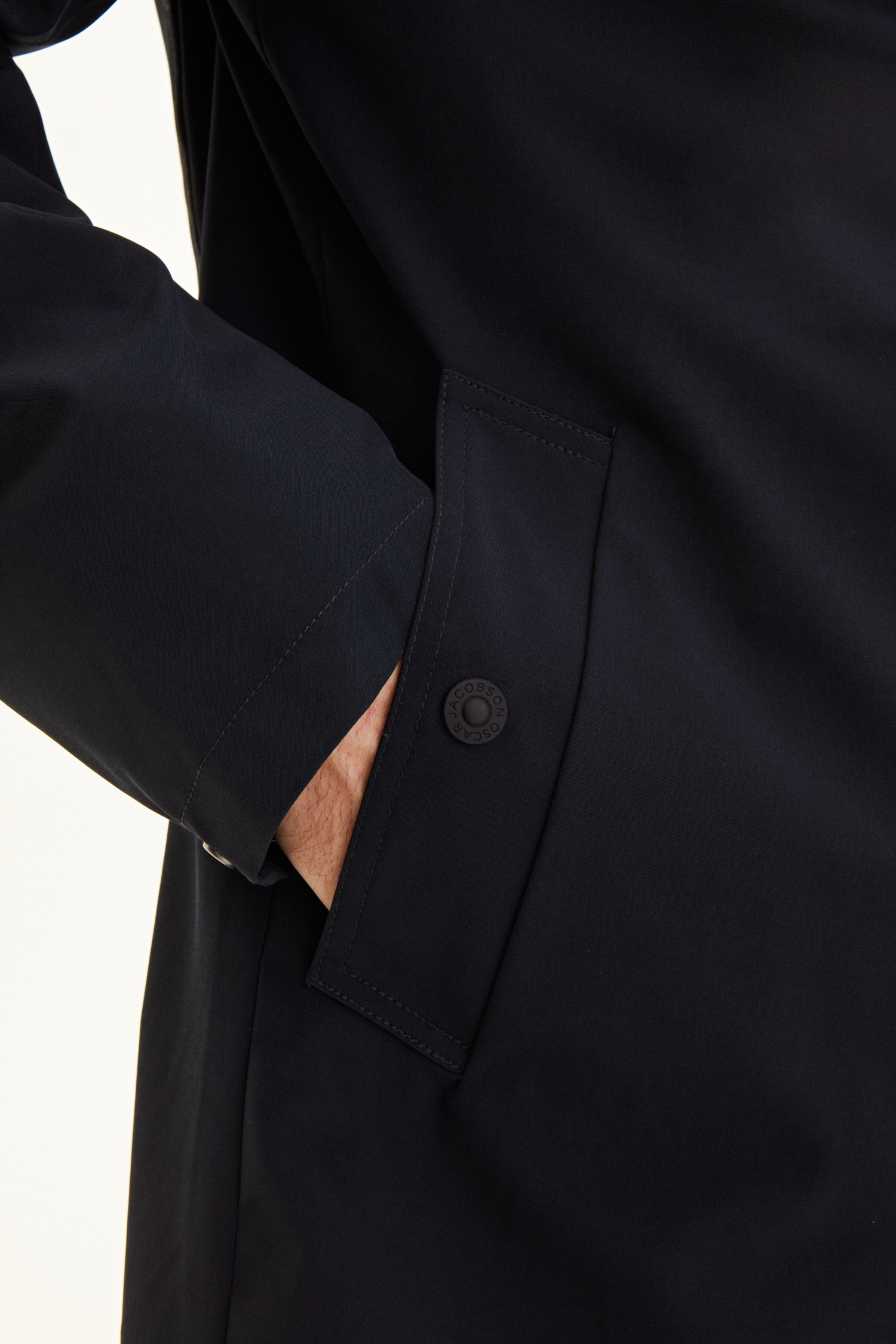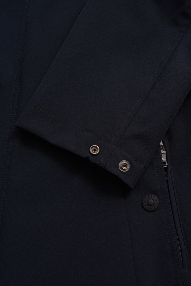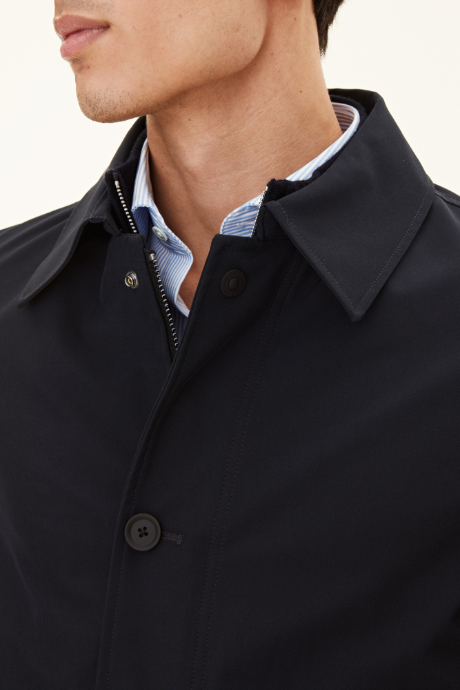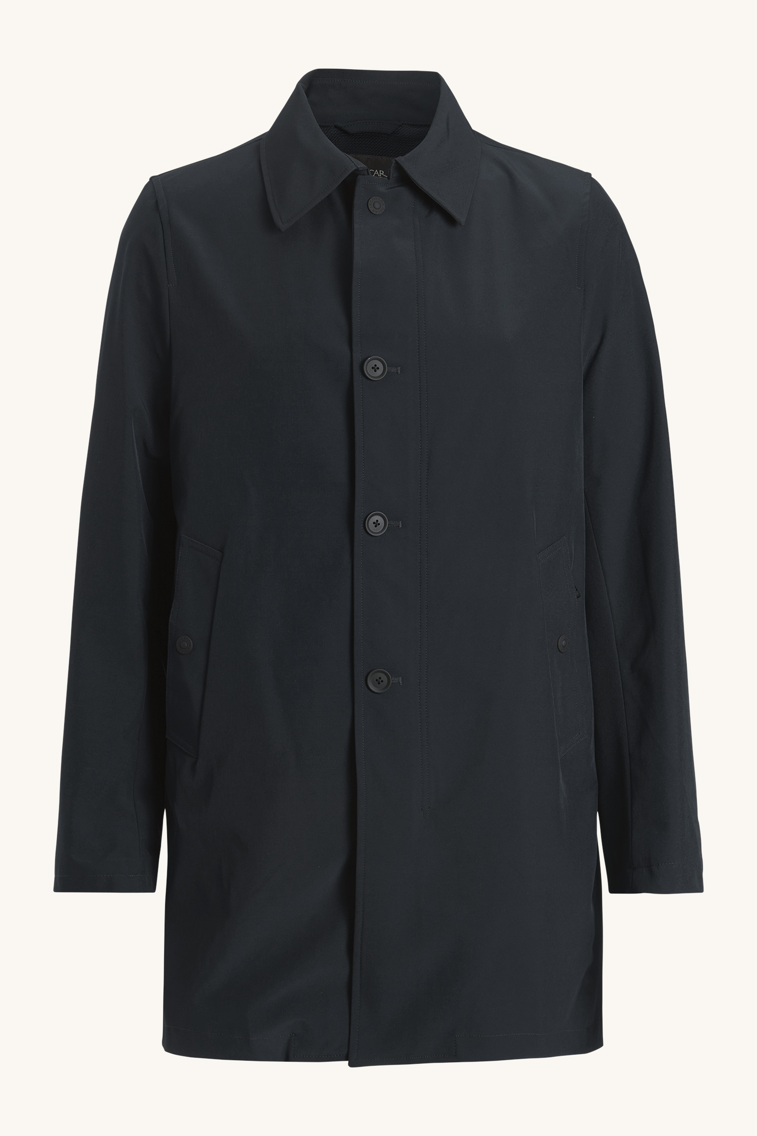 Wind and water repellant Car coat with hidden zipper. A clean and easily combined outerwear just as good for autumn as for spring. The coat has two side pockets with zipper and button closure and two inner pockets.