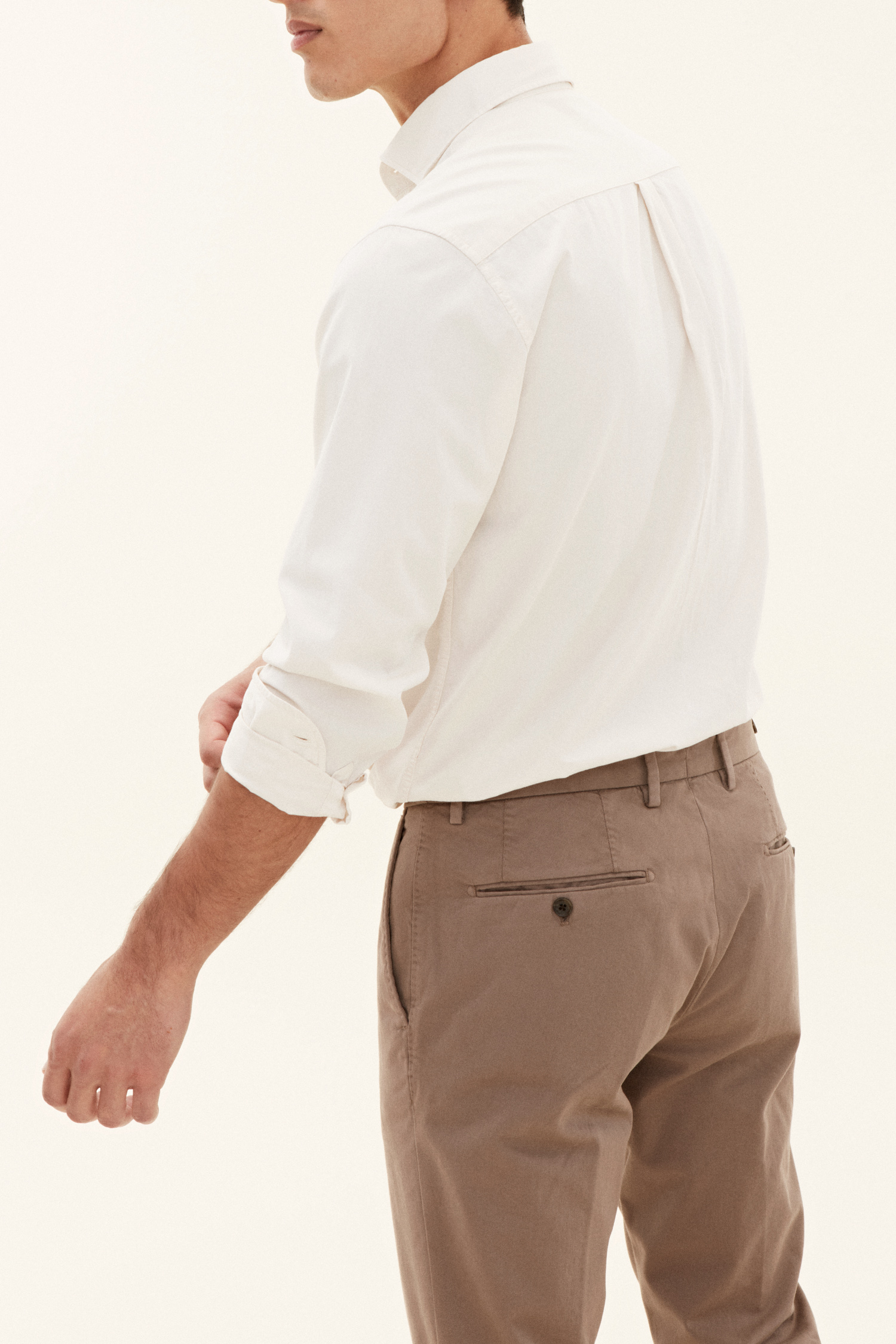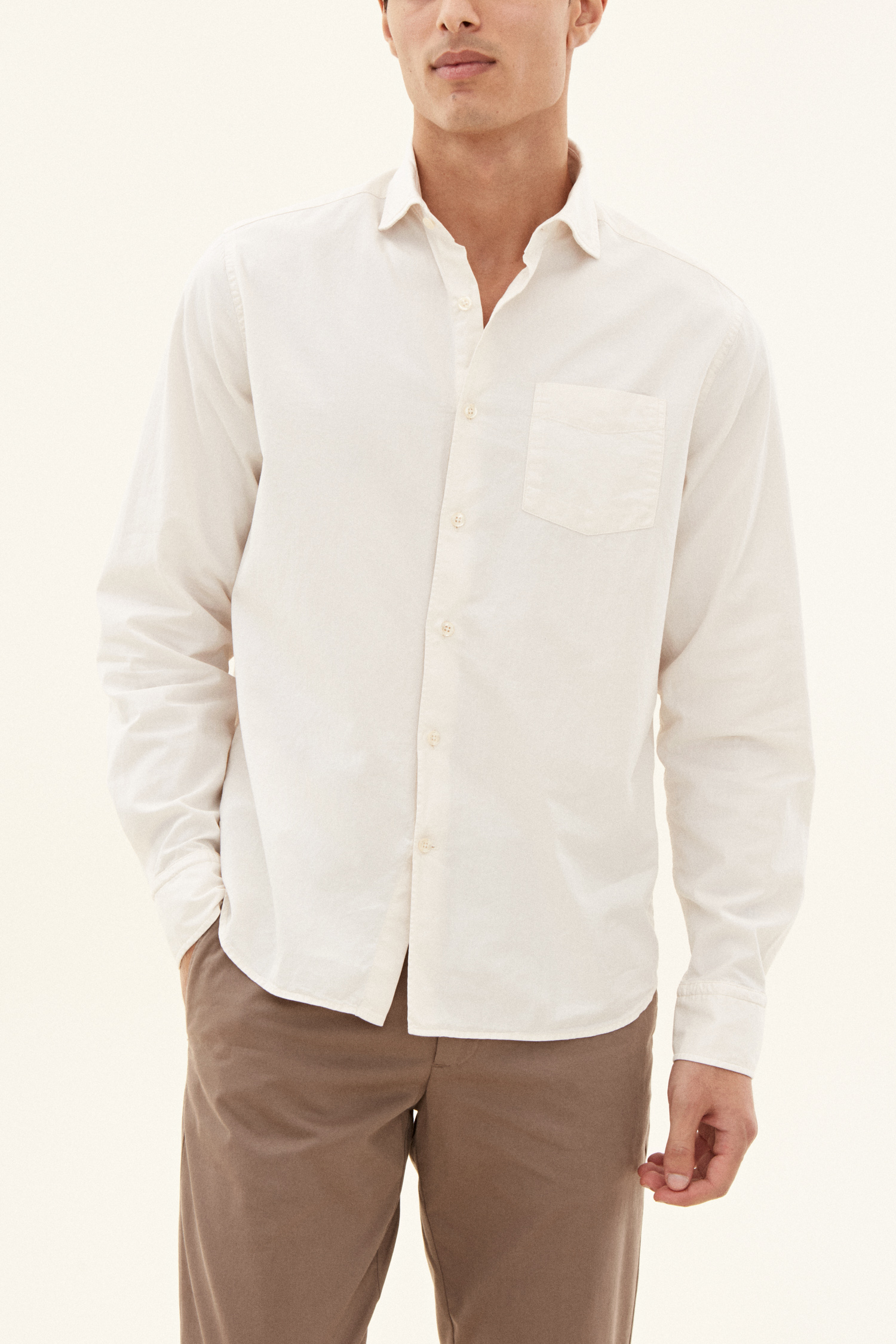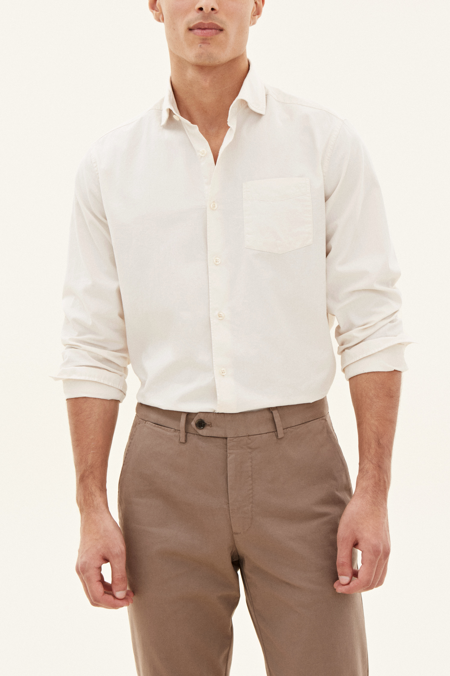 Our regular fit wide spread twill shirt is a versatile piece that can be dressed up or down. Made from 100% cotton, it features a wide spread collar and a single chest pocket. The twill weave adds a subtle texture to the fabric.