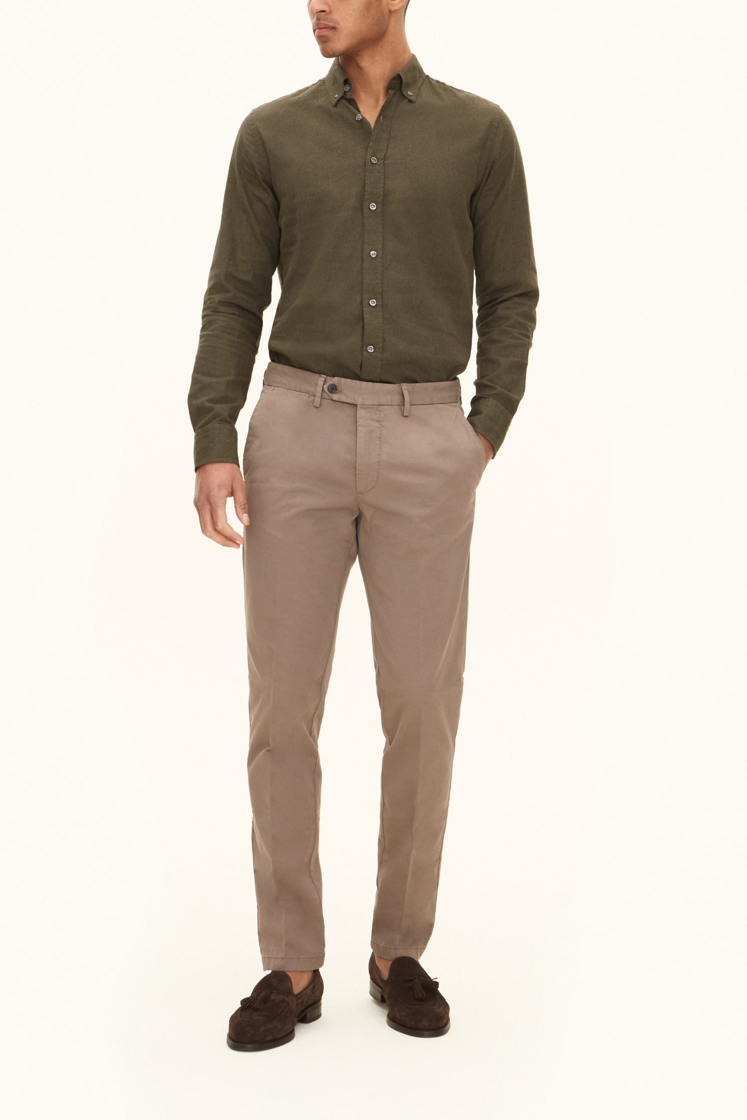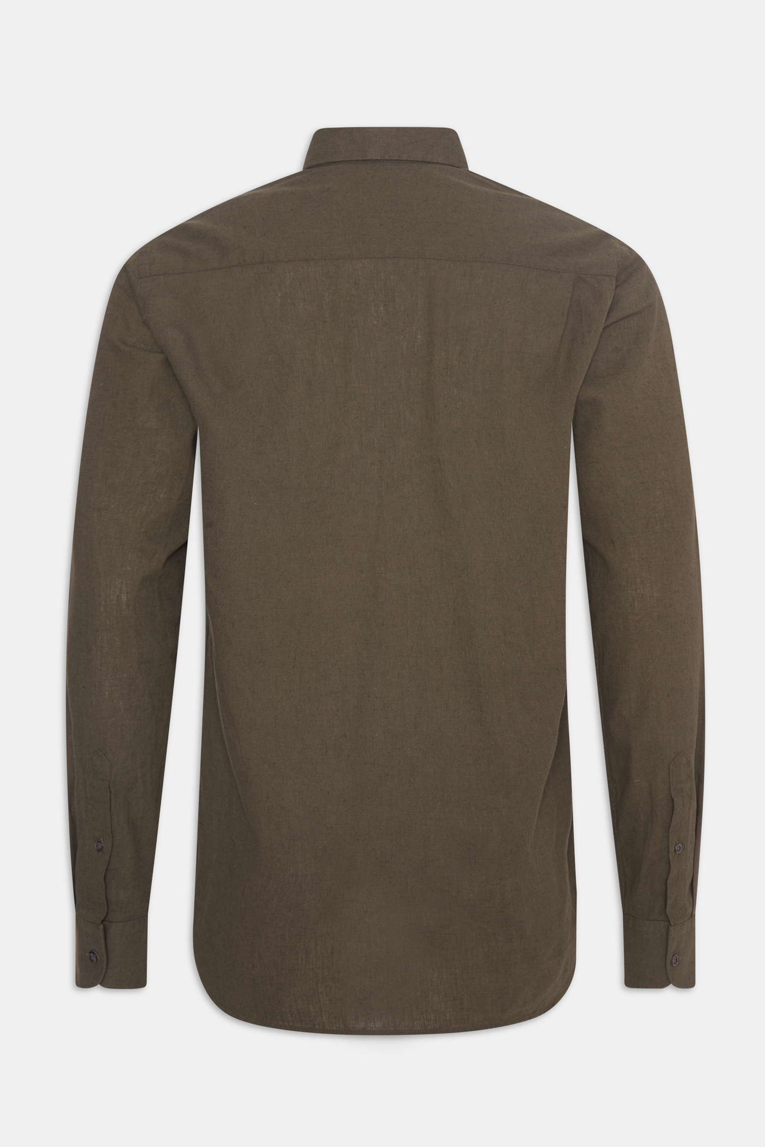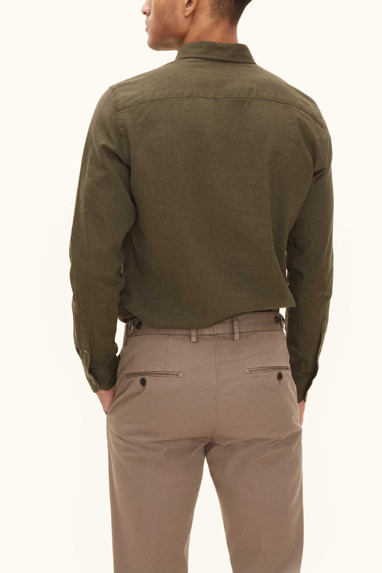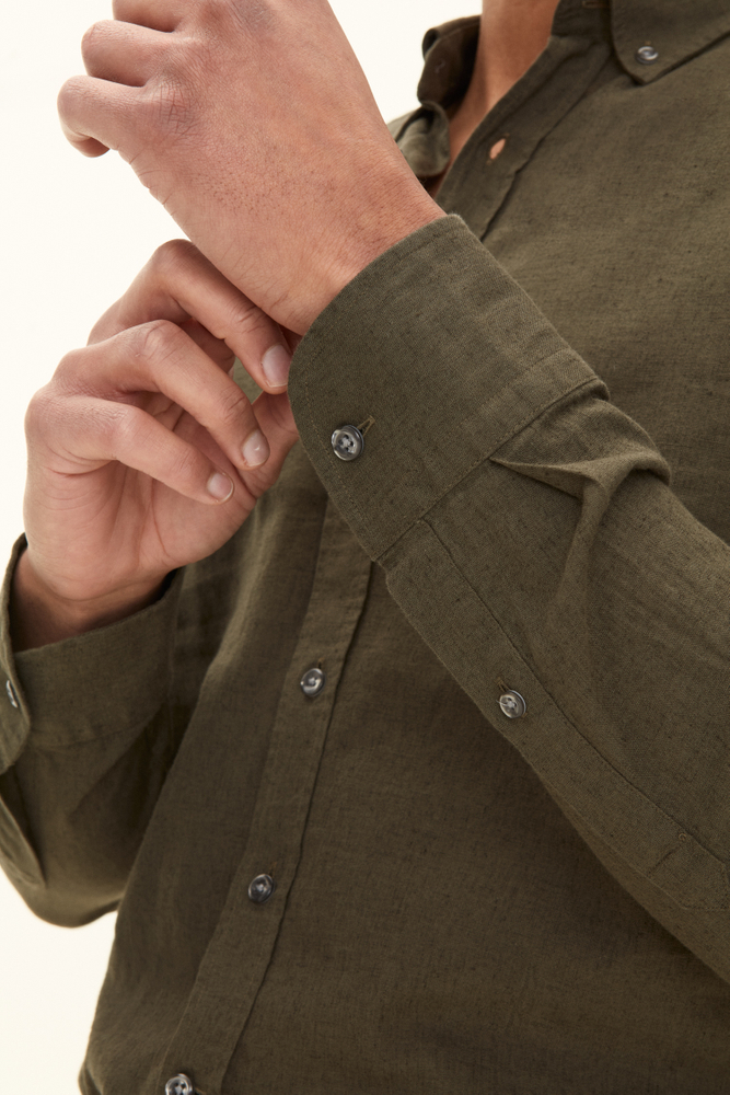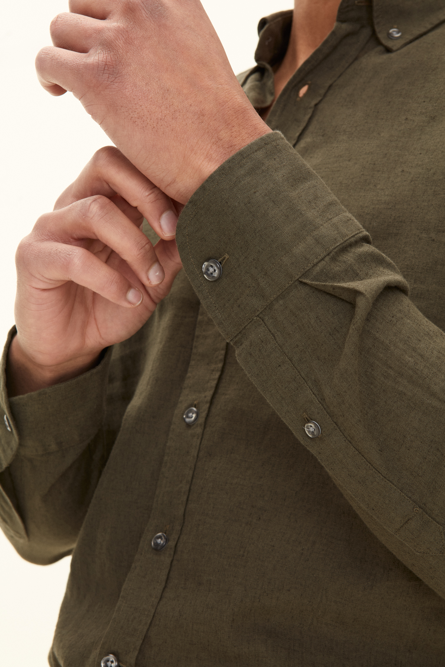 Cotton & linen shirt in slim fit with a casual button down collar and single cuff.