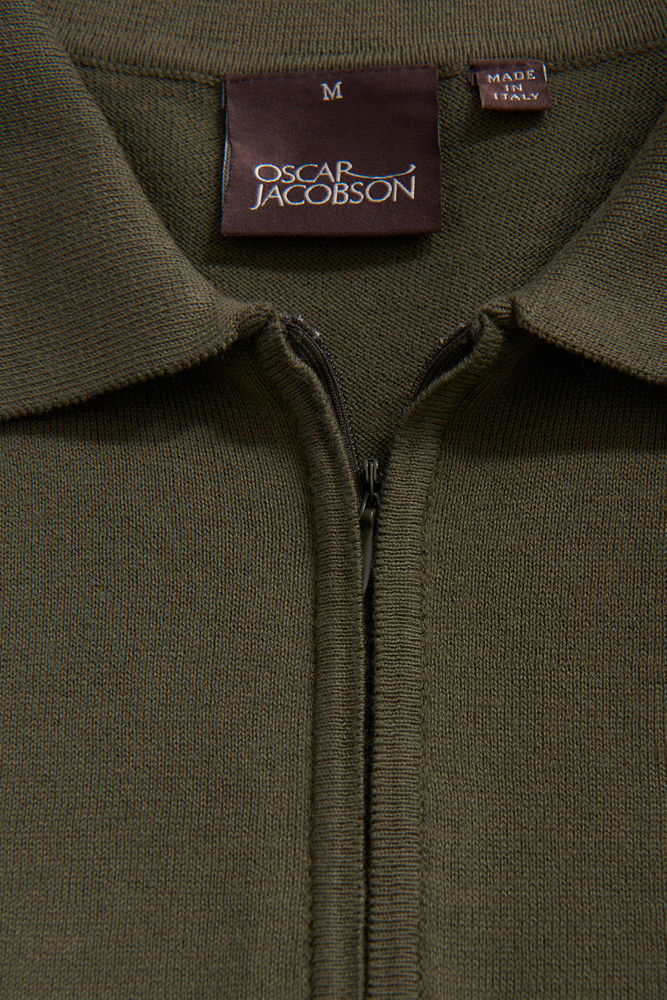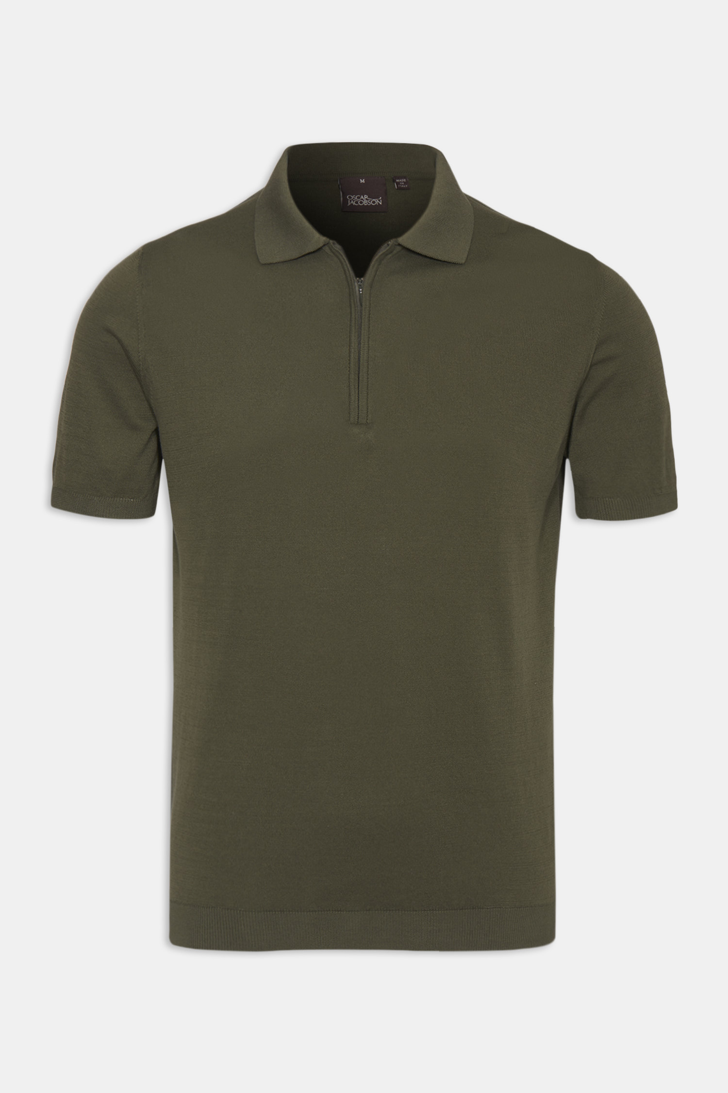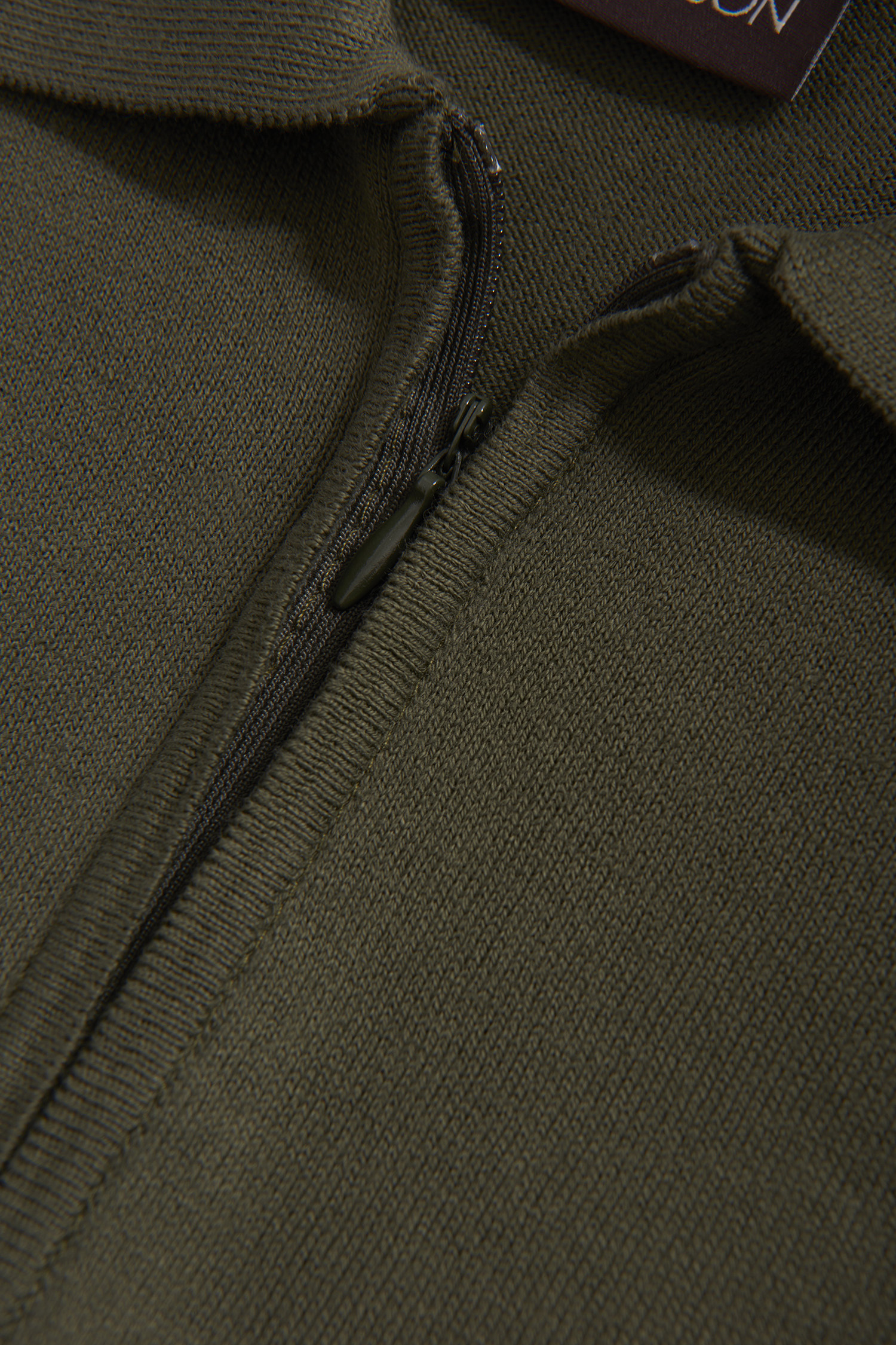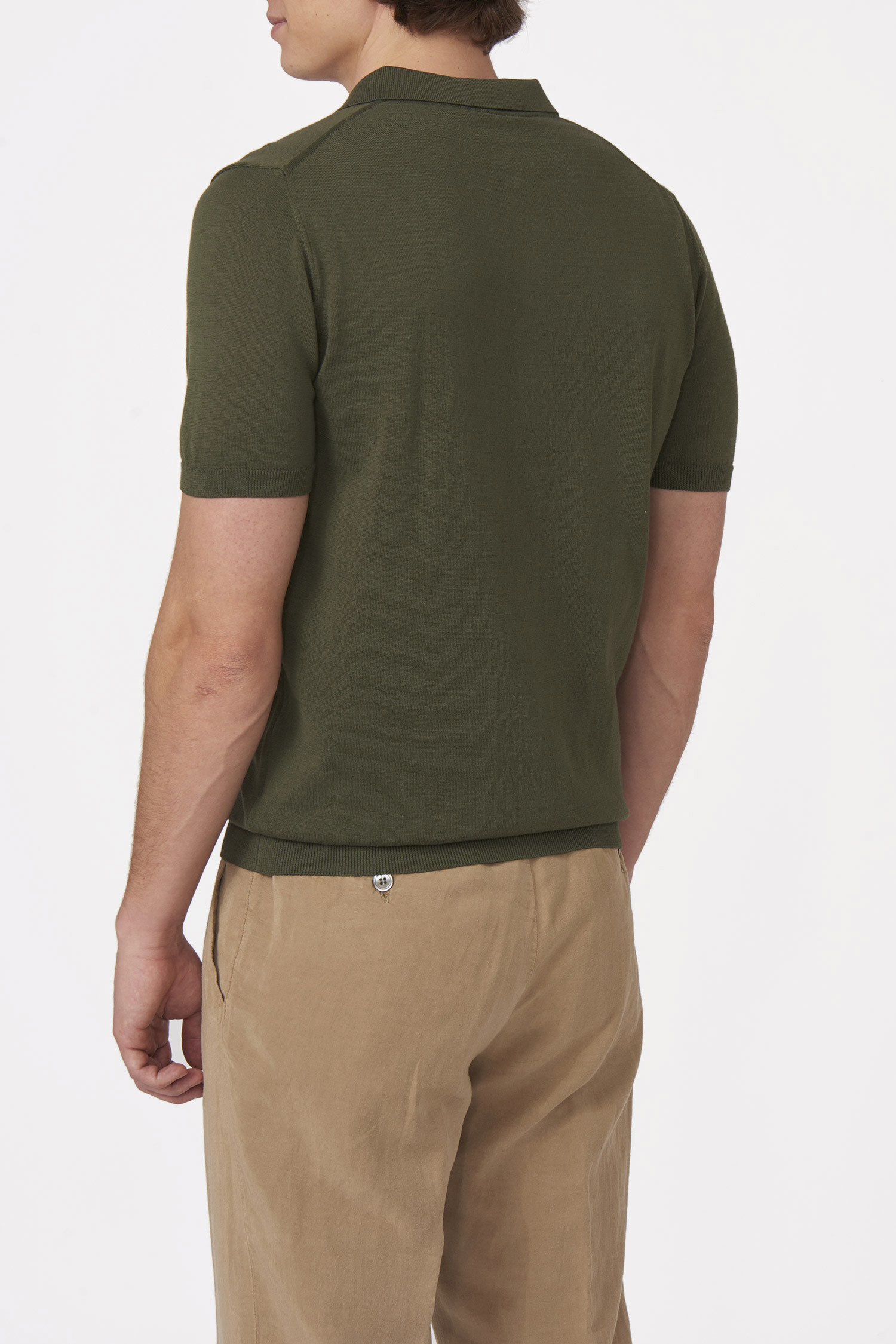 Short-sleeved polo shirt with zip-collar made in fine knitted organic cotton.