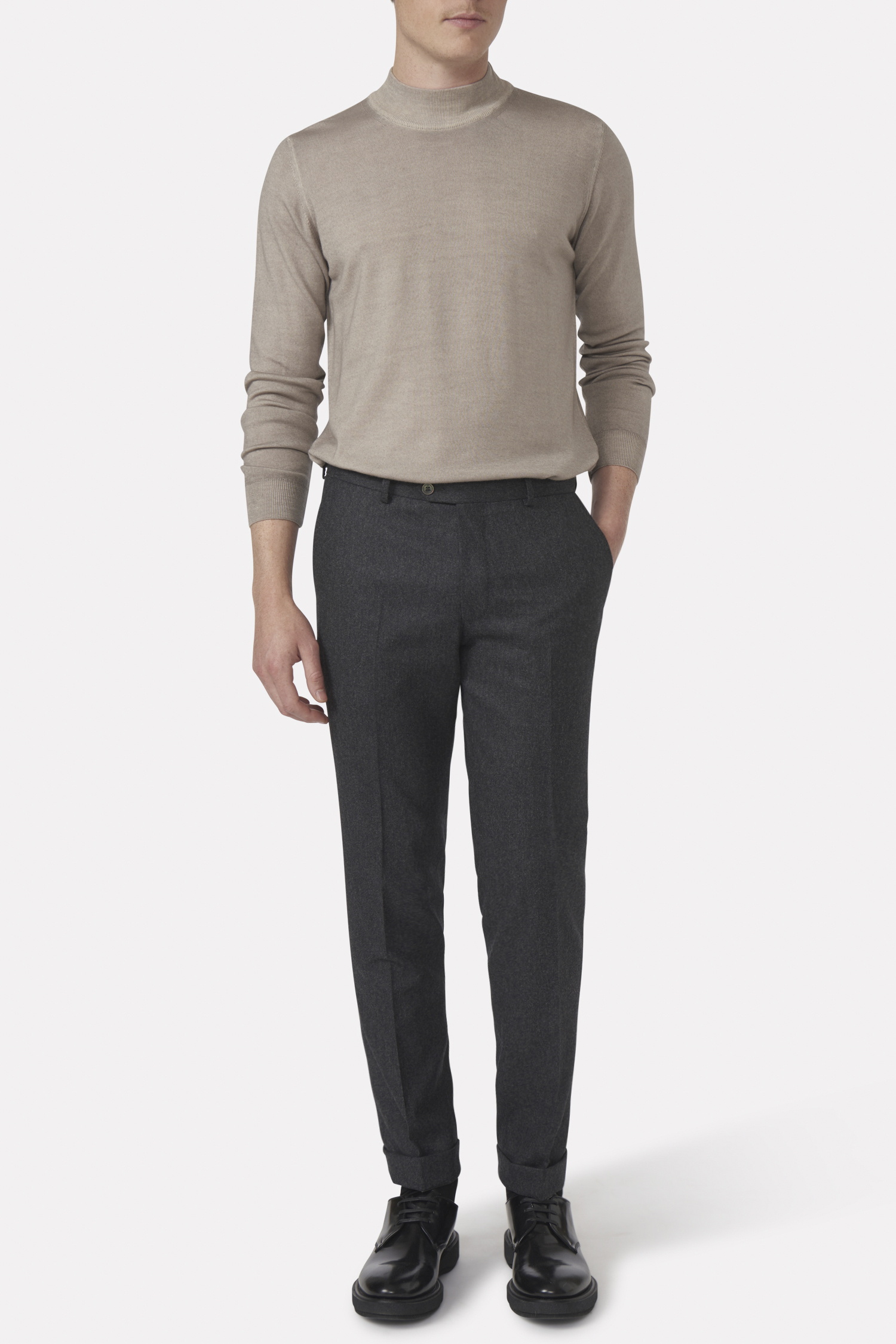 Formal trouser with tapered fit, turn ups and regular high waist. Italian wool flannel that gives a natural warmth and high breathability.