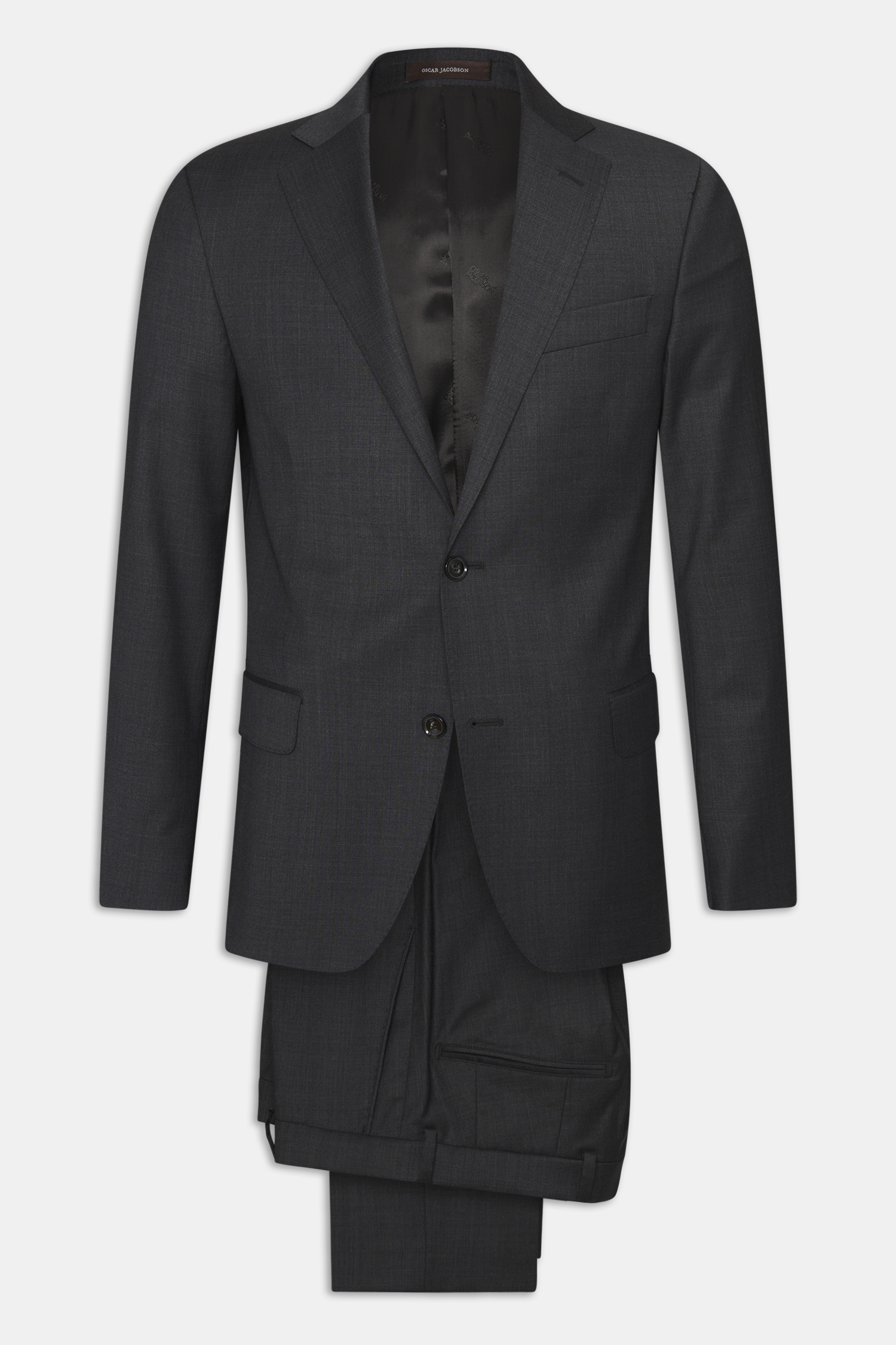 Club suit in dark blue wool yarn with structure from the Italian weaving mill Marzotto. A soft construction where the interlining and shoulder structure are almost non-existent. The blazer is fully lined and equipped with traditional pockets with pocket lids. The trouser has a traditional, somewhat tapered fit and a normal waist.