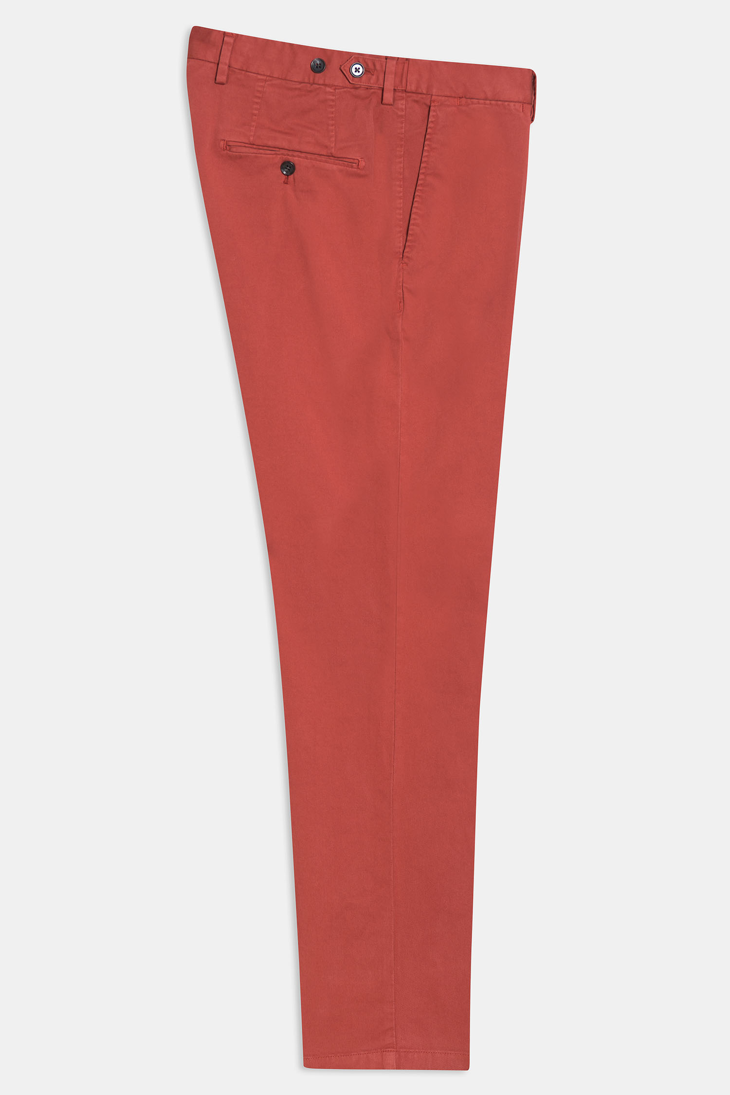 An updated version of the classic chino. This model has a slim fit, normal waist height and the leg ends just over the shoe for a natural fall with no break. The waist is equipped with side adjusters - a stylish detail that can be used to make the waist a few centimetres smaller.