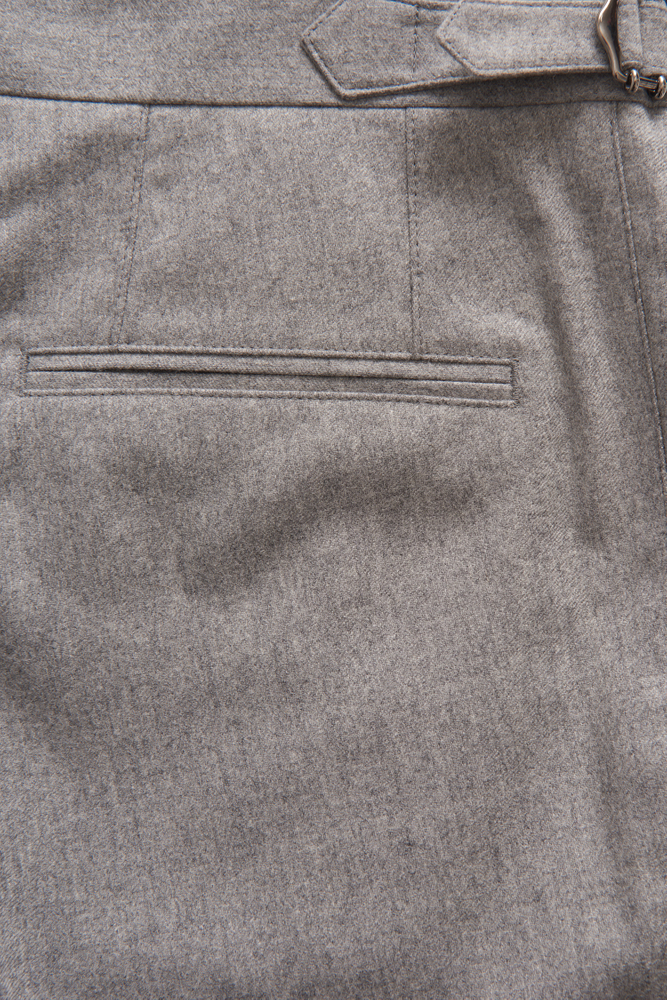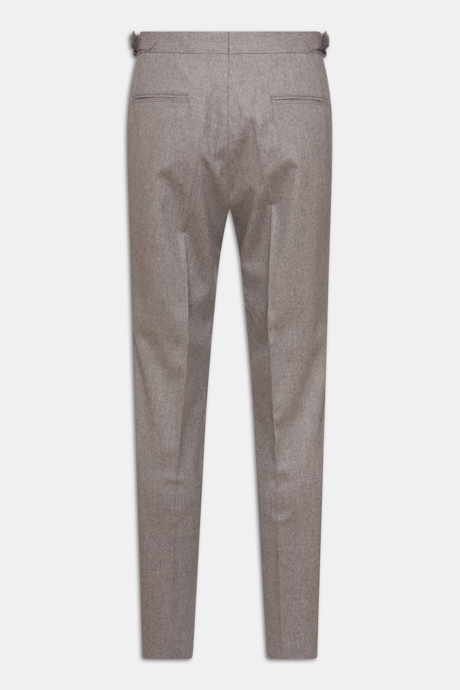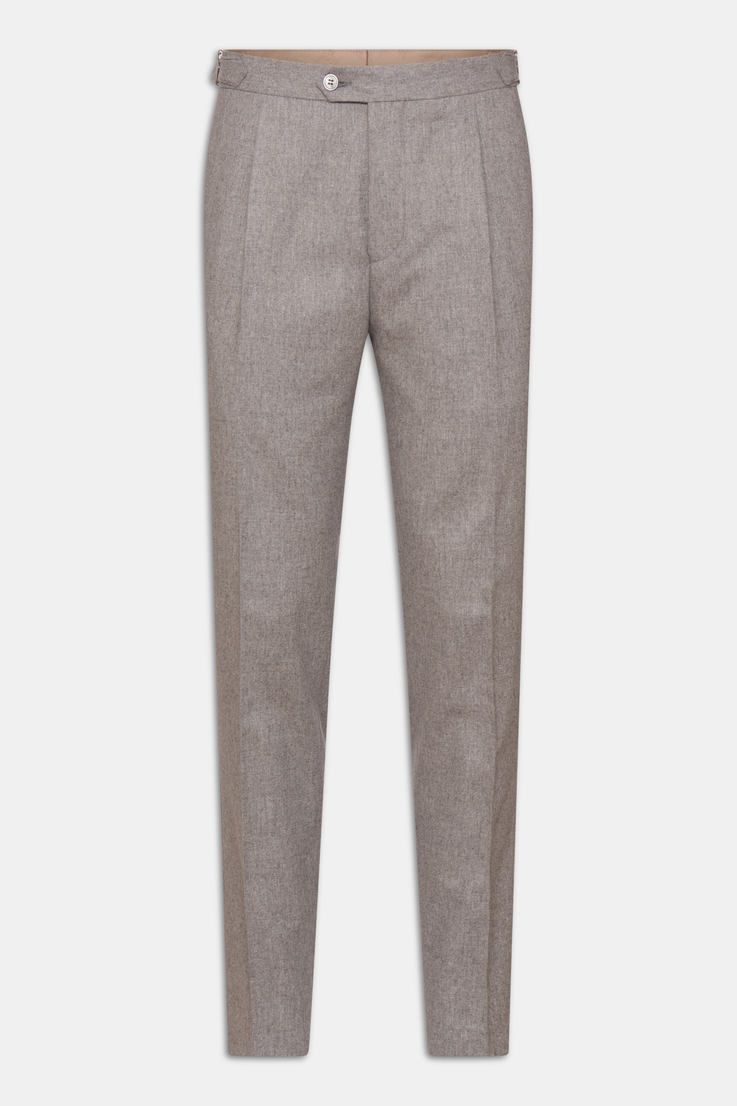 Trousers with a high waist, single pleats and side adjusters. Comes in a soft wool flannel fabric which makes these pants perfect for autumn and winter.