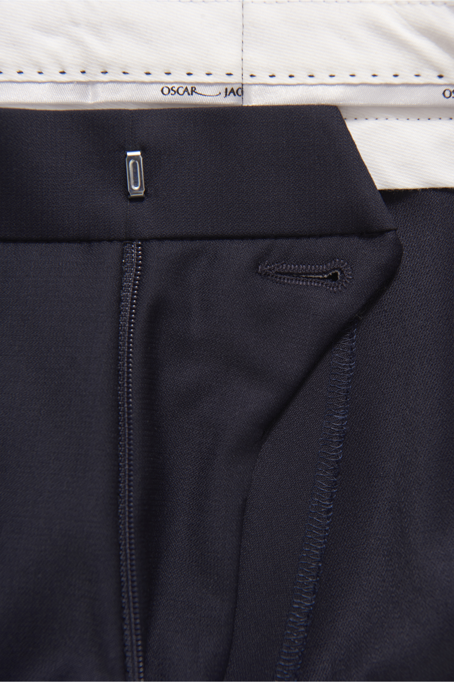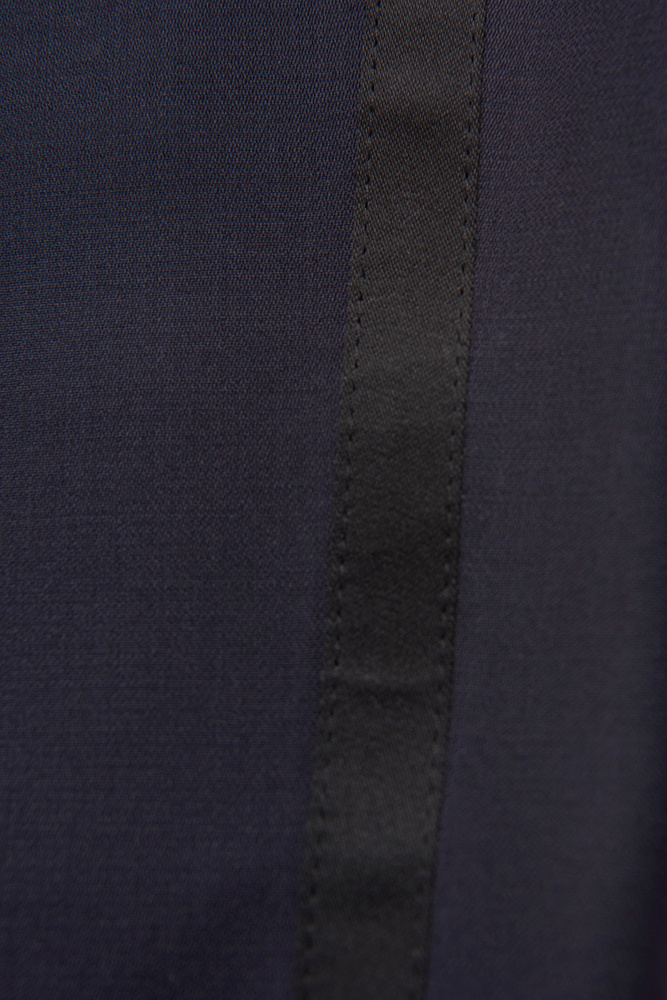 Classic tuxedo trousers with silk stripes. This model is made of 100 % wool and has a regular fit.