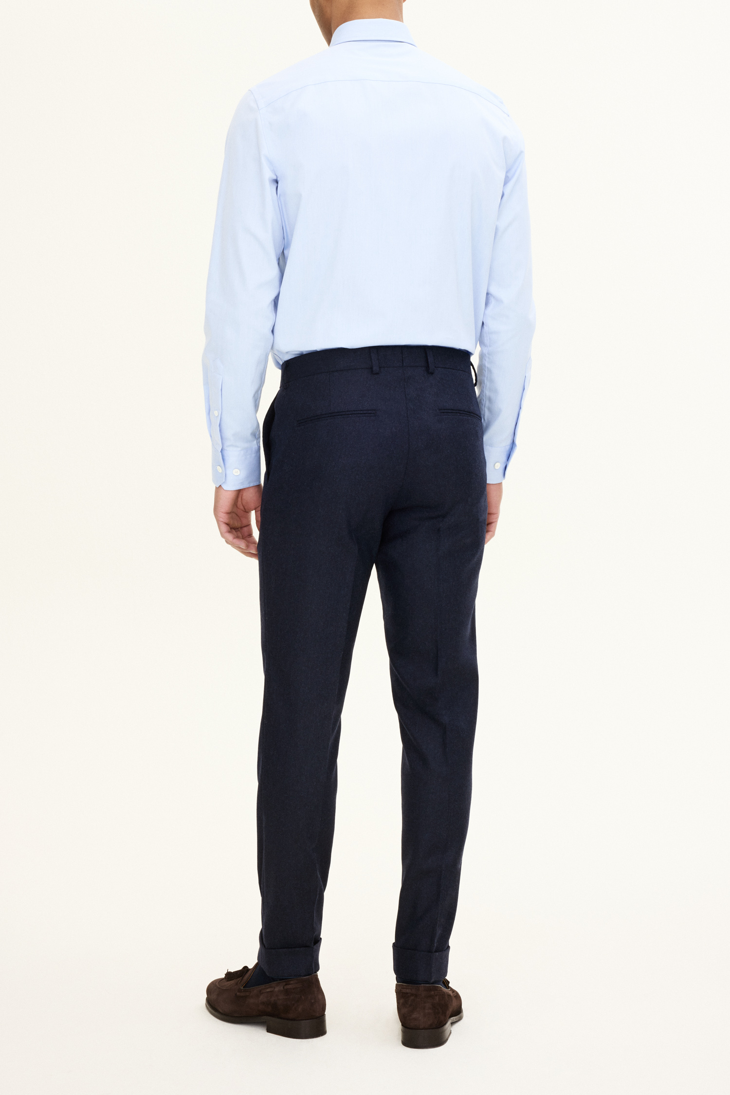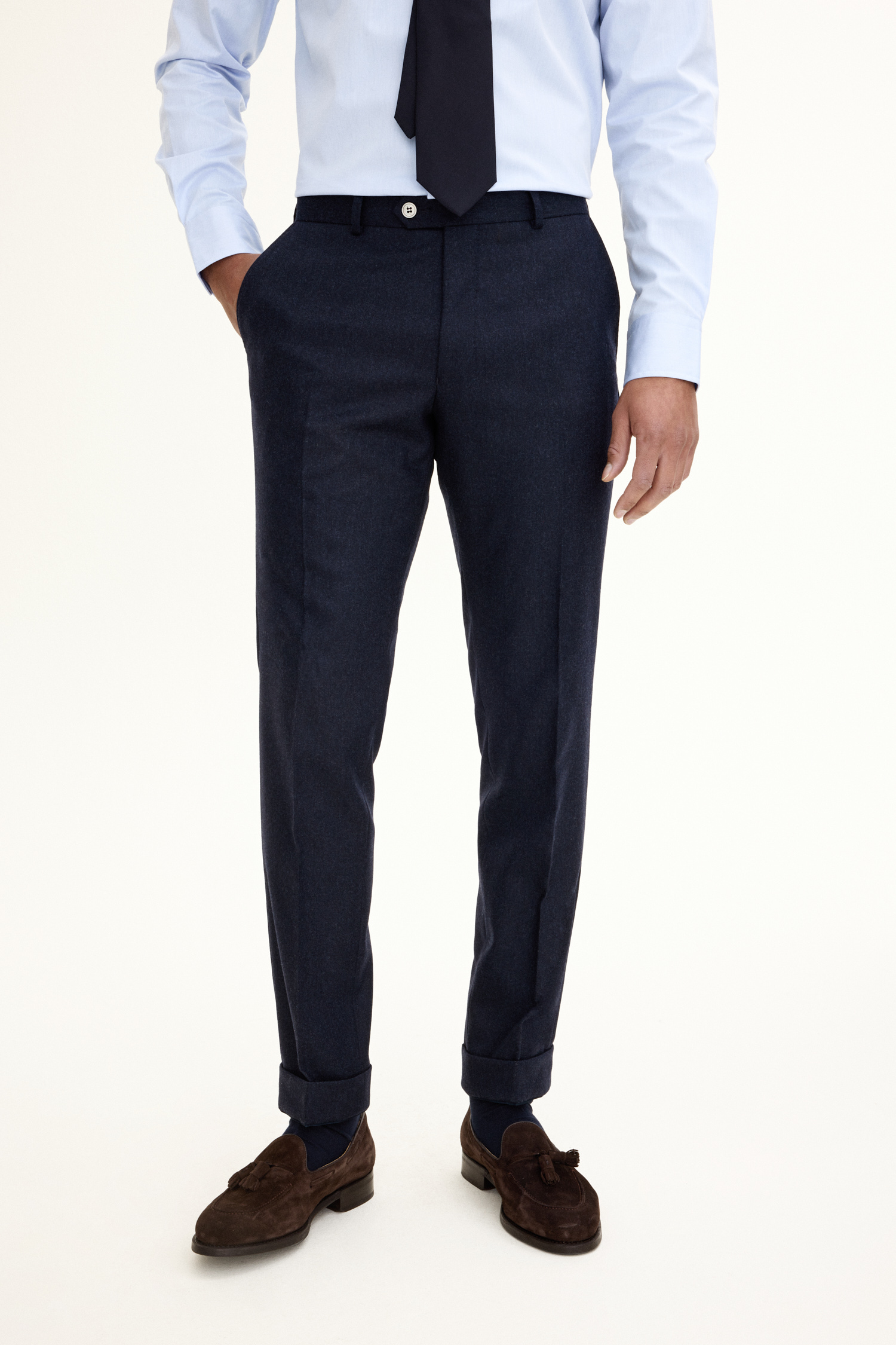 Formal trouser with tapered fit, turn ups and regular high waist. Italian wool flannel that gives a natural warmth and high breathability.