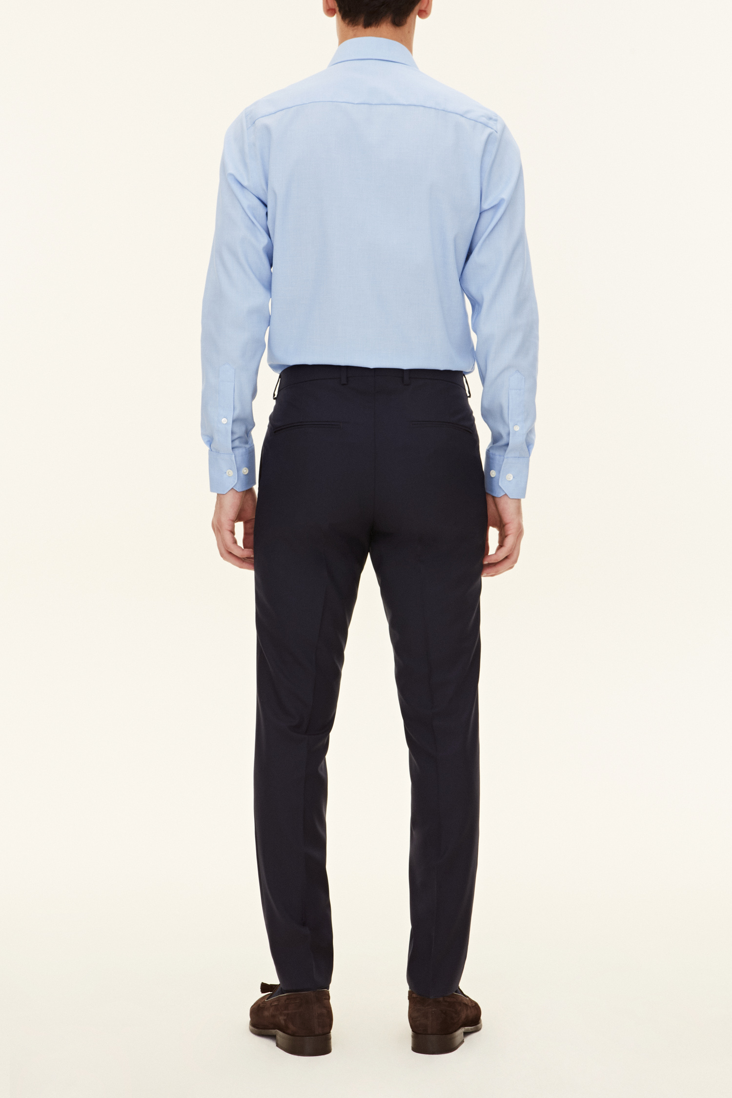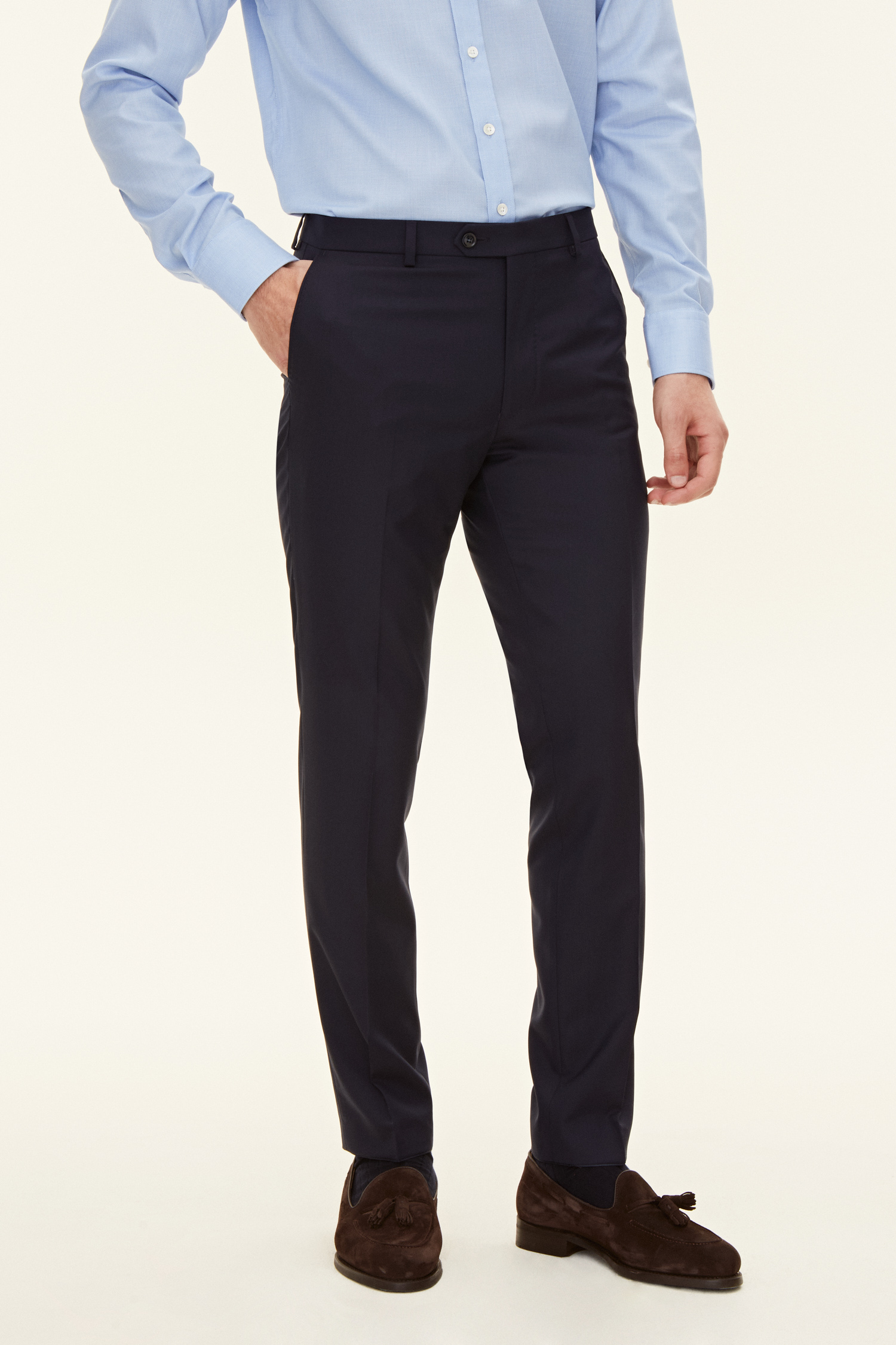 Classic slim fit suit trousers made from a durable super 120's-wool. This model has a tapered fit, normal waist height and a classic leg length that reaches the shoe.