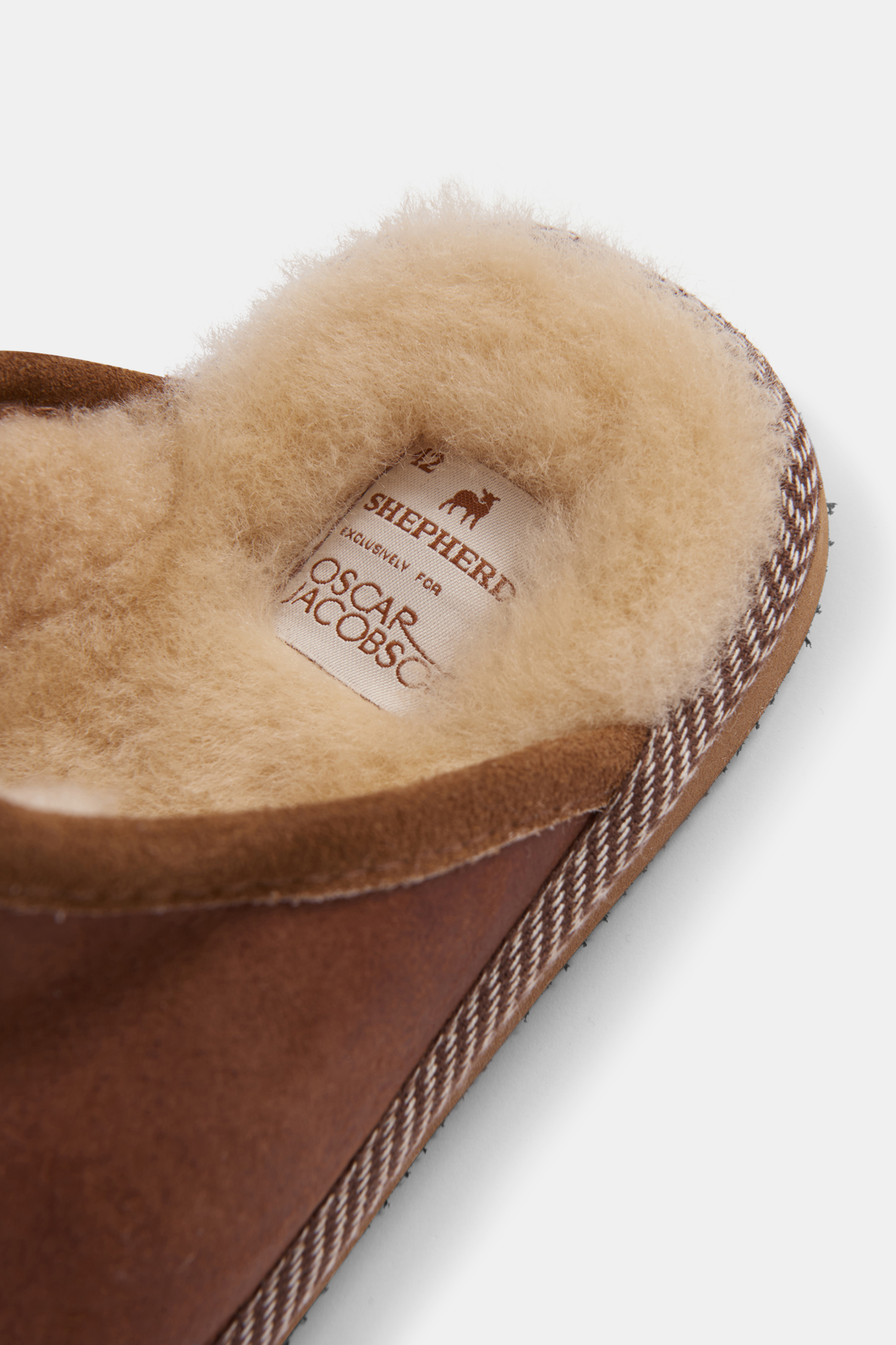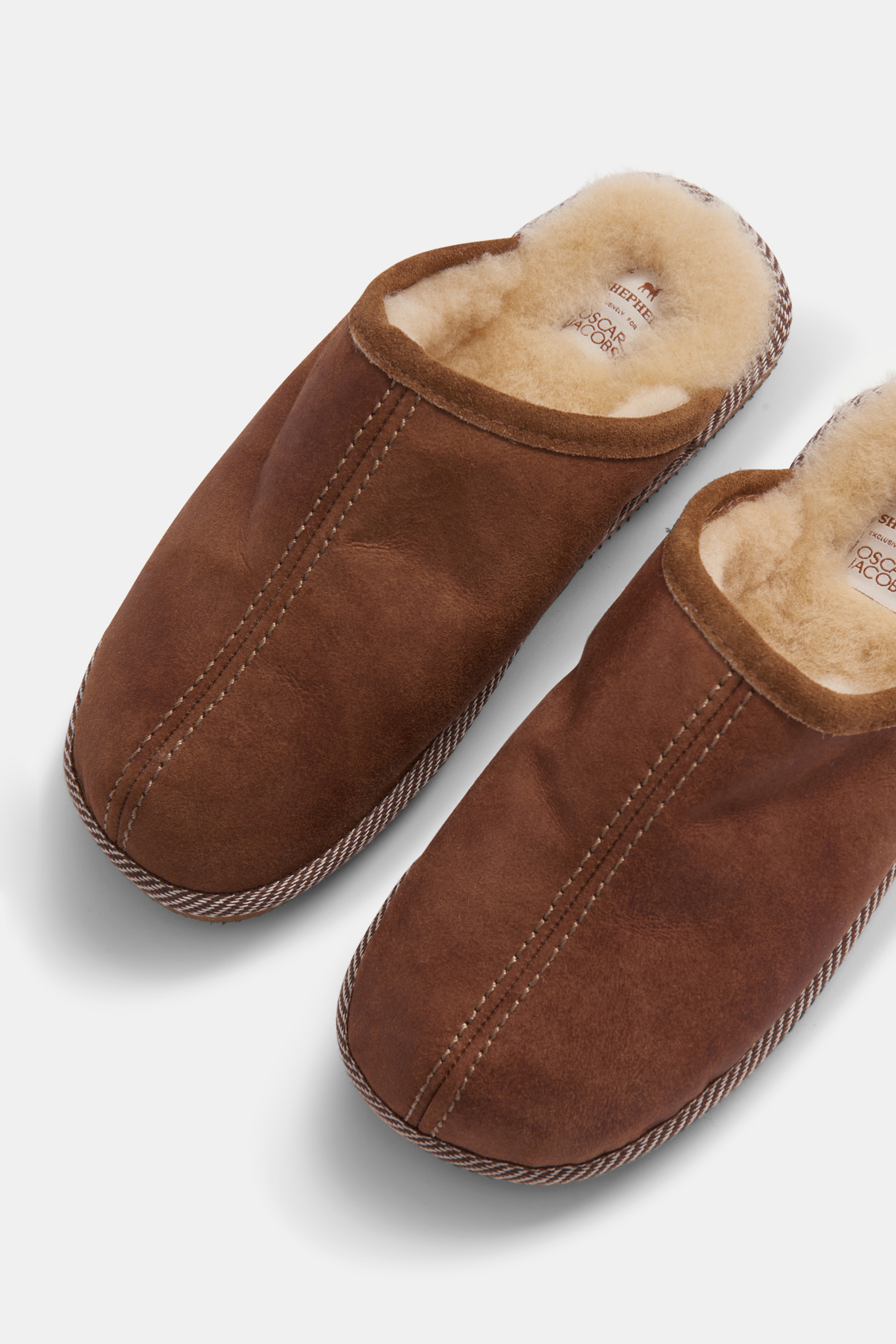 Tøfler i klassisk slip-in modell laget av ekte saueskinn. Kantbånd i tekstil rundt sålen. Yttersåle i EVA. I eksklusivt samarbeid med Shepherd of Sweden.