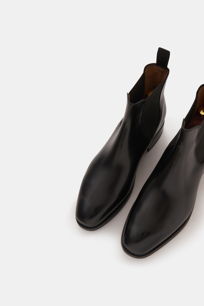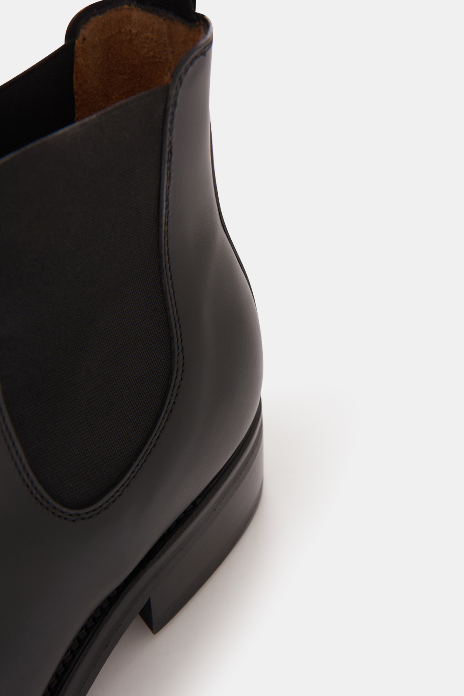 Goodyear welted Chelsea boots in a luxurious french box calf leather, from the reputable tannery D'Annonay, that molds to the foot. Made by hand in Spain. Studded rubber sole for better grip, durability and water resistance in challenging weather conditions. Soft cushioning insole in memory foam that molds to the foot. The construction enables future insoles so that you can wear the shoes long-term and with our new binding sole in leather the shoes can endure even more sole changes.
