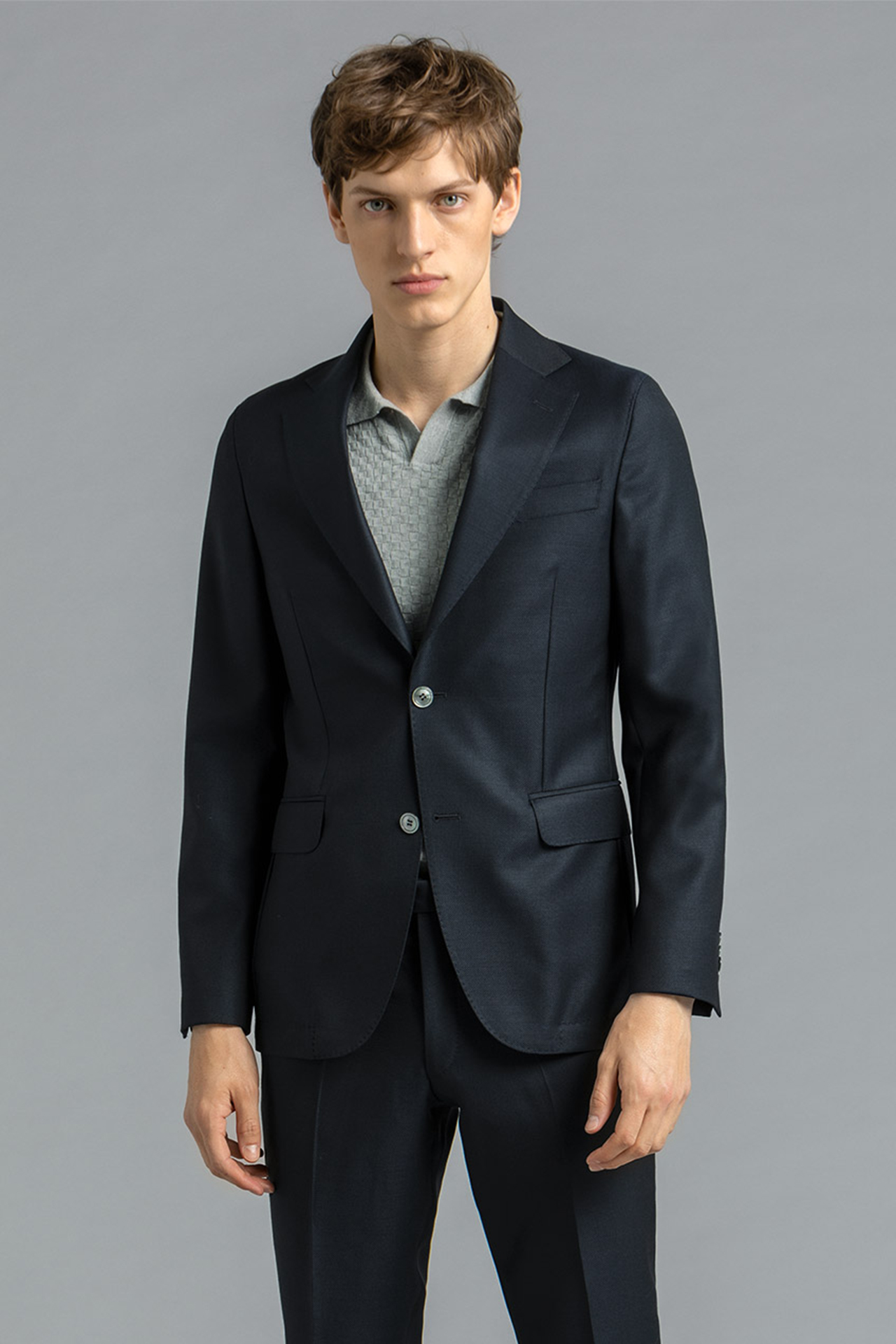 Laget i løst vevd ull med en elegant mikrostruktur, er denne halvfôrede blazeren et utmerket valg for enhver anledning. Modellen er smal i passformen, har klassiske lommeklaffer, og et mykt formet bryst- og skulderområde for en avslappet look.