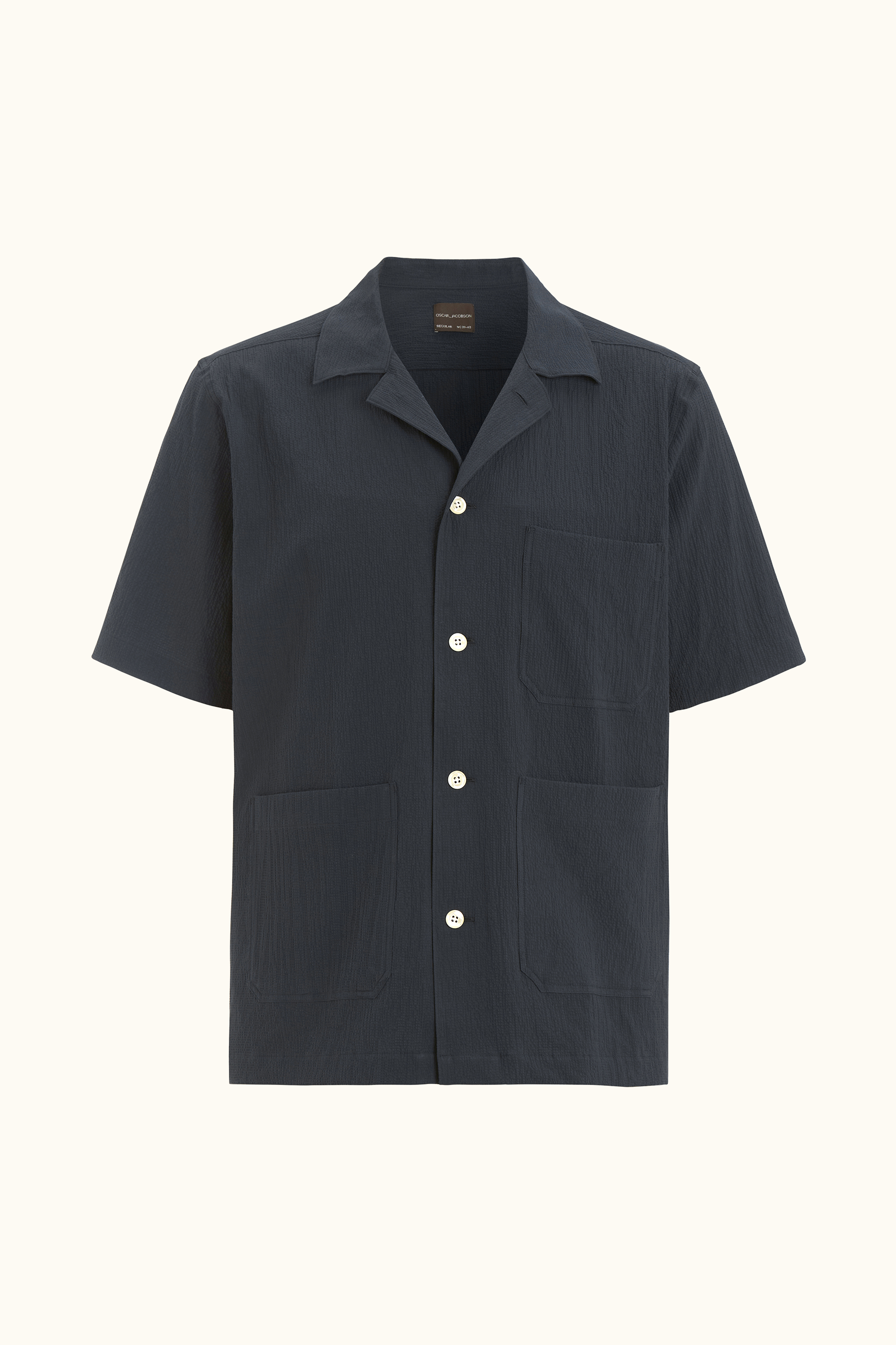 Vår Hanks Seersucker-skjorte er et stilig alternativ for enhver anledning. Med sin regular fit og bowlingkrage gir den et snev av sofistikasjon til antrekket ditt. Laget av 100% bomull, tilbyr den komfort og pusteevne.