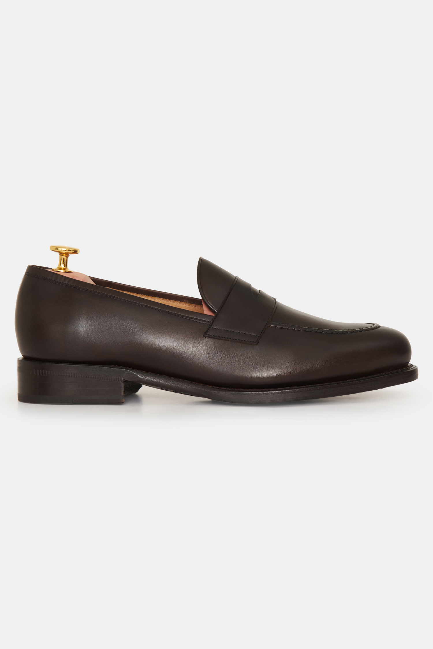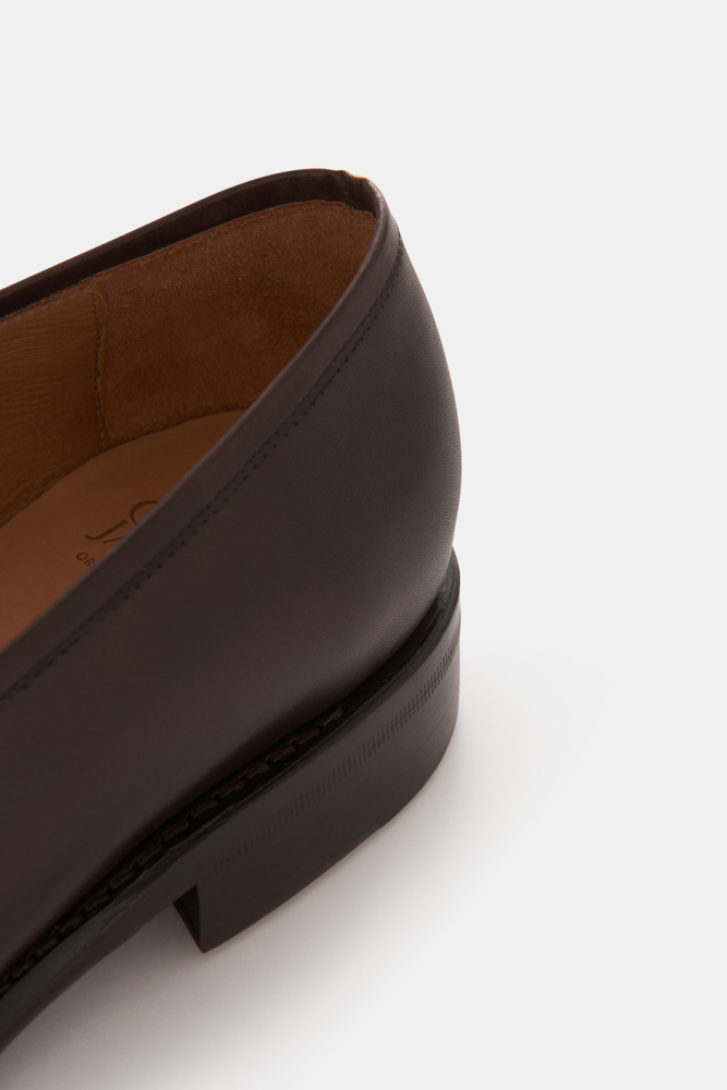 Goodyear-randsydde Penny Loafers av luksuriøst fransk bokskalvskinn fra det velrenommerte garveriet D'Annonay. Tilpasser seg fotens form, og er håndlagde i Spania. Vegetabilsk garvet skinnsåle med en påsatt slitesåle i gummi for lengre holdbarhet og bedre grep. Myk dempende innersåle i memory foam som former seg etter foten. Konstruksjonen muliggjør fremtidig omsåling, slik at du kan beholde skoene lenge, og med vår nya bindsåle av skinn tåler skoene enda flere sålebytter.