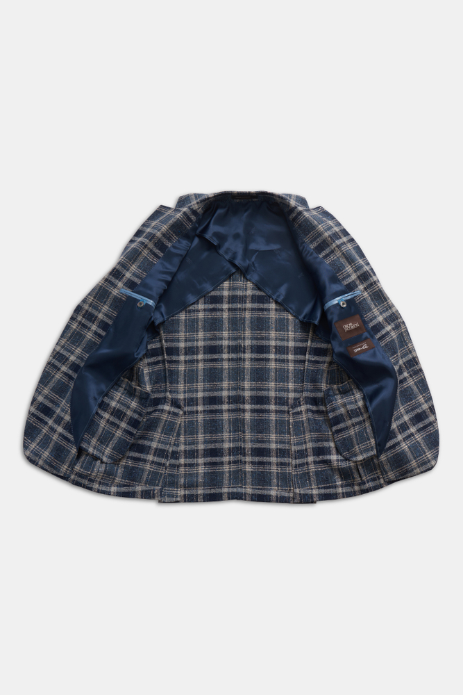 Enkeltspent rutete blazer med brede slag. Med regular fit og en ukonstruert skulder, doble innerlommer og halvfôr. Laget av et grovt linstoff.