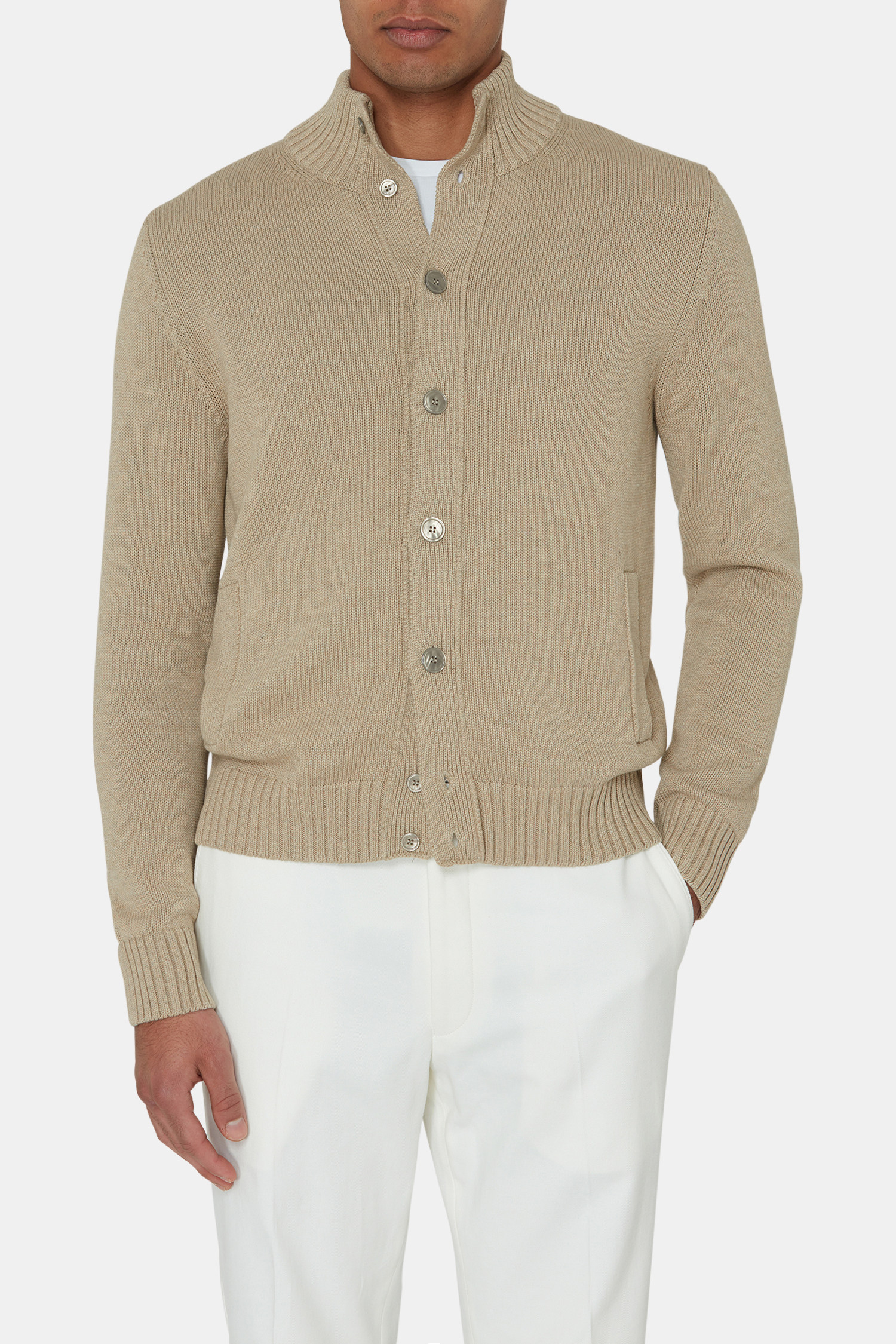 Vår cardigan Hamilton er et allsidig plagg som kan pyntes opp eller ned. På grunn av 100% bomull er den behagelig og pustende. Den strikkede teksturen gir et snev av sofistikasjon, mens det ensfargede designet gjør det enkelt å kombinere med hvilken som helst antrekk.