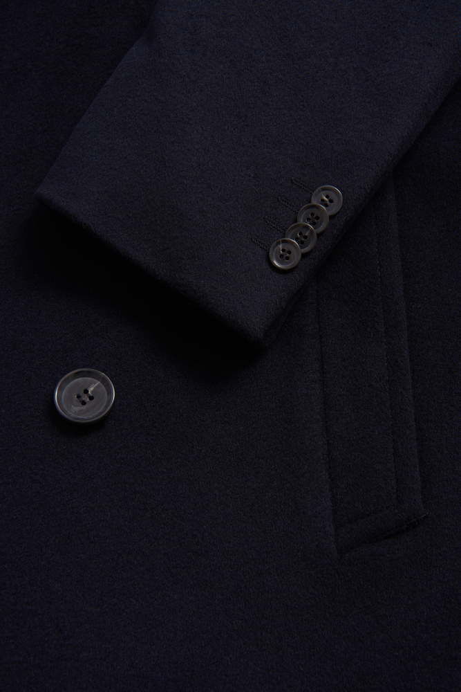 Vår nye dobbeltspente frakk med økt lengde for en mer klassisk look. Regular fit, med brede, spisse slag og doble innerlommer. Laget av et klassisk ullstoff blandet med kasjmir som gir en luksuriøs følelse.